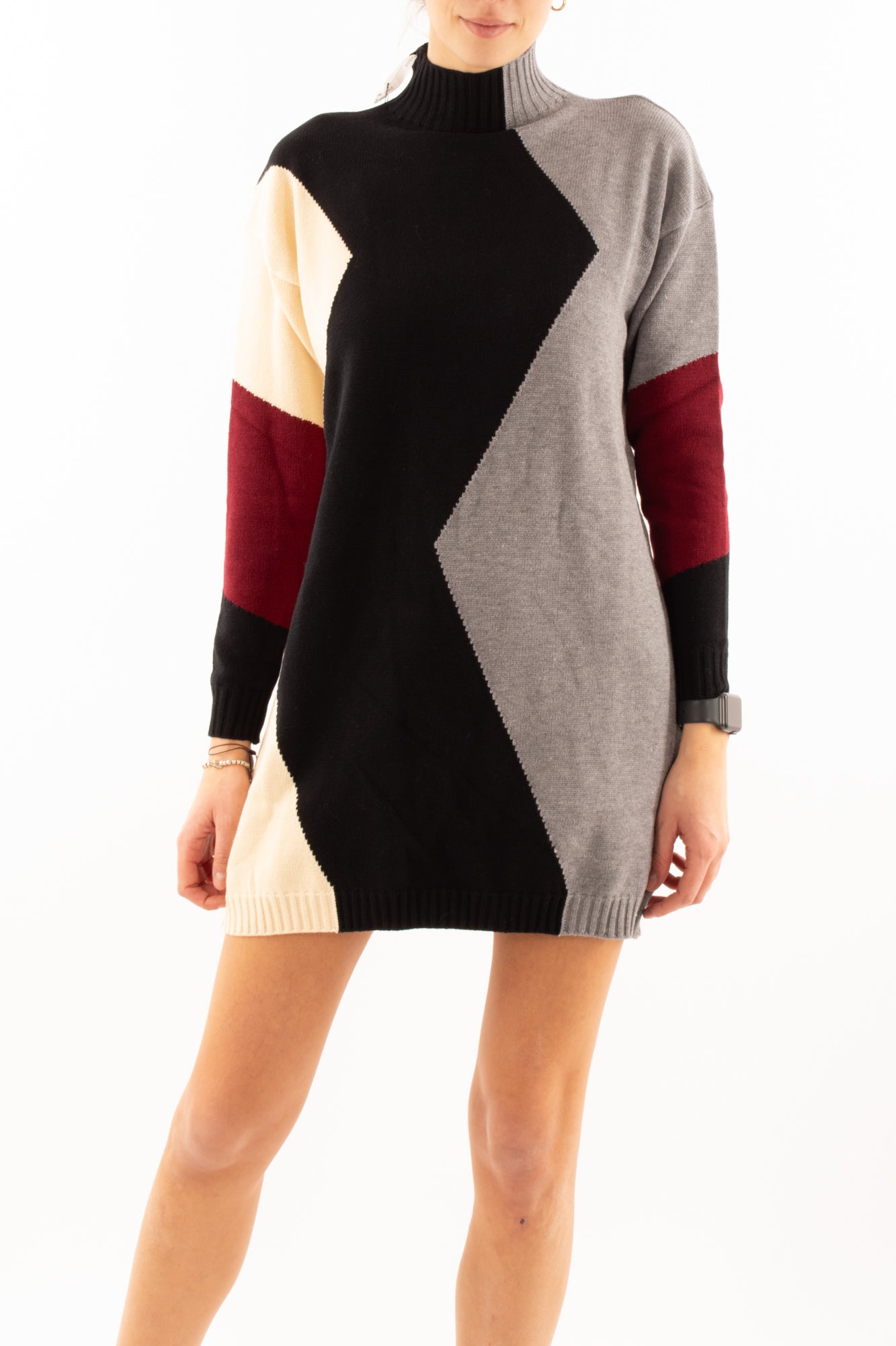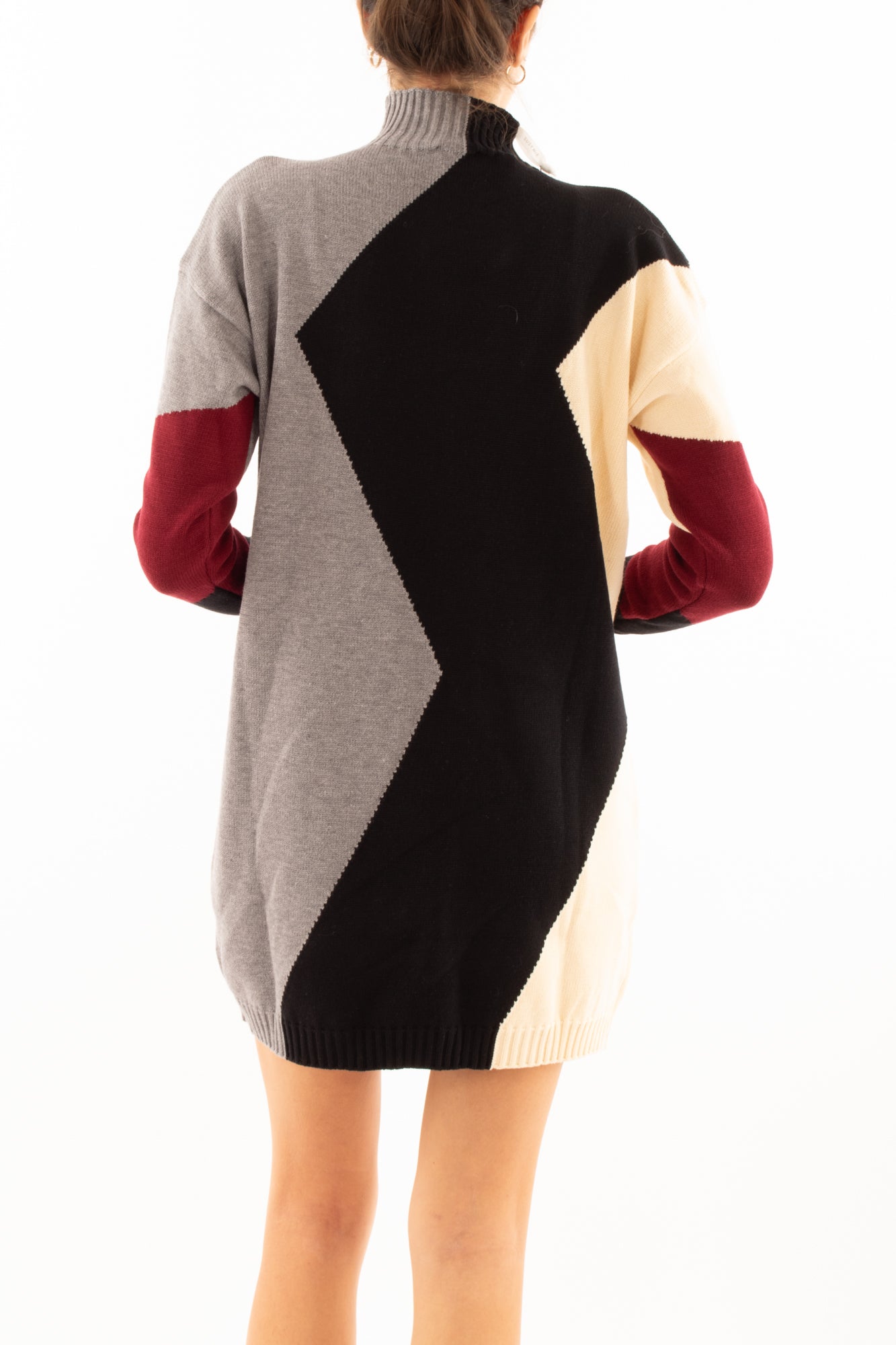 "Esalta il tuo stile con l'abito in maglia dalle sofisticate fantasie geometriche. Realizzato con cura artigianale e tessuto di alta qualità, questo capo unisce comfort e moda in modo impeccabile. Indossa l'eleganza geometrica e fatti notare ovunque tu vada. Scopri il perfetto equilibrio tra design contemporaneo e comfort senza compromessi. Acquista ora per un tocco di stile distintivo nel tuo guardaroba."