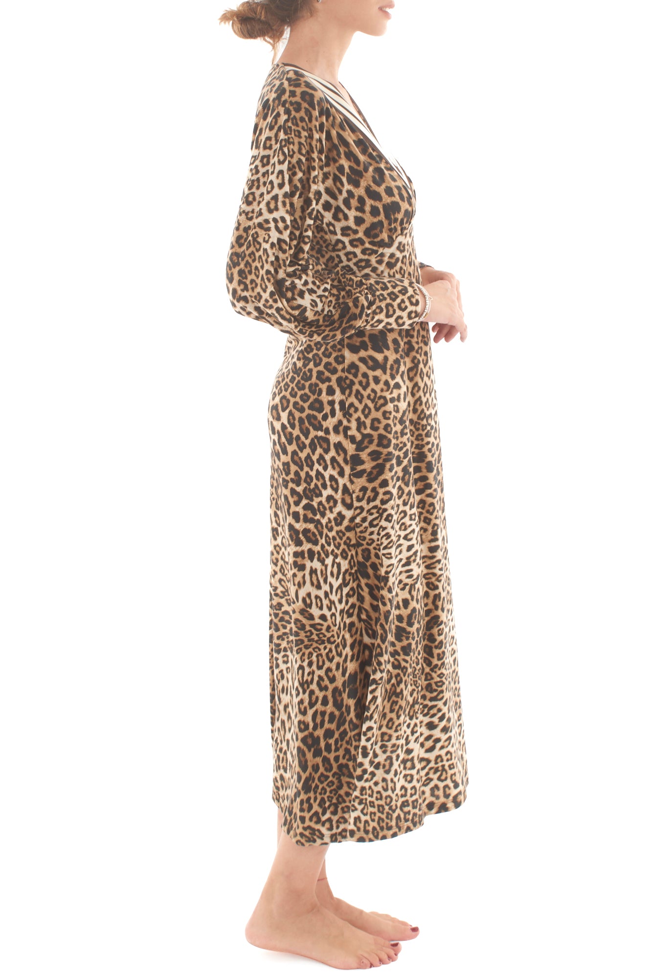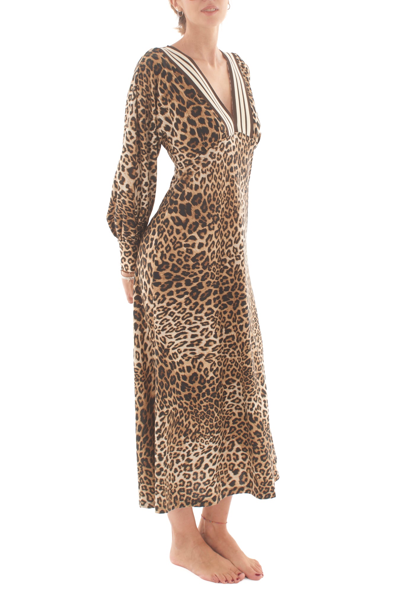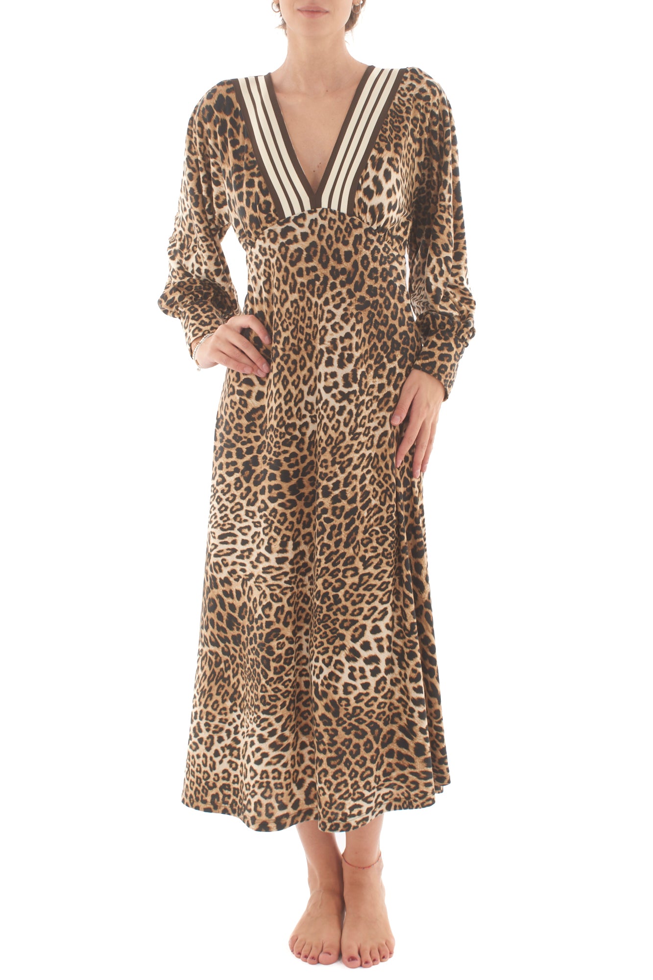 Scopri l'eleganza audace di un abito lungo leopardato con scollo a V e dettagli di bande decorative. Perfetto per serate speciali o look glamour, questo vestito unisce stile selvaggio e raffinatezza, valorizzando la silhouette con un tocco moderno e accattivante.