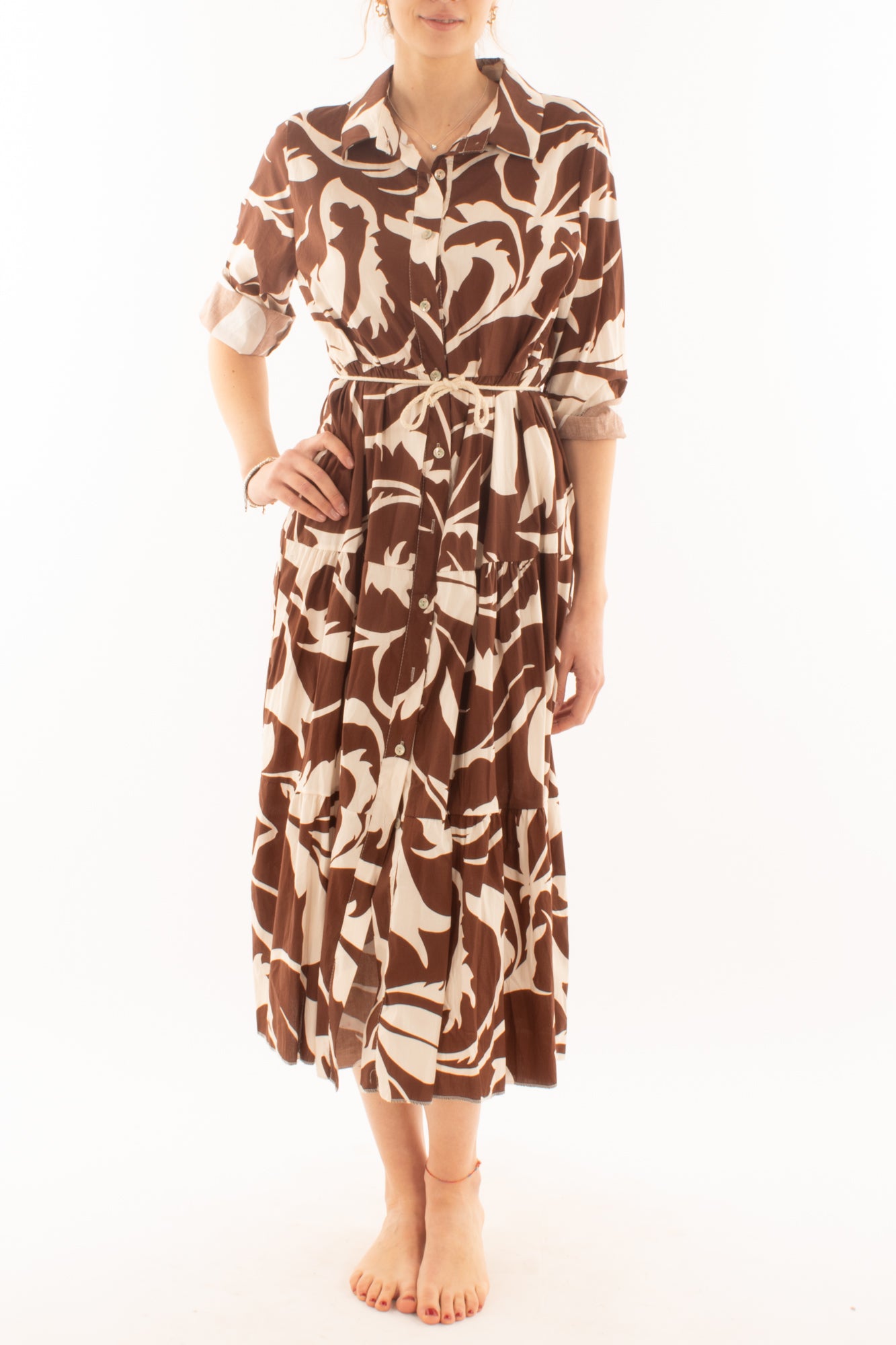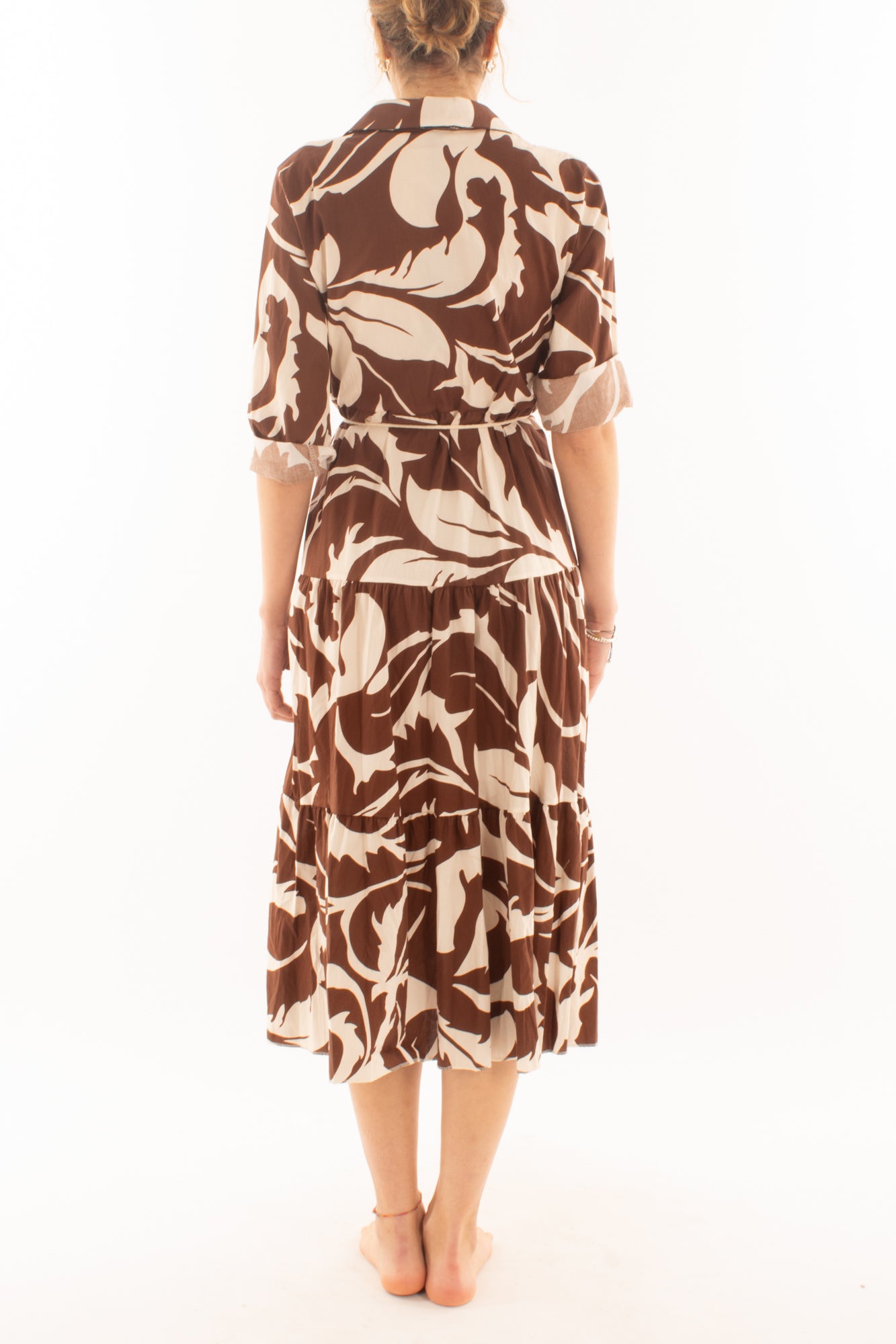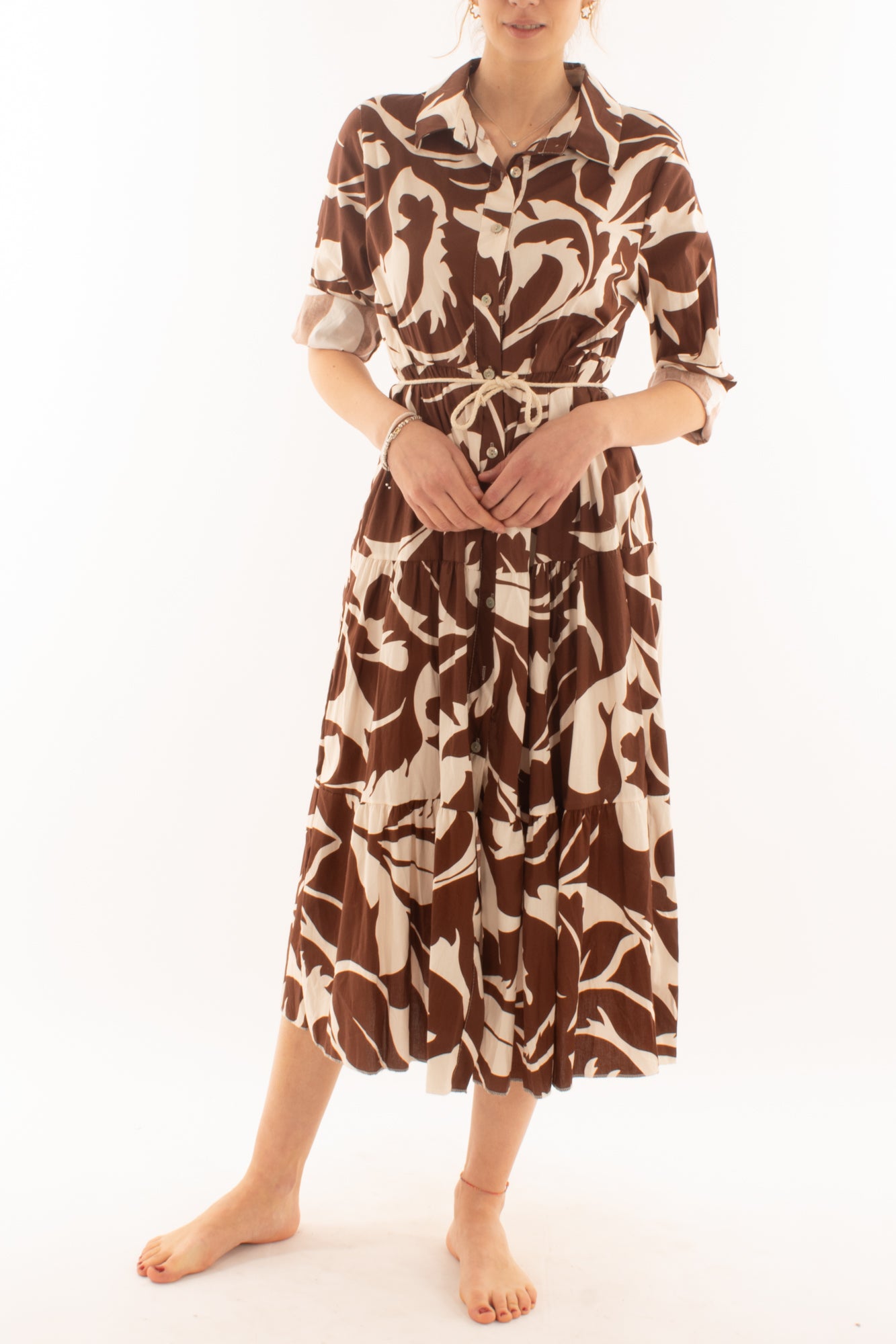Abito lungo a fantasia da Donna Metoo - Tabacco