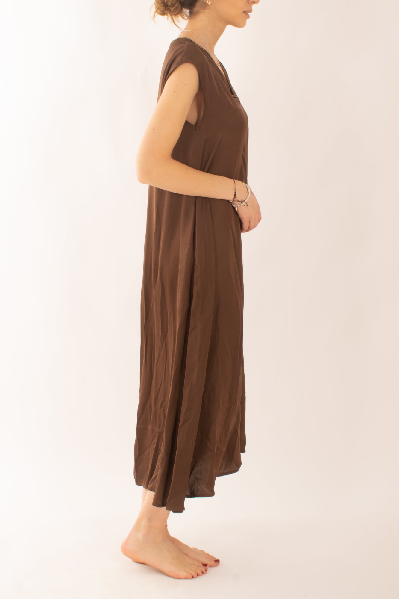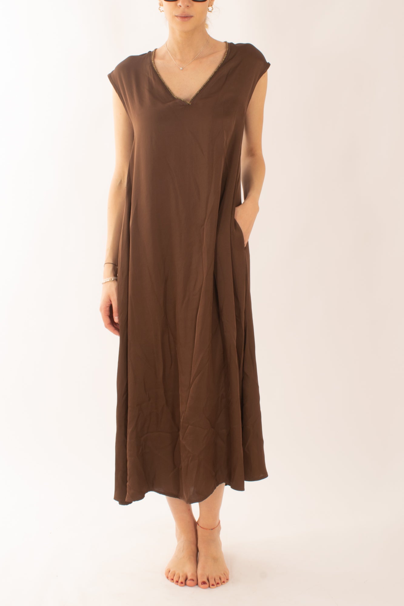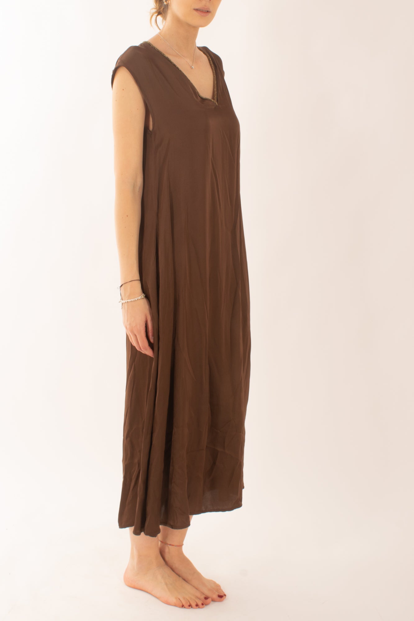 Certamente! Ecco una descrizione SEO dell'abito lungo a V tagliato a trapezio: "Scopri l'eleganza senza tempo di questo abito lungo a V, ideale per ogni occasione speciale. Realizzato con cura nei dettagli e disponibile in diverse taglie, rappresenta l'emblema della raffinatezza e dello stile femminile contemporaneo."