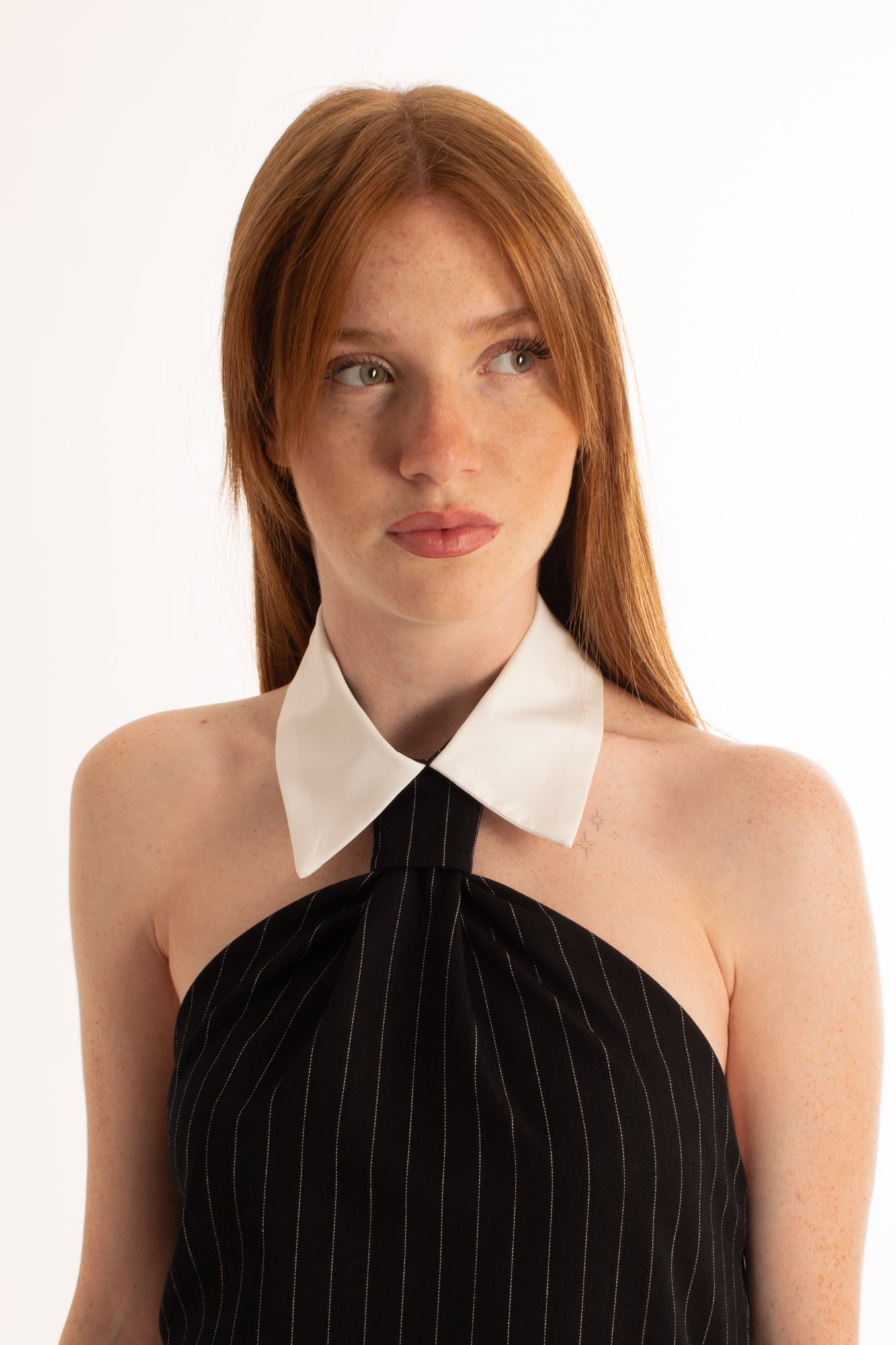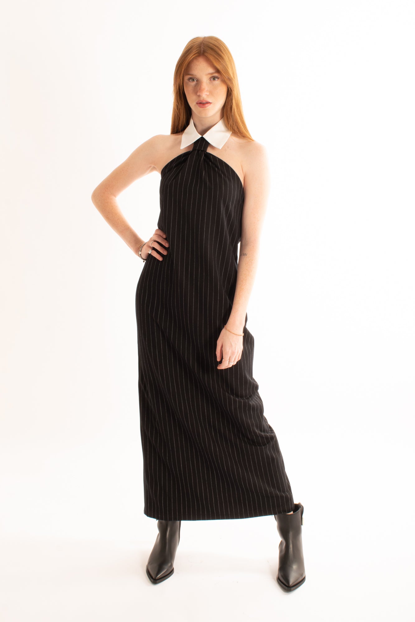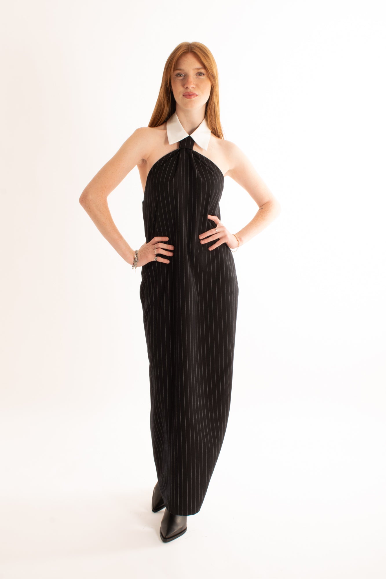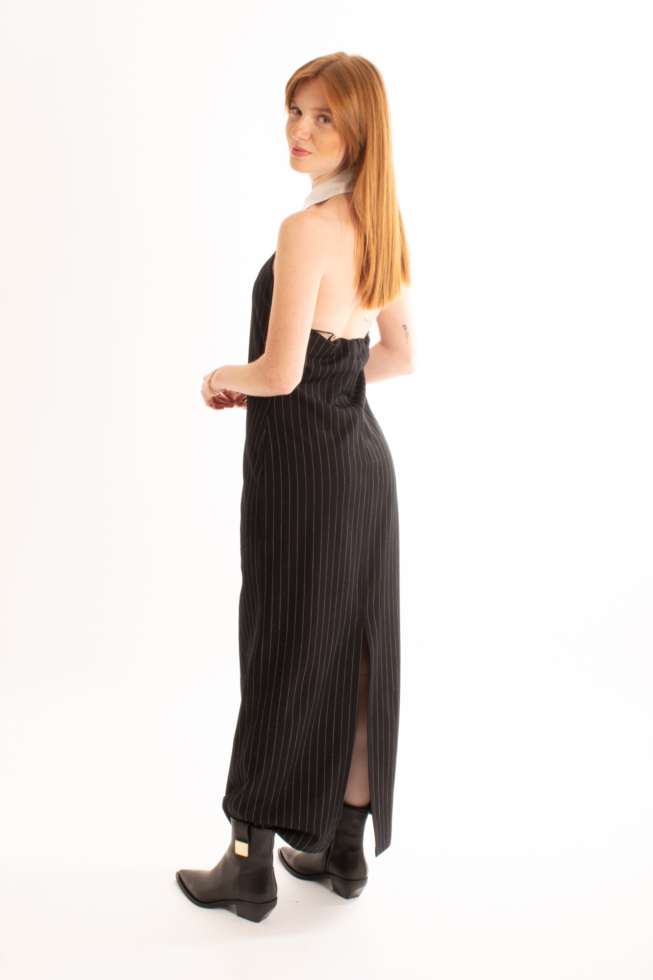 Scoprite il tocco di classe dell'abito gessato a tubino. Realizzato con tessuto di qualità superiore, questo abito presenta un colletto e una schiena scoperta per aggiungere una nota di eleganza. Perfetta per qualsiasi occasione formale, questo abito è l'ideale per essere sempre al top.