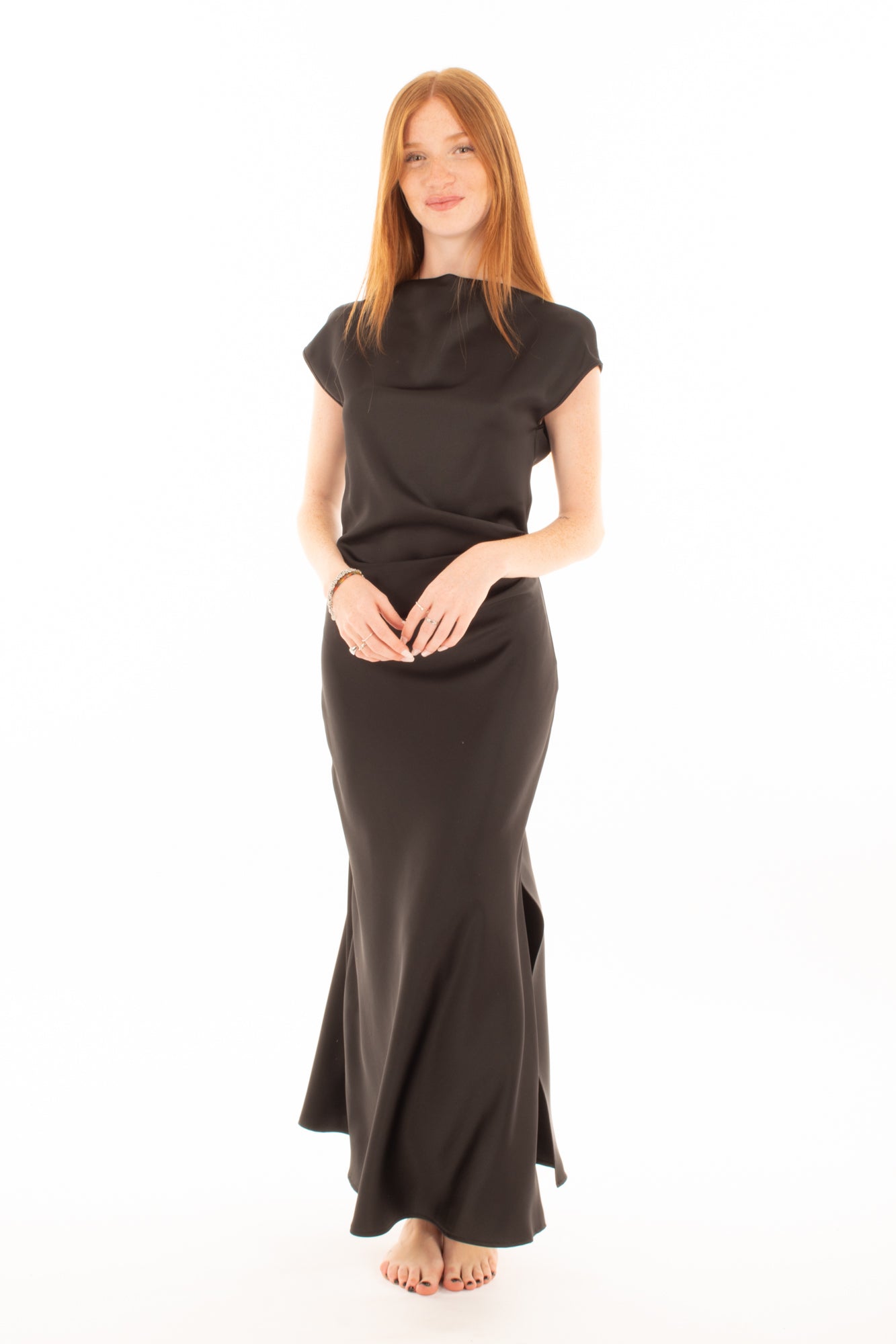 Abito lungo con drappeggio da Donna Imperial - Nero
