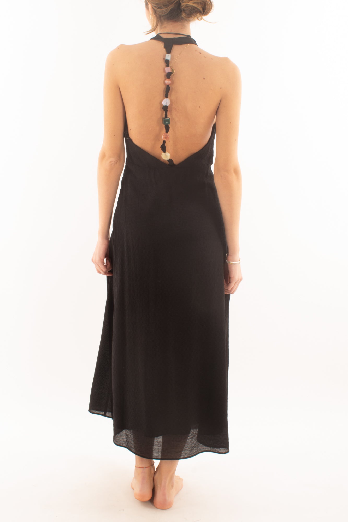 Scopri l'eleganza senza tempo con il nostro abito lungo impreziosito da brillanti pietre sulla schiena. Un capo raffinato che cattura sguardi e aggiunge un tocco di lusso al tuo stile. Con un design sofisticato e dettagli scintillanti, questo abito incanta in ogni occasione. Acquista ora per brillare con stile!"