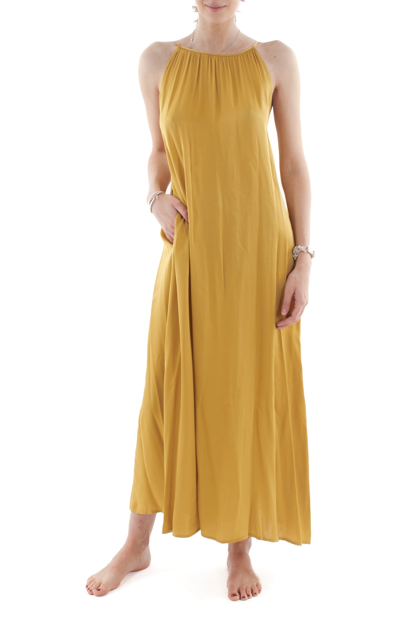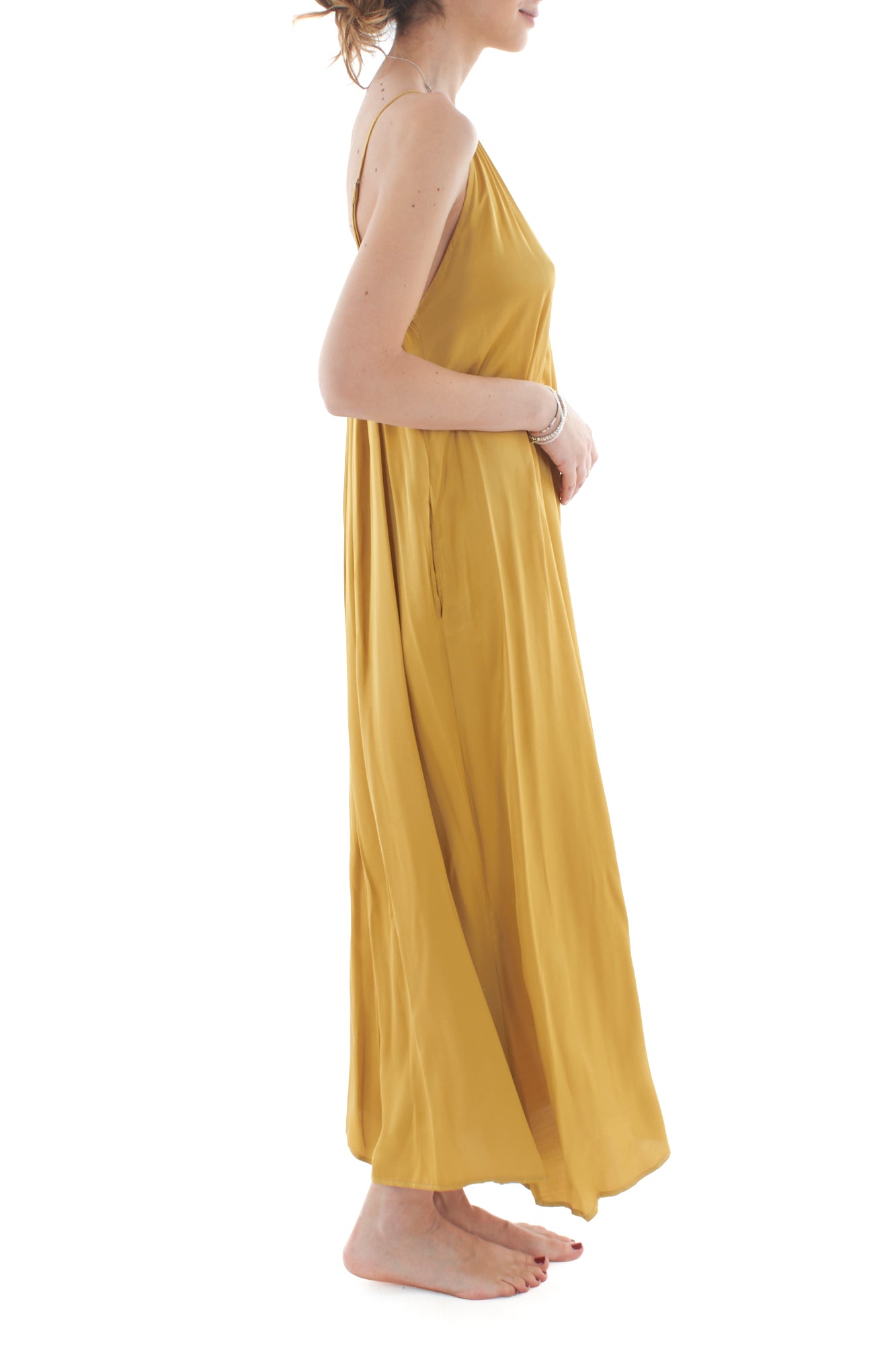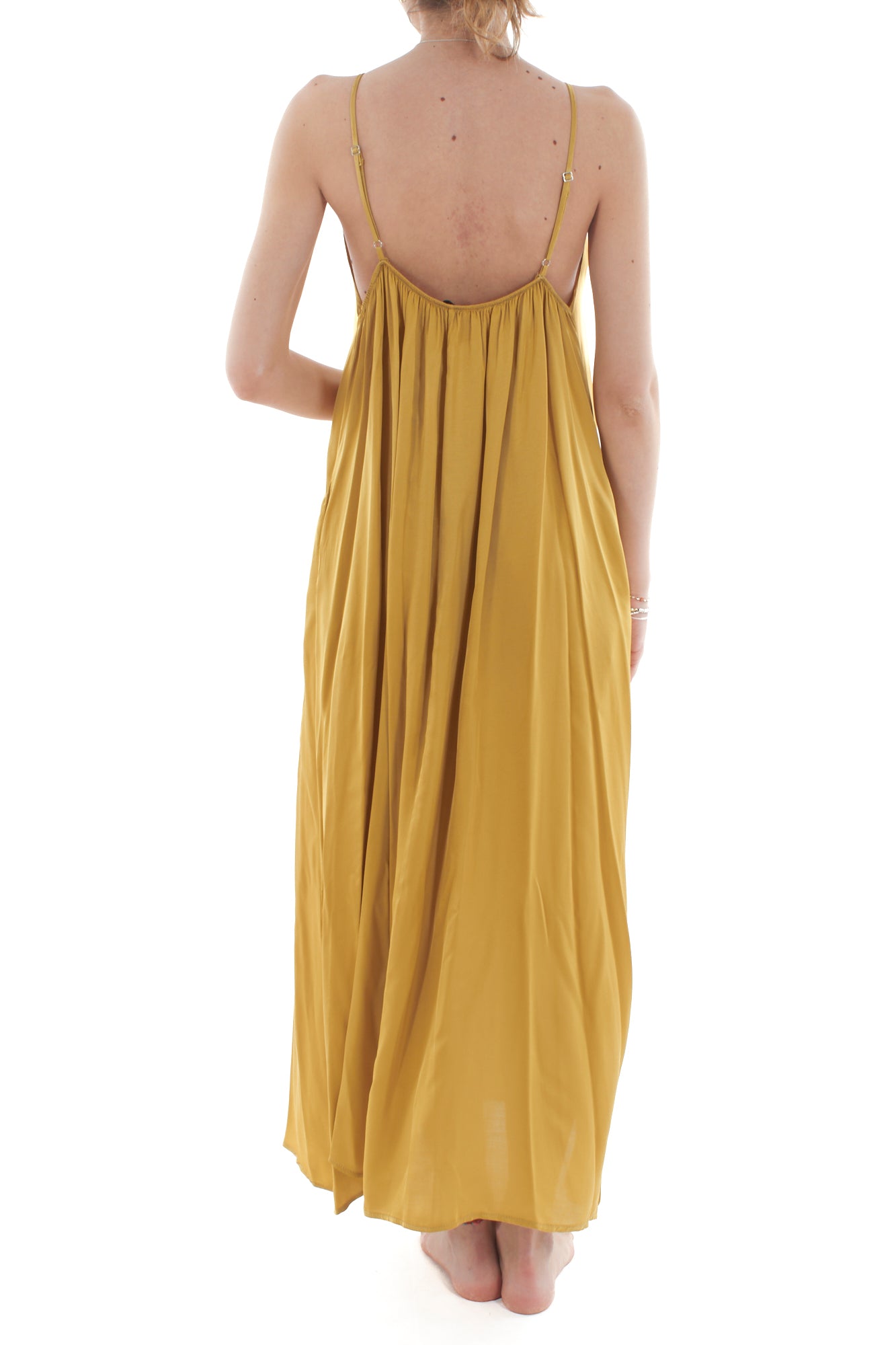 Elegante abito lungo con bretelline, realizzato in morbida viscosa. Perfetto per ogni occasione, questo capo offre un tocco di raffinatezza e comfort grazie alla sua vestibilità leggera e fluida. Scegli un look sofisticato e di classe con questo abito dal design intramontabile.