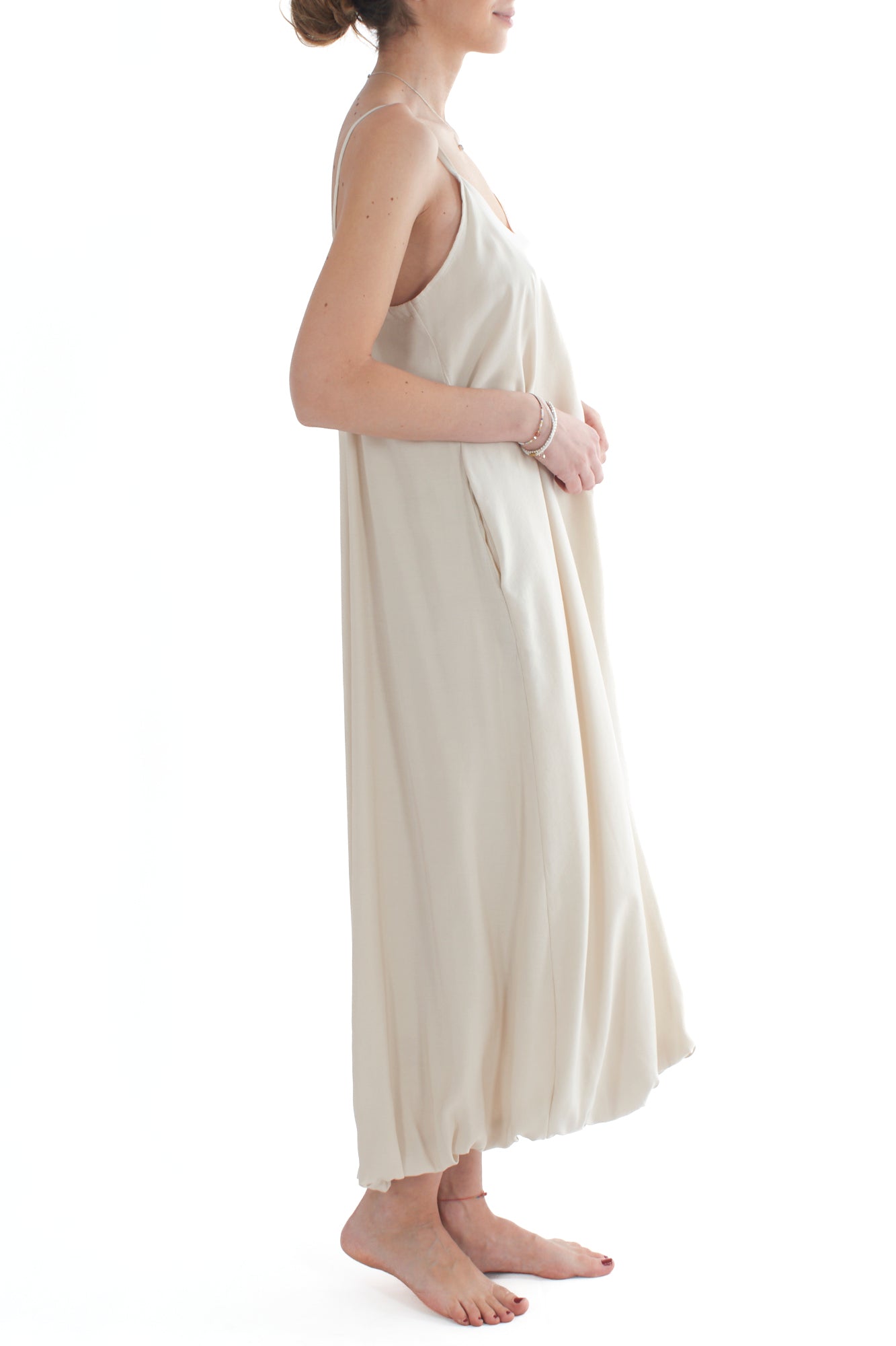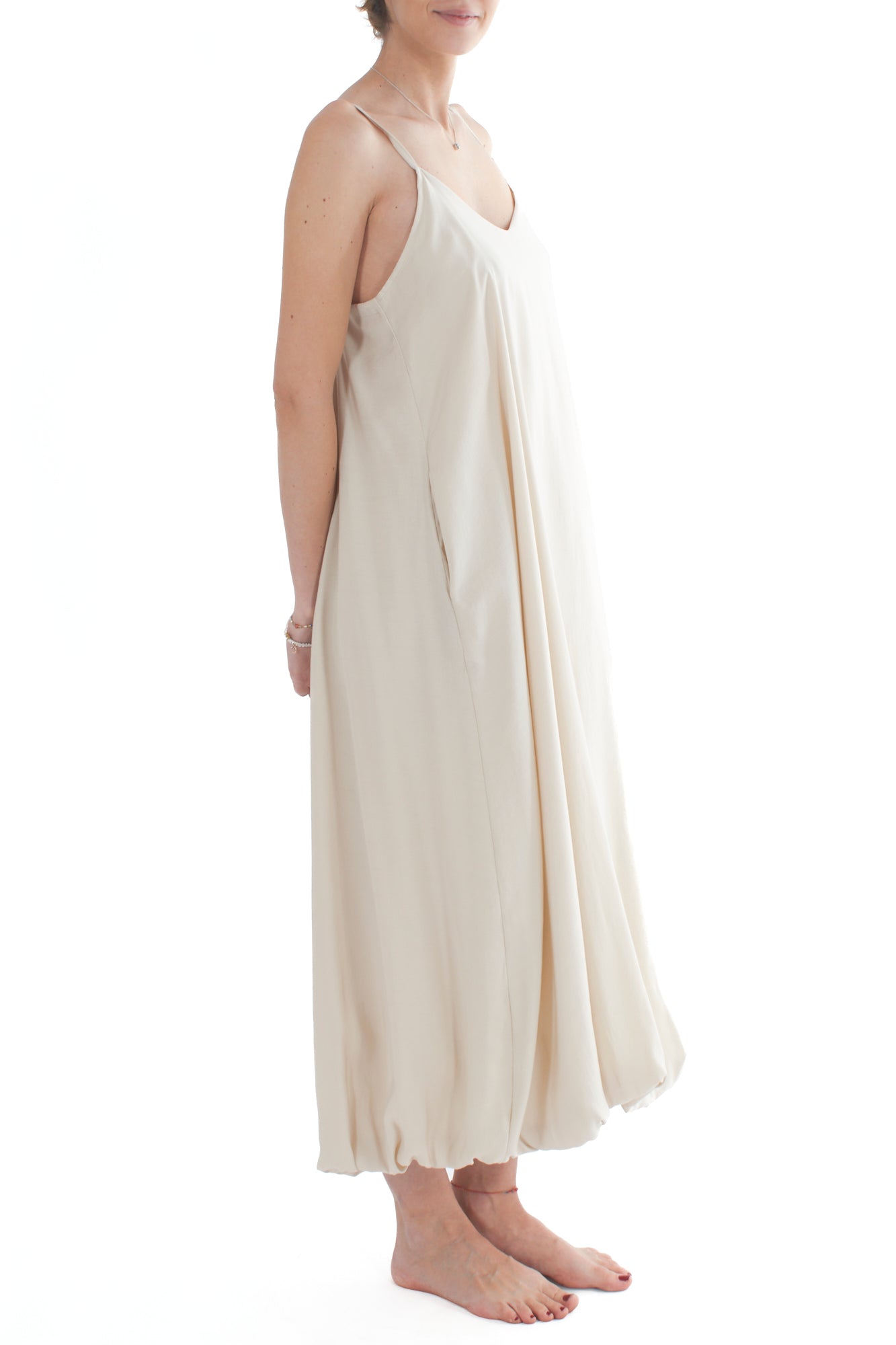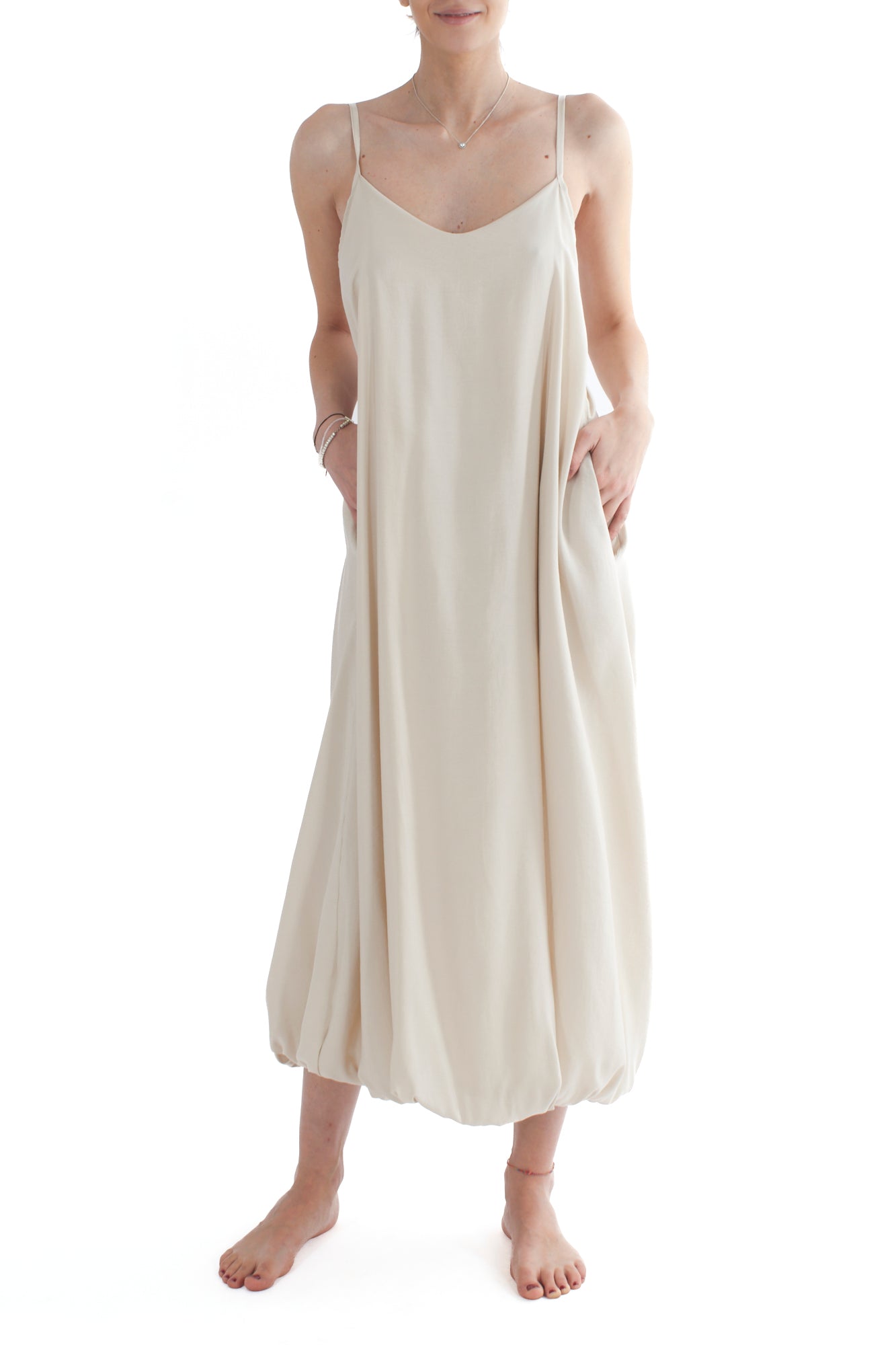Abito lungo a bretellina con effetto a palloncino, perfetto per eventi eleganti e serate estive. Il design sofisticato e la vestibilità fluida garantiscono comfort e stile. Realizzato con tessuti di alta qualità per un look raffinato e alla moda.