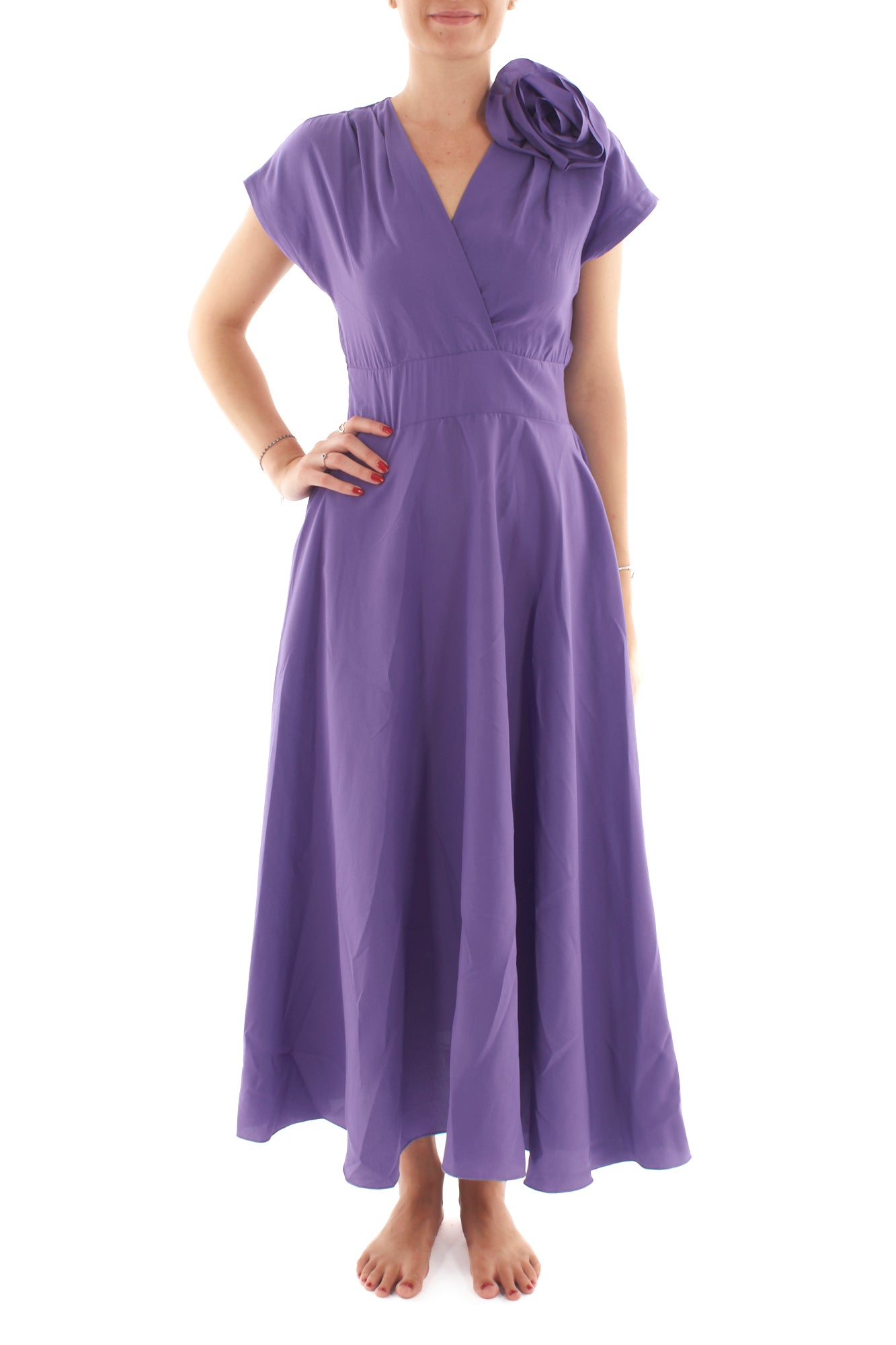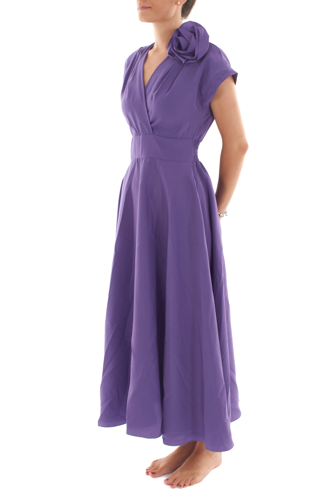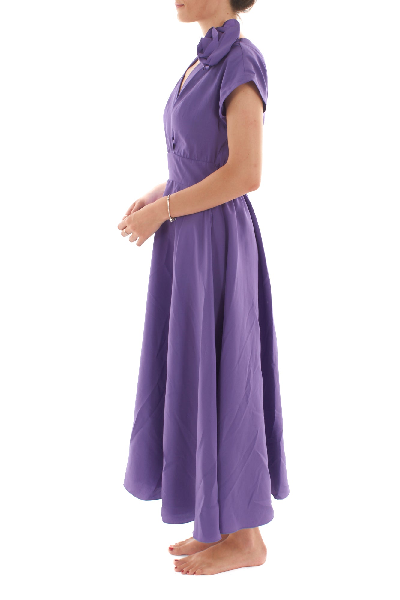 "Elegante abito lungo senza maniche con scollatura a V e dettaglio floreale laterale. Perfetto per occasioni speciali, questo capo unisce stile e sofisticatezza con un tocco di romanticismo primaverile."