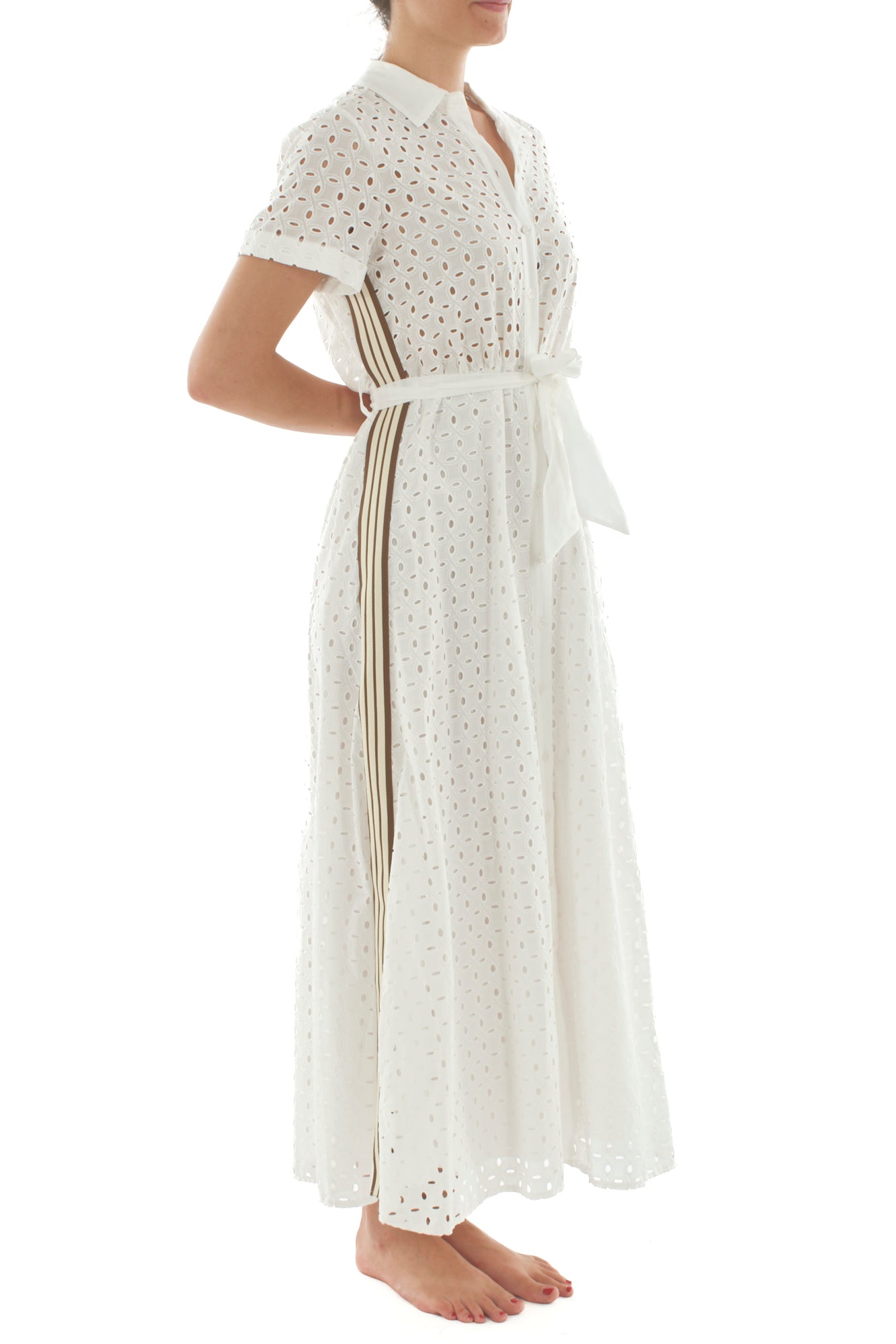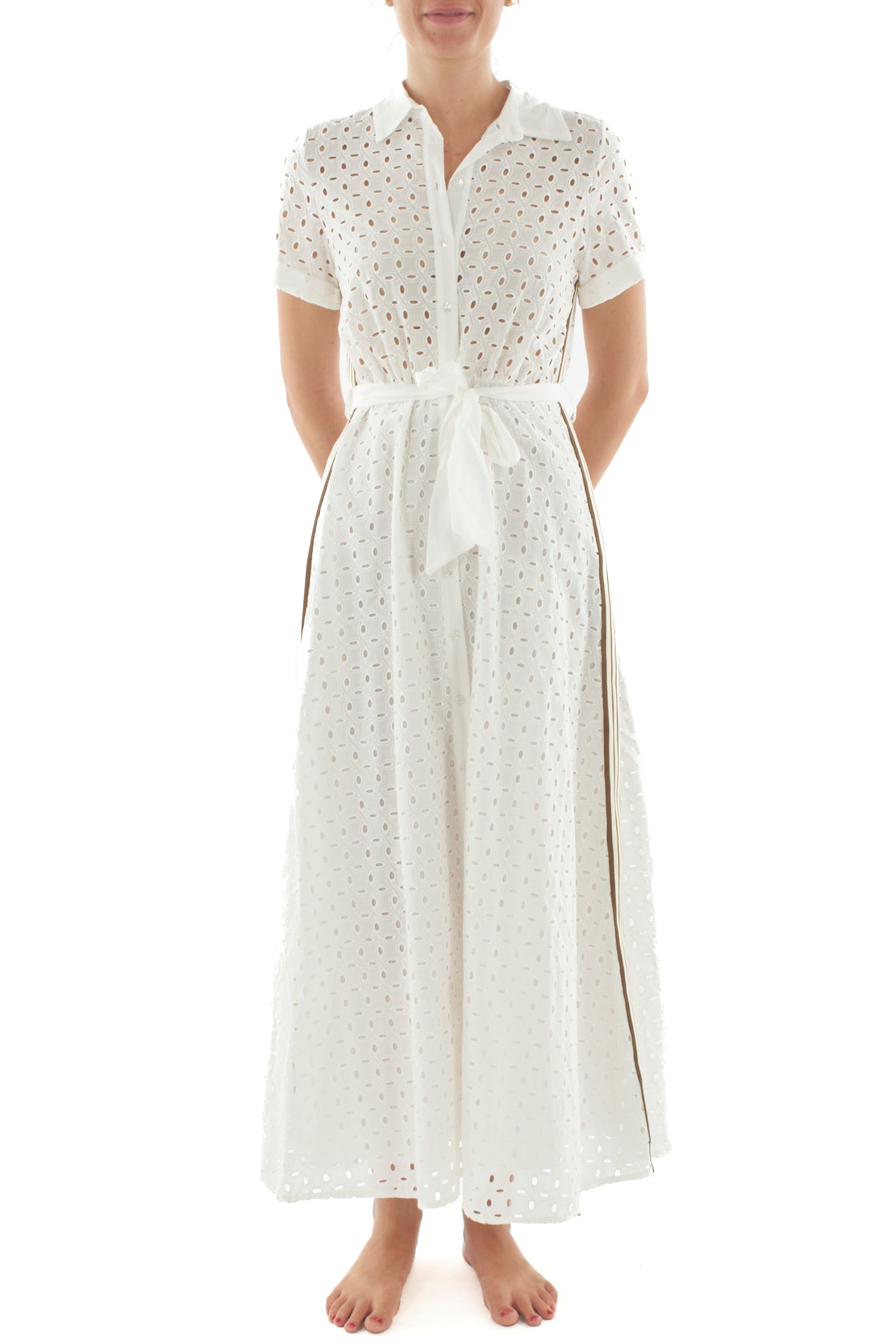 Scopri l'eleganza del nostro abito lungo a chemisier in pizzo Sangallo con banda laterale. Questo capo unisce raffinatezza e stile, perfetto per occasioni speciali e look estivi. Il pizzo Sangallo aggiunge un tocco romantico, mentre la banda laterale offre una silhouette moderna e chic.