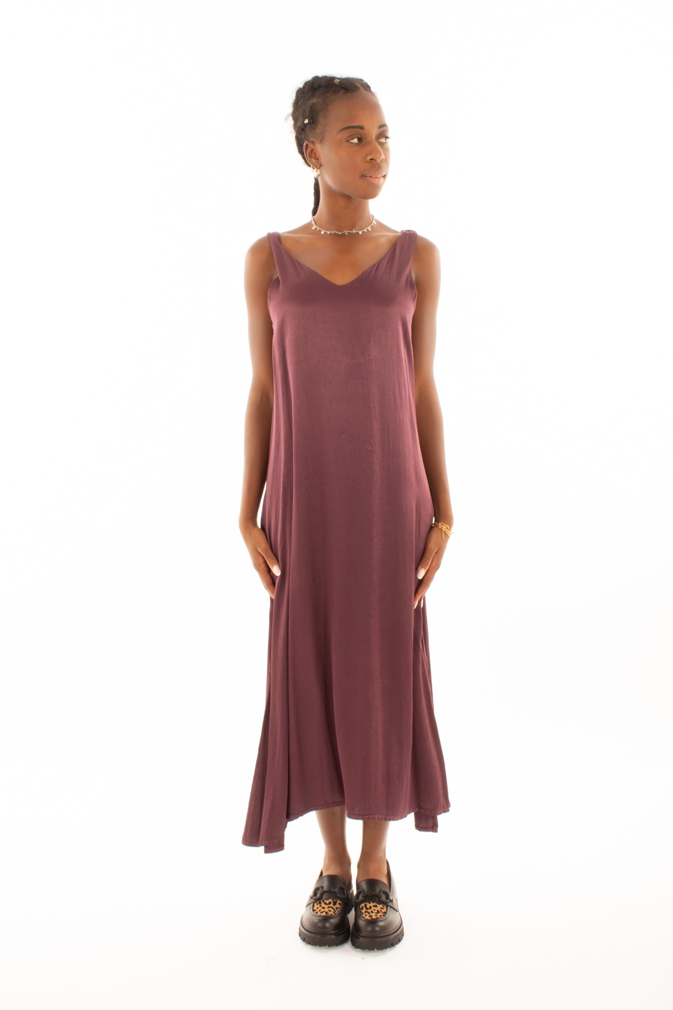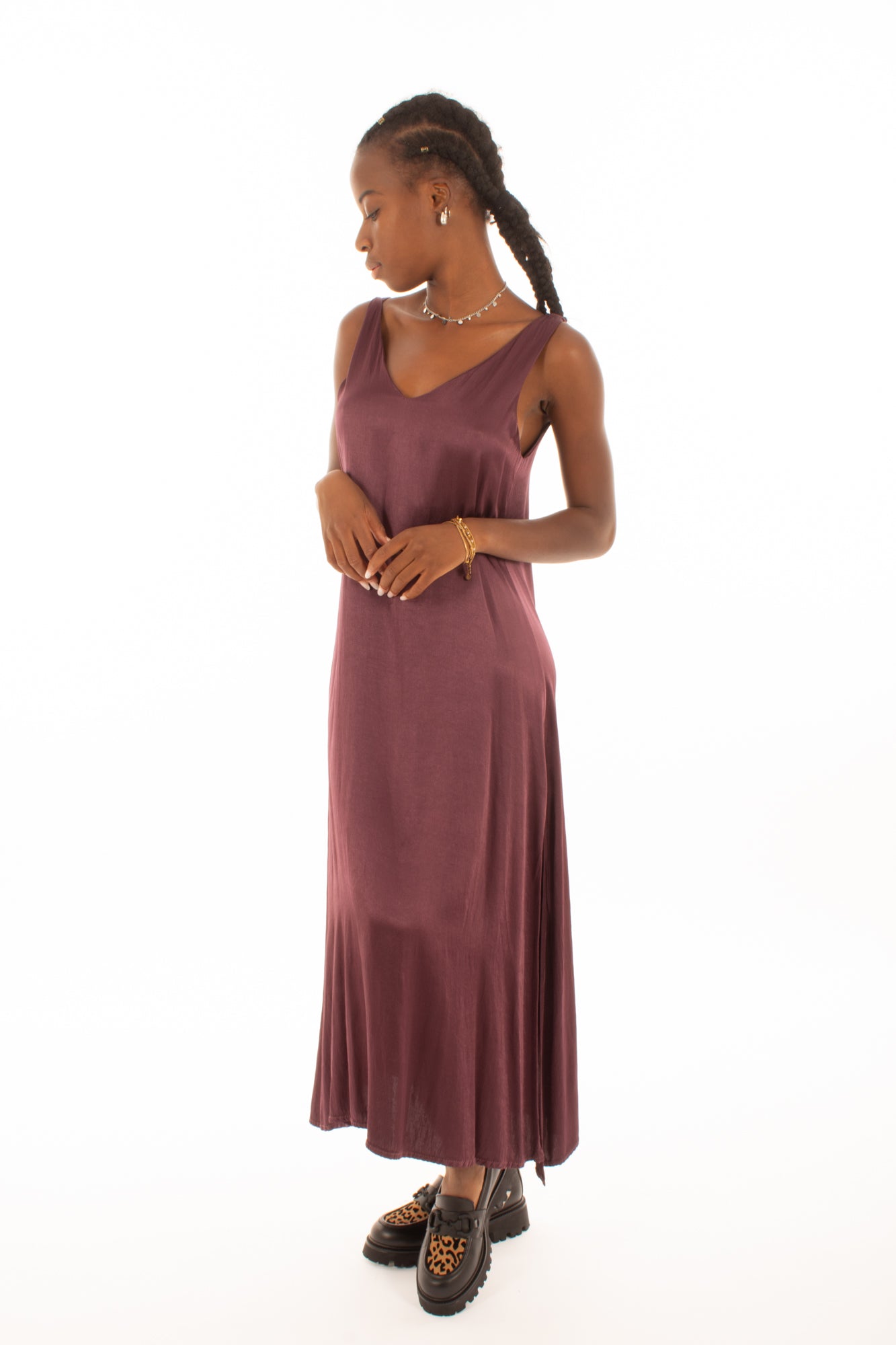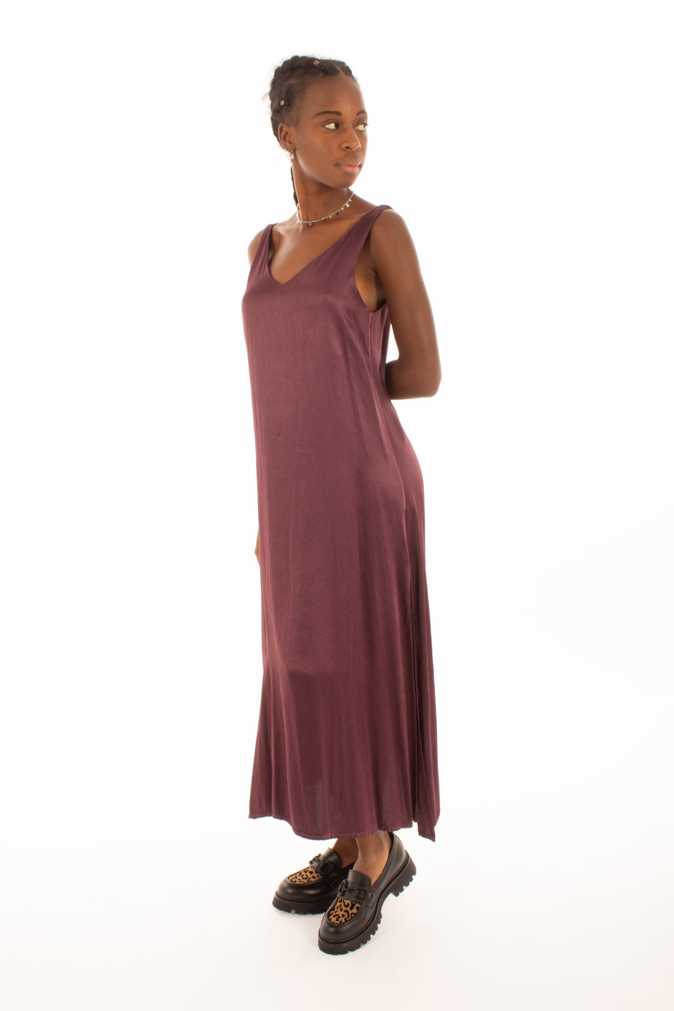 Risplendi in ogni occasione con il nostro Abito Lungo in Viscosa Miamata - Vino. Composto al 55% da viscosa e al 45% da rayon, questo capo è una dichiarazione di stile e comfort.