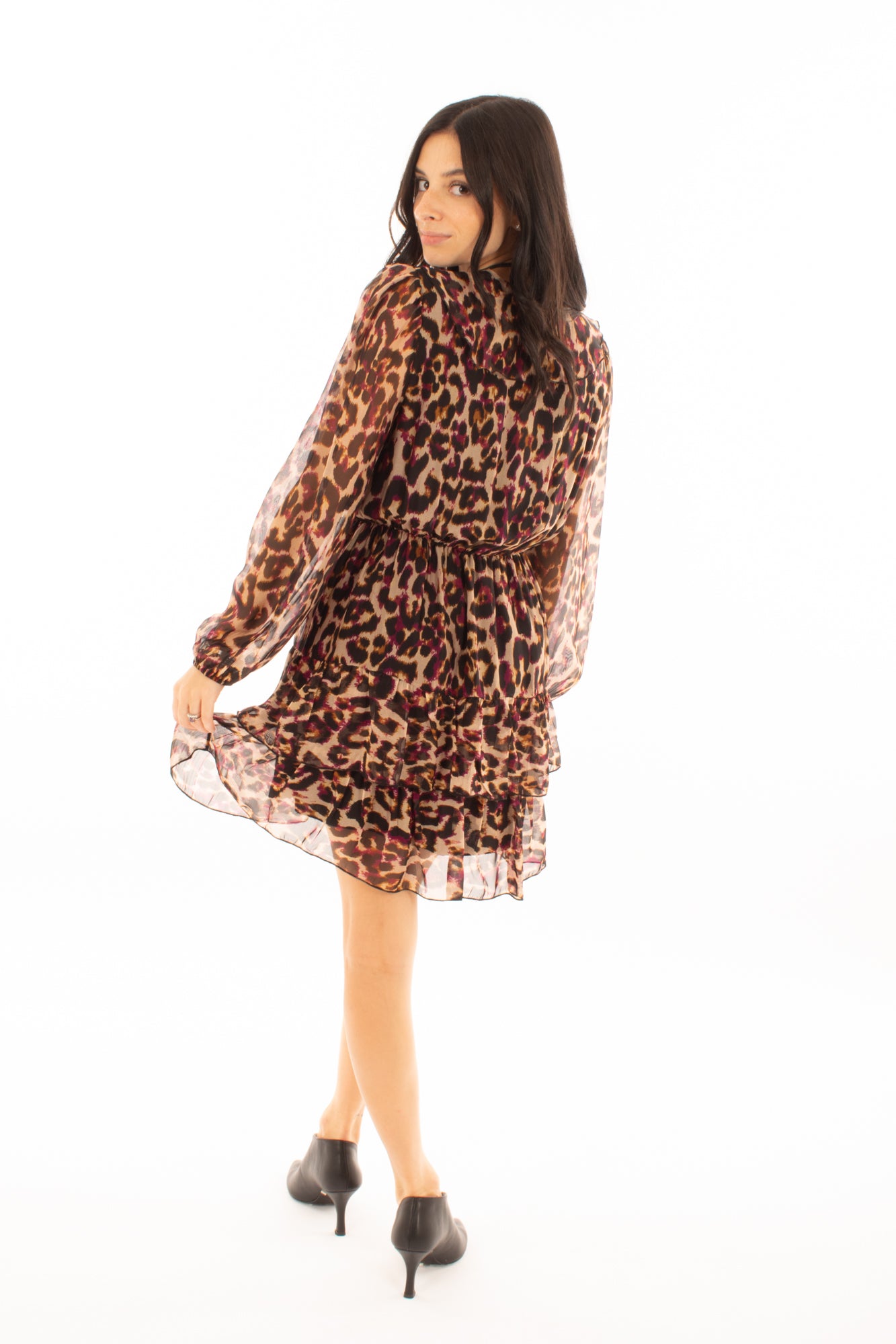 L'abito maculato con scollo a v e voilà è un capo alla moda e versatile che può essere indossato per molti eventi e occasioni. Realizzato in tessuto confortevole, offre una silhouette perfetta e trasmette uno stile di classe. Rifinito con dettagli di moda, è una scelta pratica che risalta con tutti gli accessori.