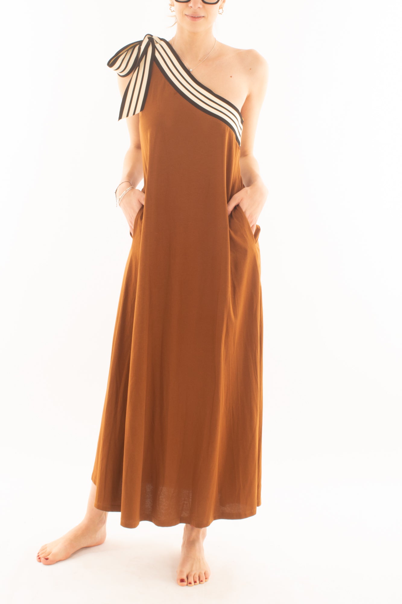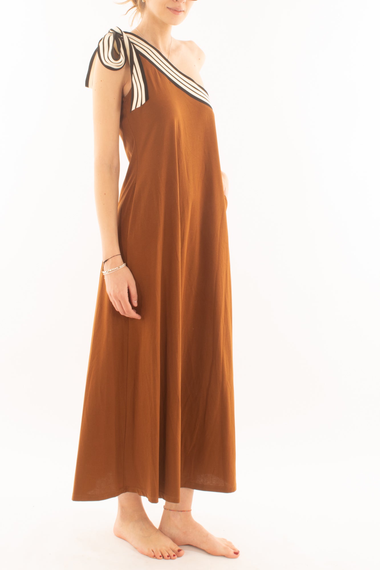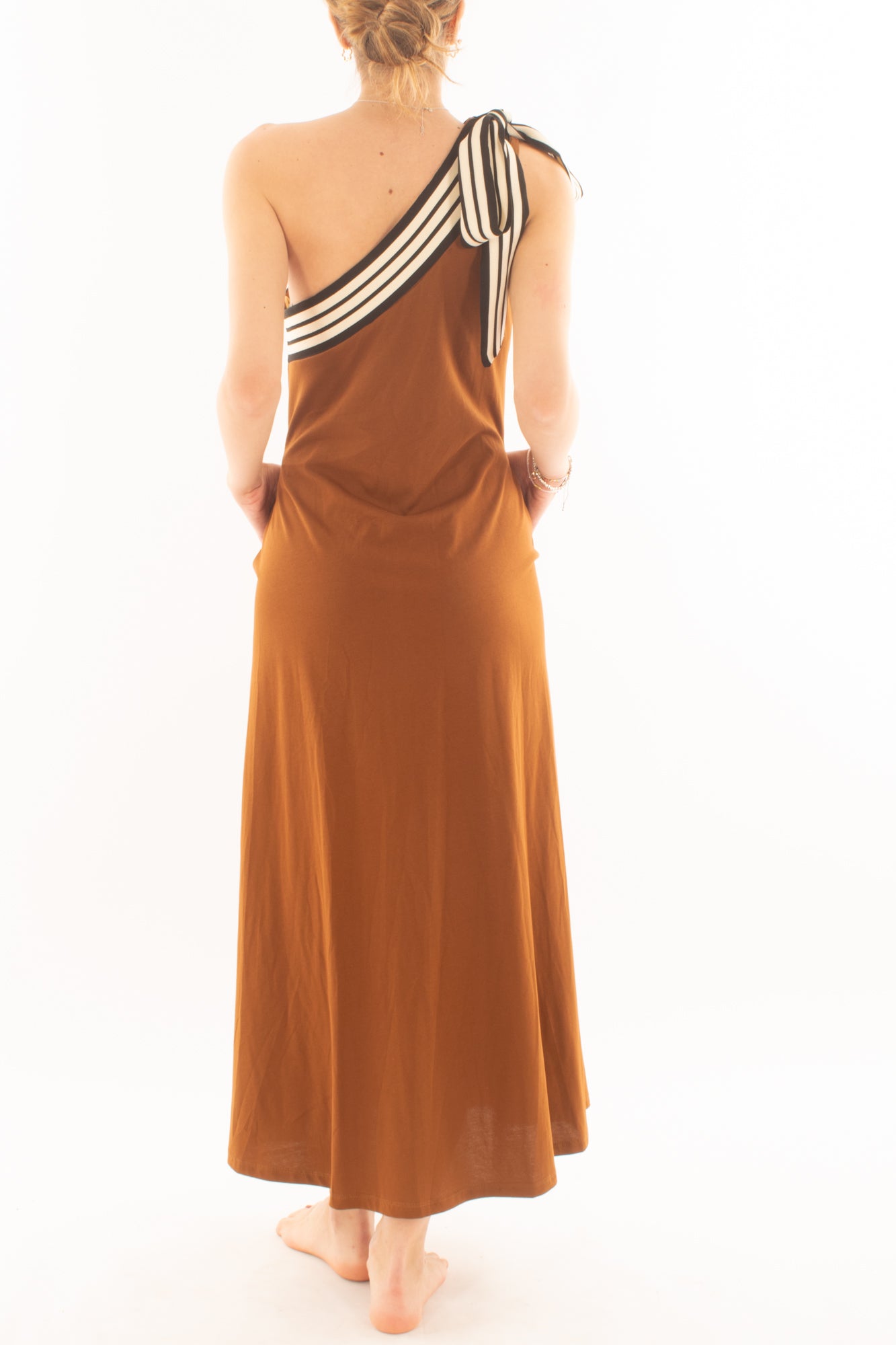 Abito monospalla con banda laterale da Donna Motel - Cammello