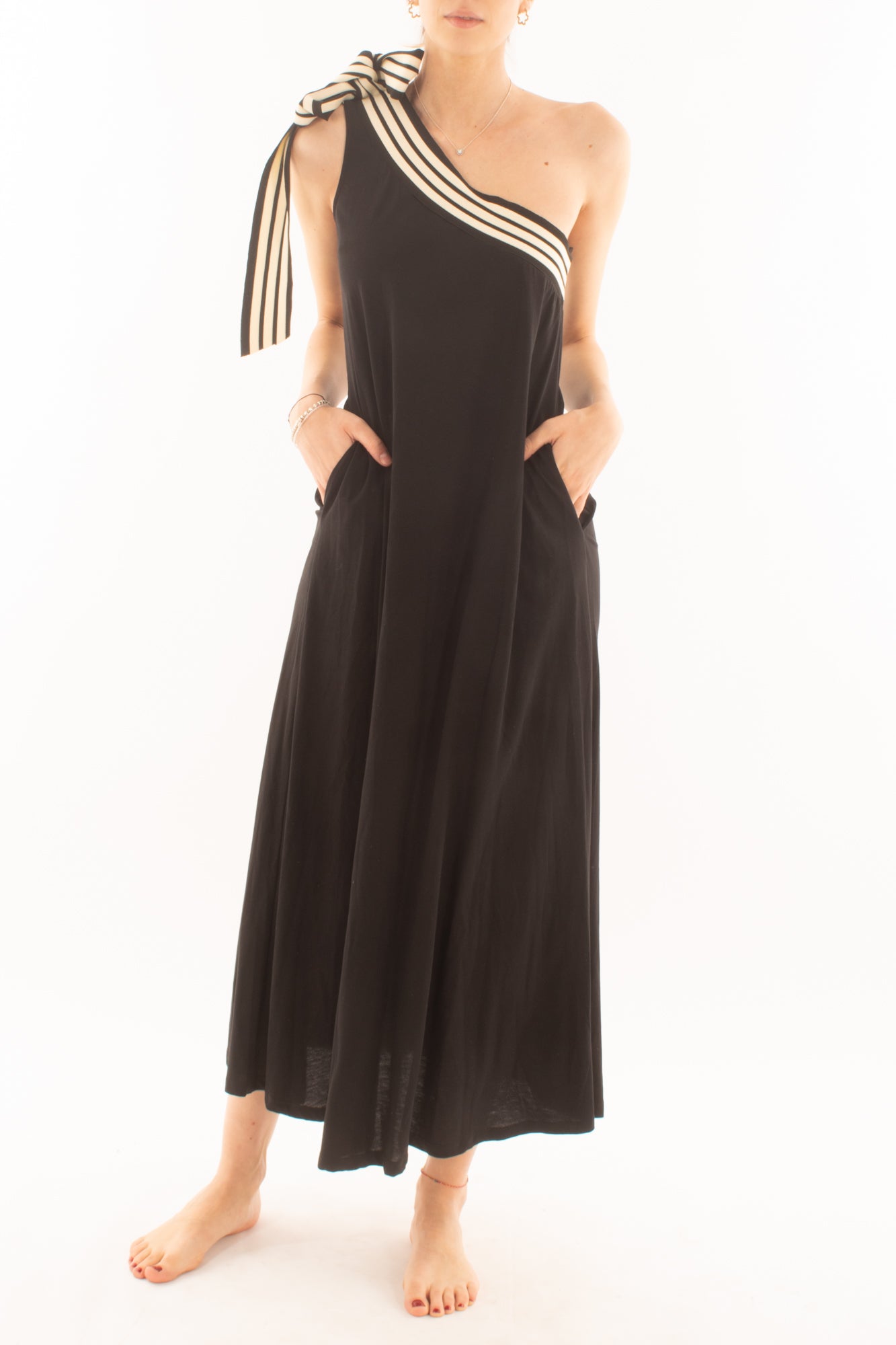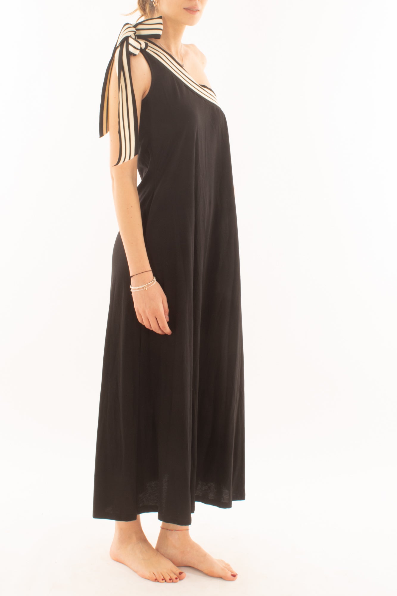 Scopri l'eleganza di un abito lungo monospalla con bande laterali, perfetto per ogni occasione speciale. Realizzato con tessuti di alta qualità, questo abito unisce stile e comfort, valorizzando la tua figura con un tocco sofisticato e moderno. Ideale per serate glamour e eventi esclusivi.