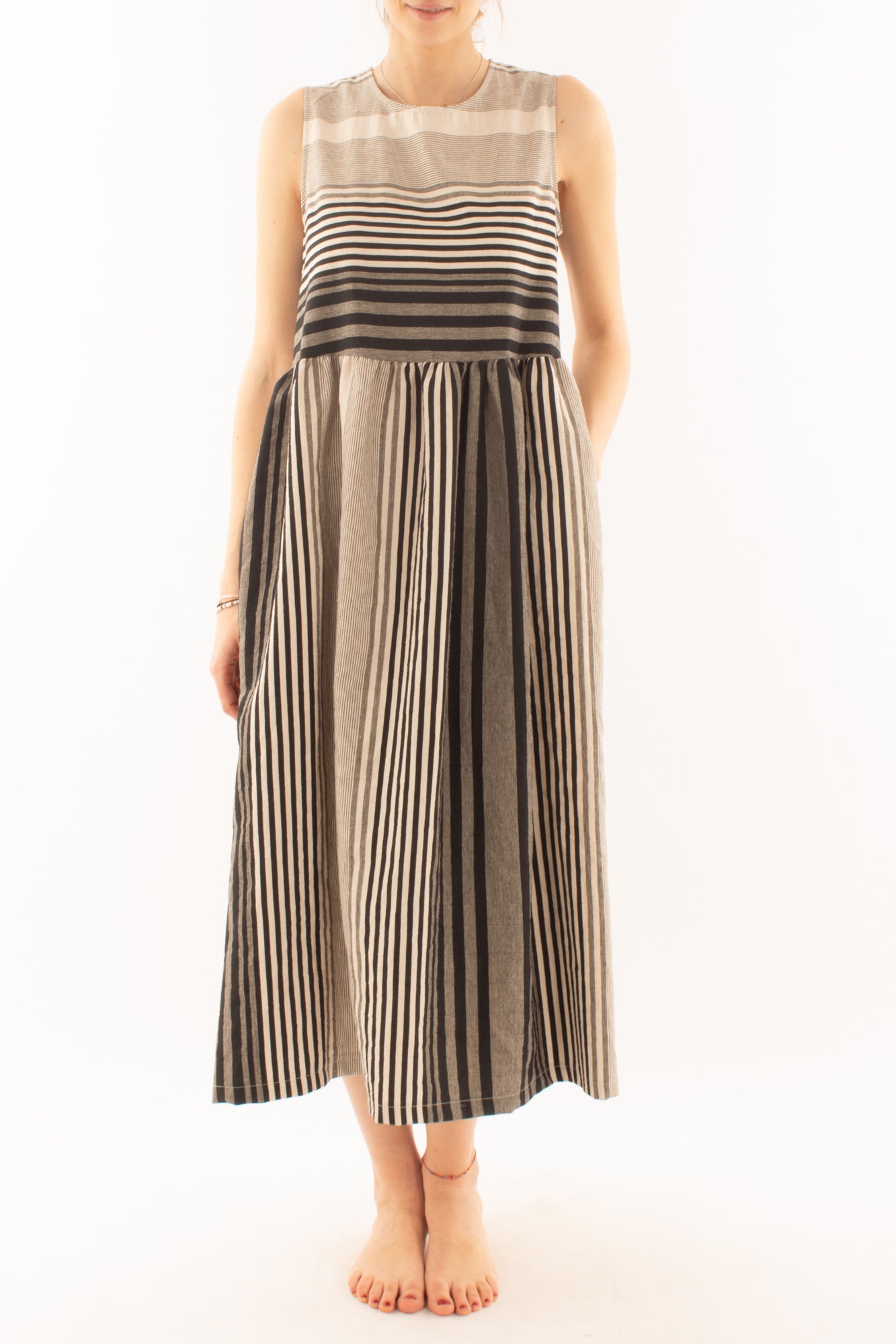 Scopri l'eleganza senza tempo con il nostro abito lungo senza maniche Mille Righe. Con vestibilità over, questo capo offre comfort e stile ineguagliabili, perfetto per ogni occasione.
