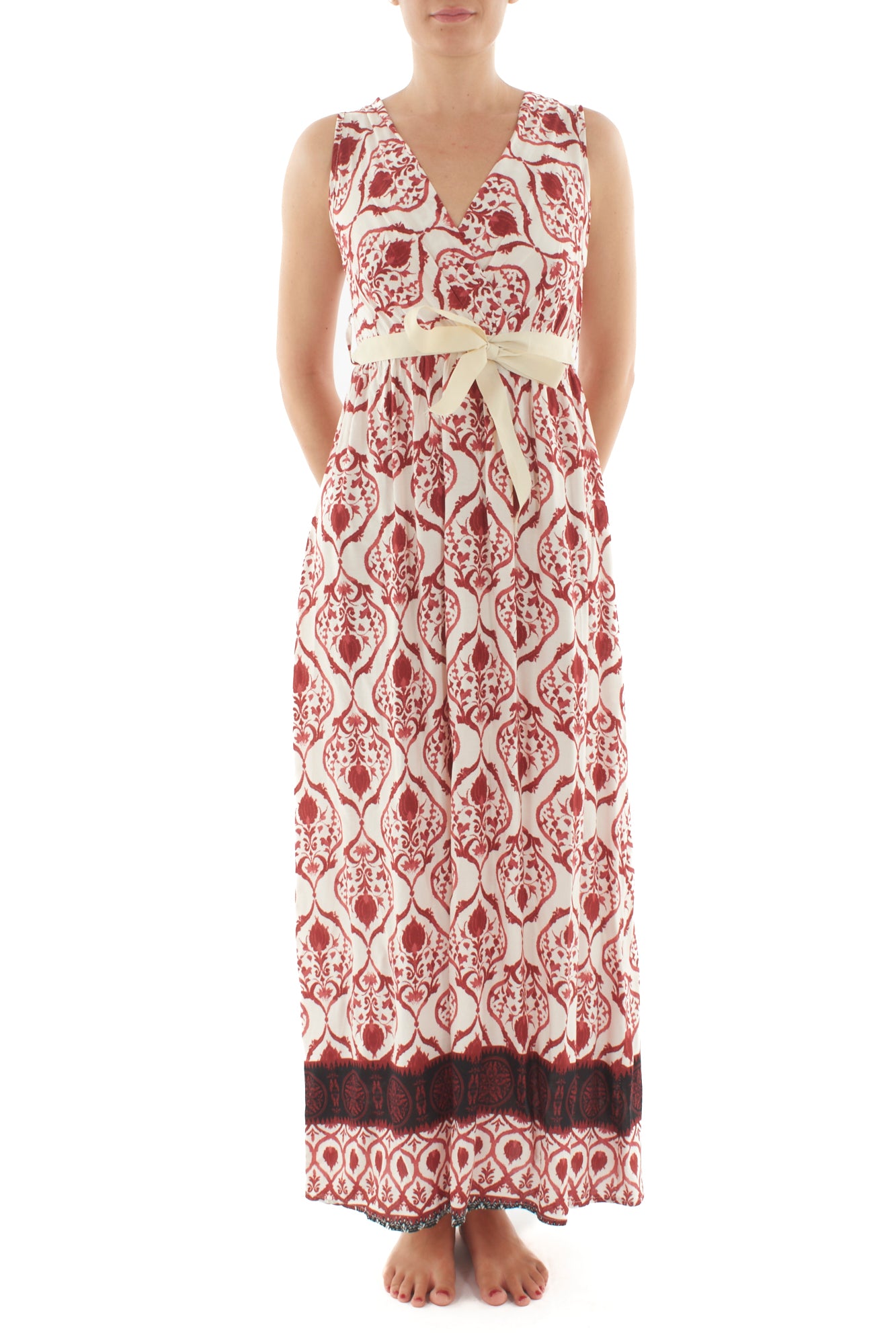 Elegante abito in viscosa con scollo doppio a V e stampa vivace. Questo capo versatile esalta la femminilità grazie alla sua vestibilità fluida e al design raffinato. Perfetto per ogni occasione, unisce comfort e stile in un'unica creazione di moda.