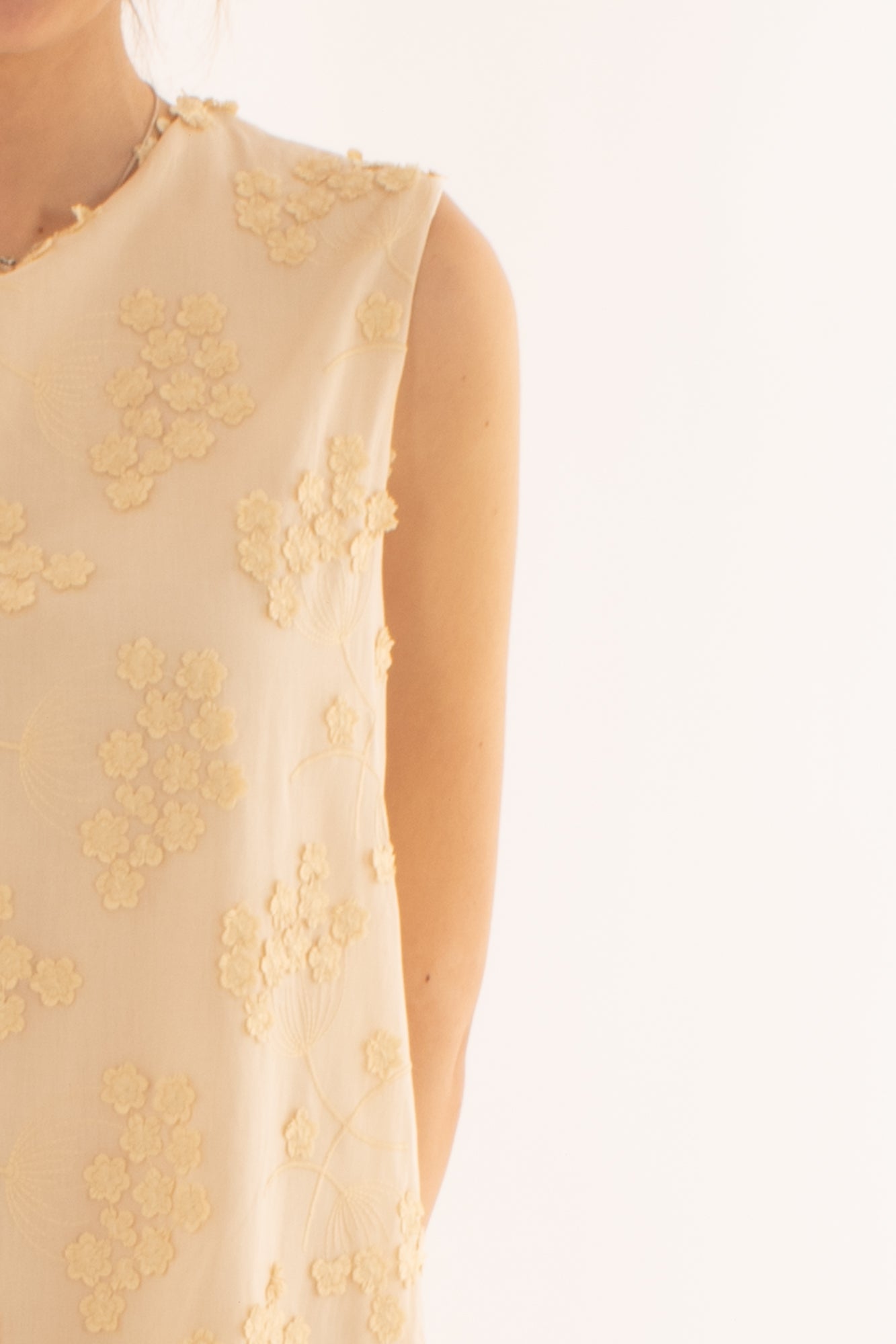 Scopri l'eleganza senza tempo di un abito smanicato a trapezio con ricami floreali applicati. Perfetto per ogni occasione, questo abito unisce stile e comfort, valorizzando la tua figura con un tocco di raffinatezza artigianale. Il dettaglio floreale aggiunge un fascino romantico e sofisticato.