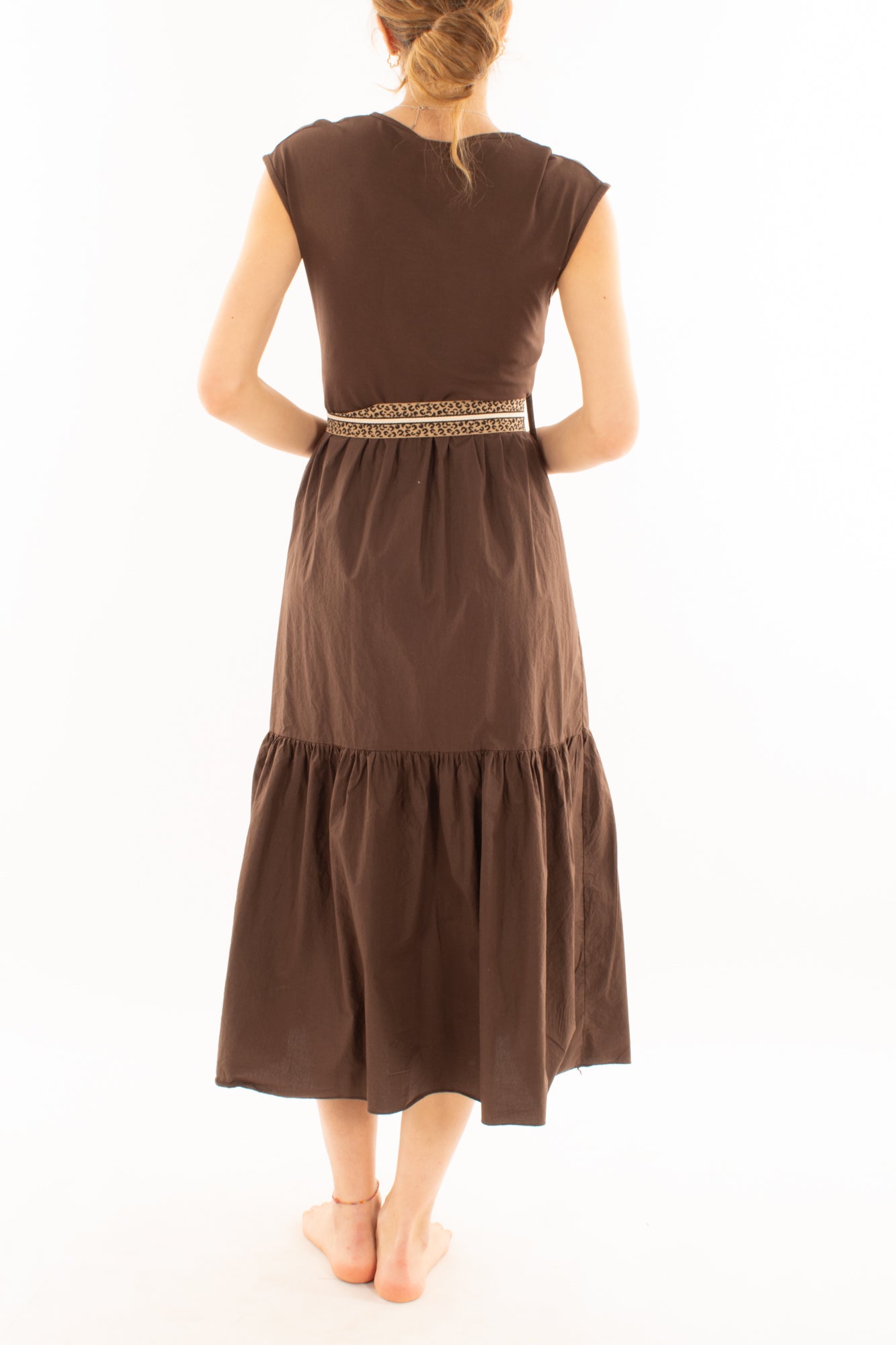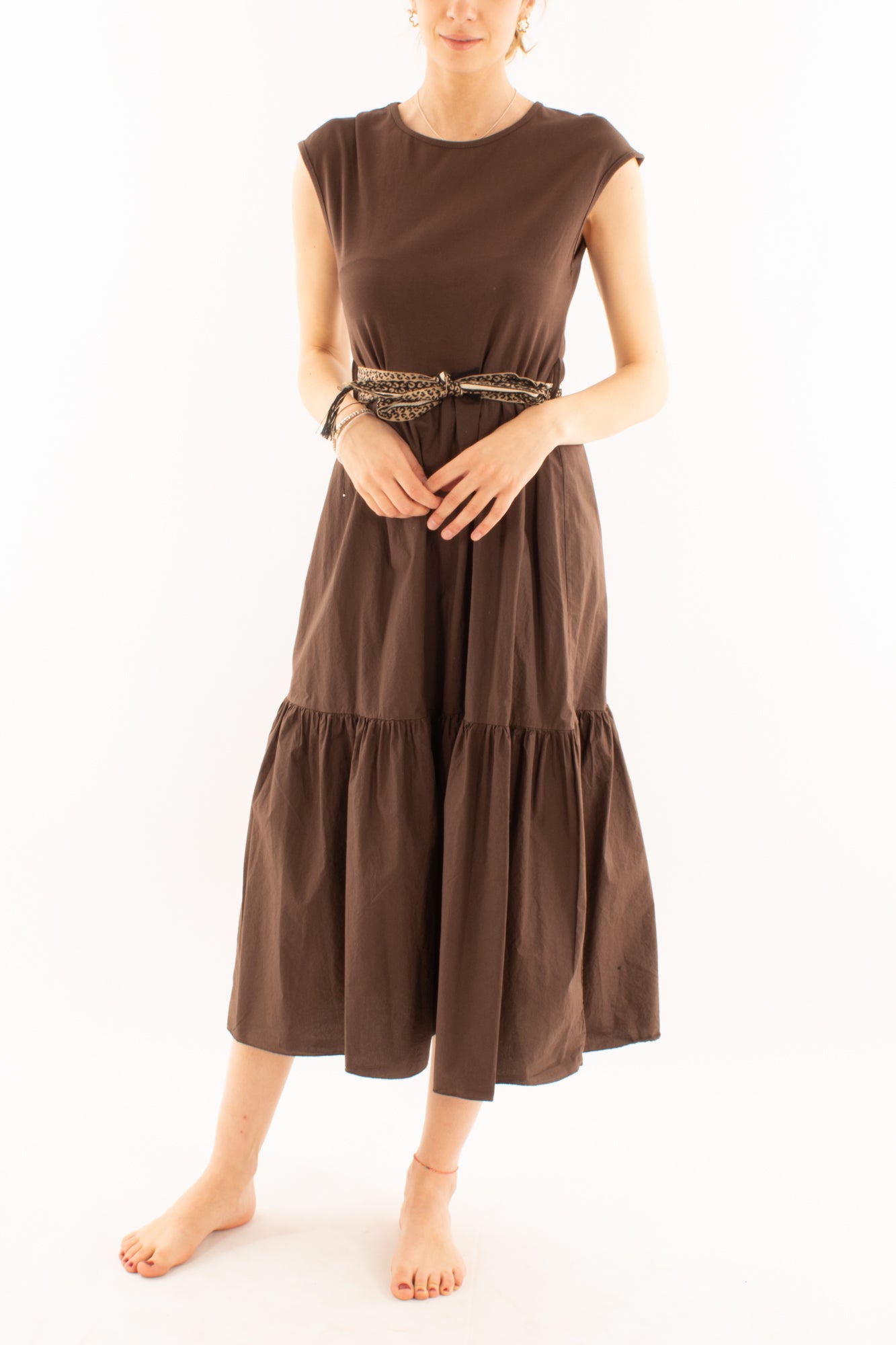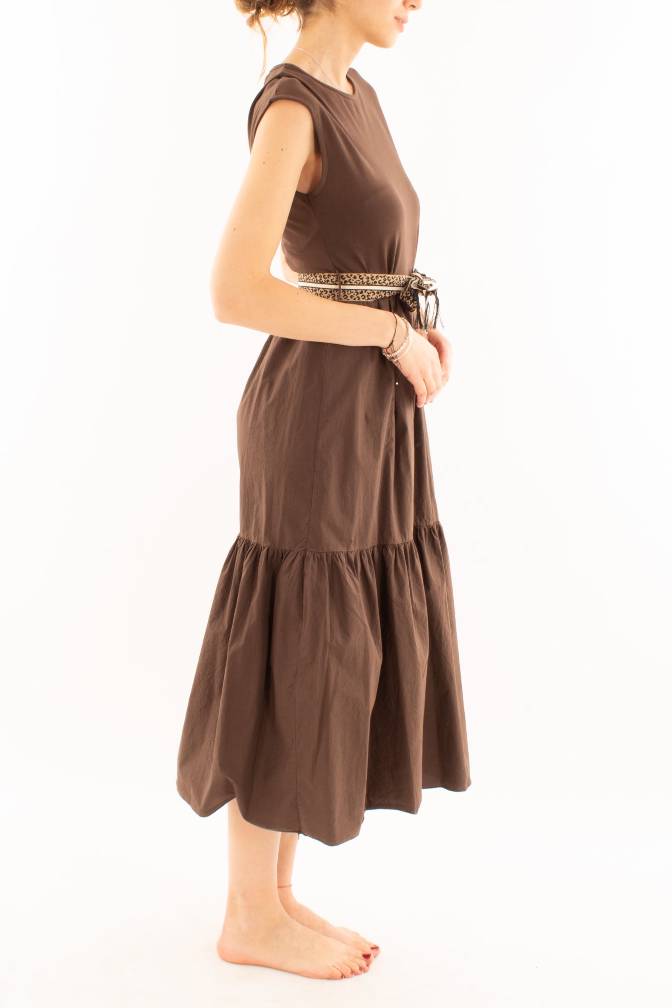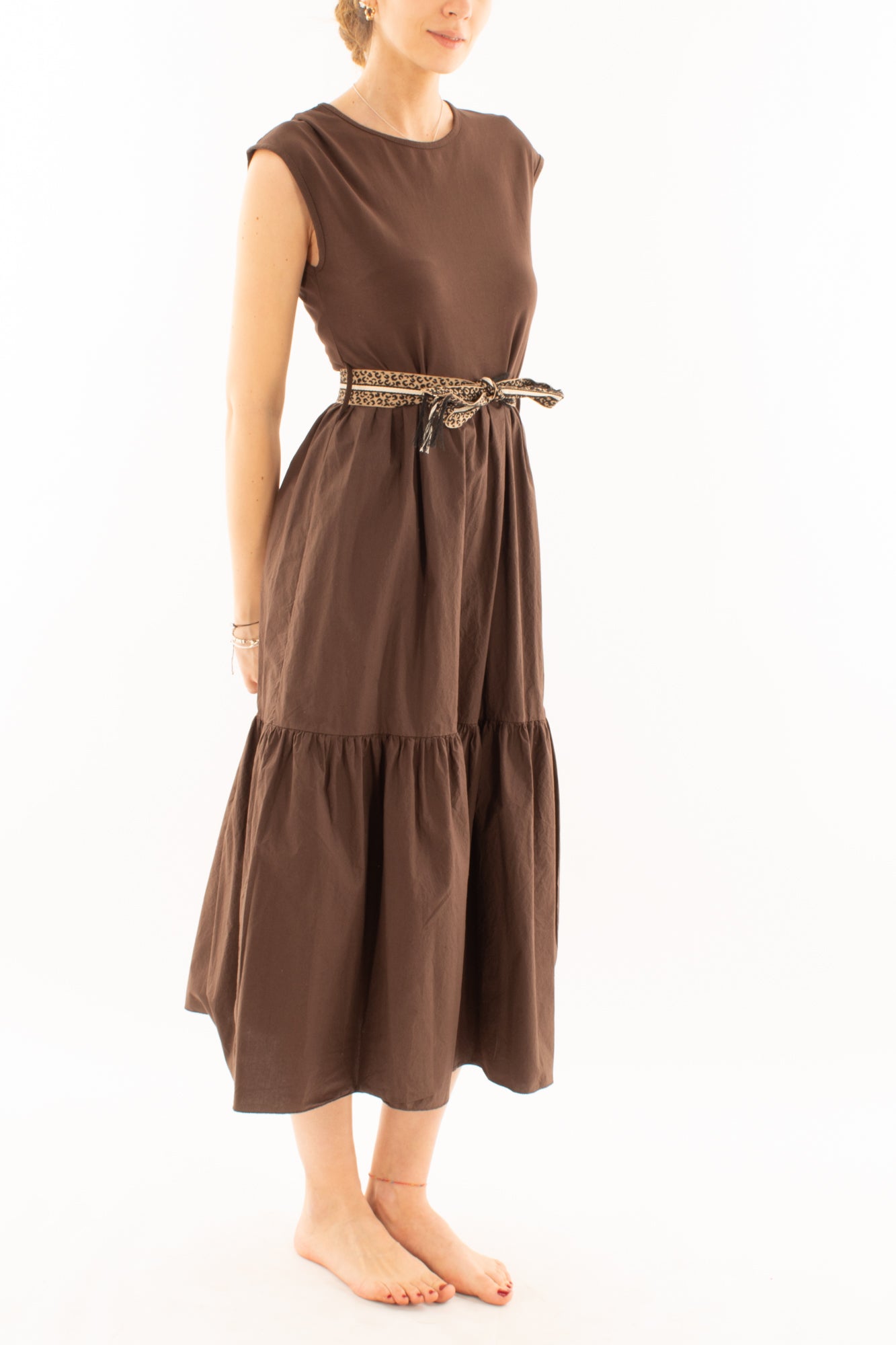 Scopri l'eleganza senza tempo di questo abito lungo senza maniche, caratterizzato da una raffinata balza sul fondo e una cintura a contrasto. Ideale per occasioni speciali, unisce stile e comfort con un design che incanta.