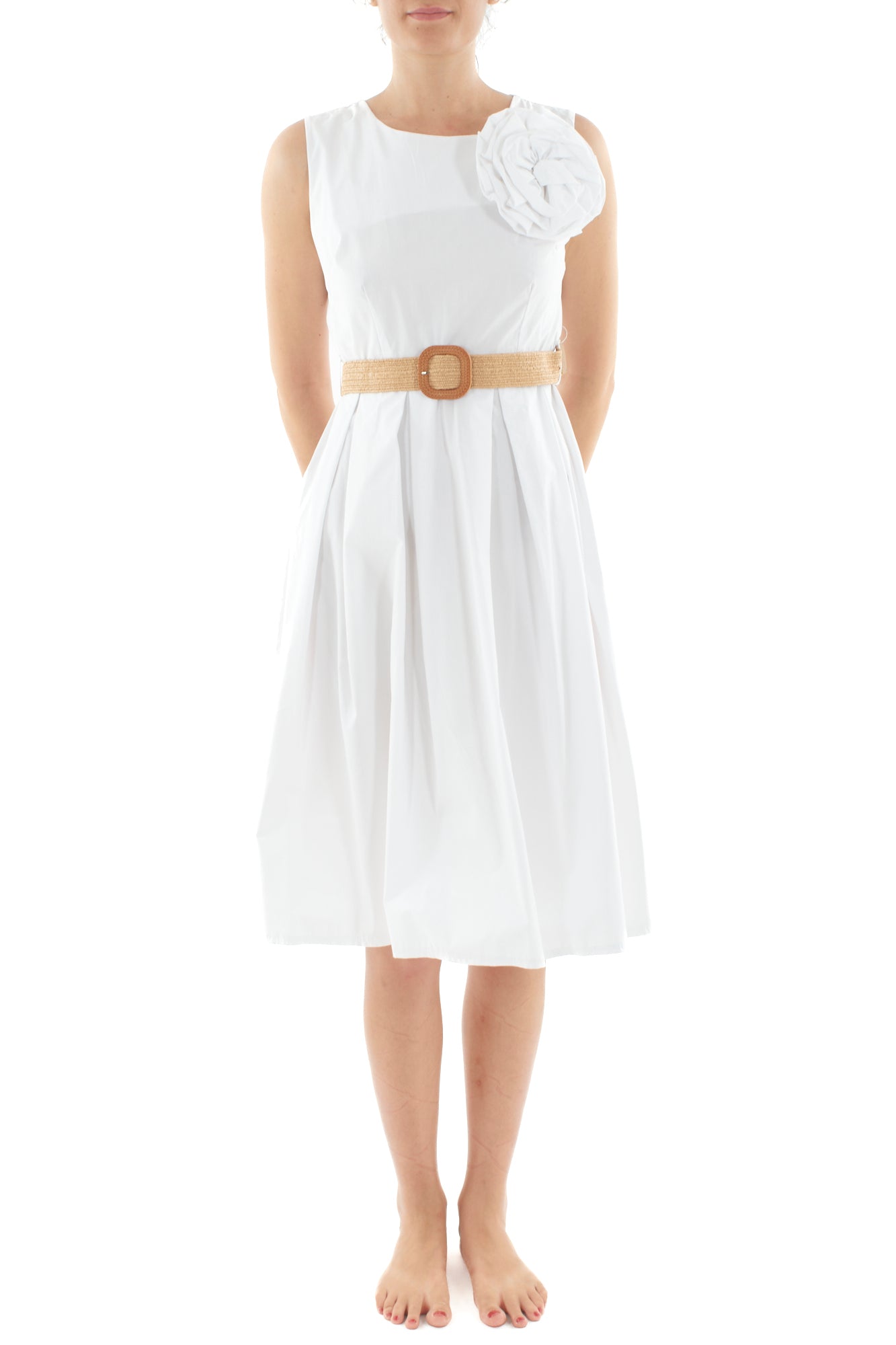 Abito smanicato con fiore da Donna Metoo - Bianco