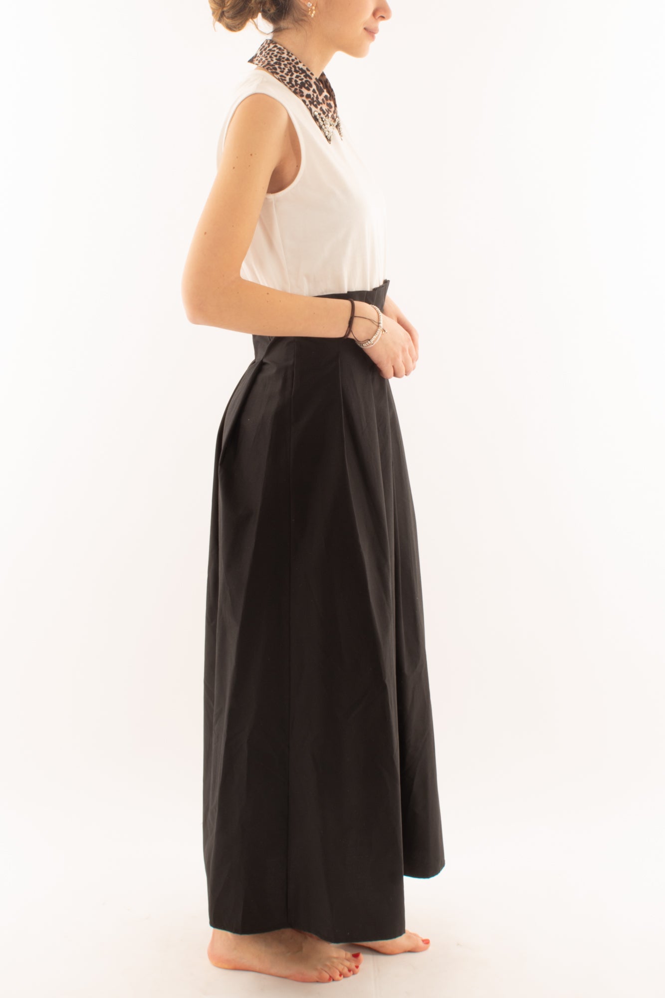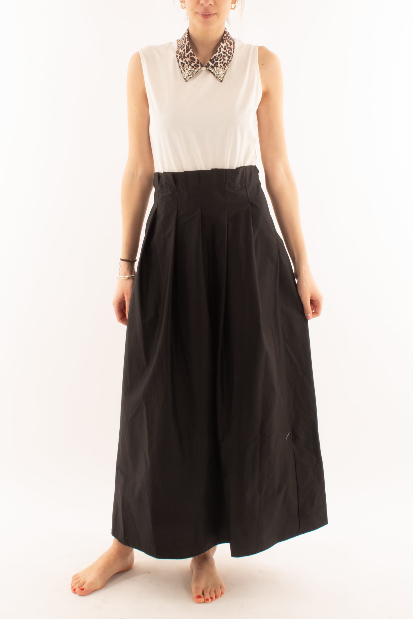 "Esplora l'eleganza senza tempo con il nostro abito lungo smanicato. Il suo design unico, arricchito da un collo staccabile leopardato e dettagli di pietre, incarna l'essenza sofisticata della moda.