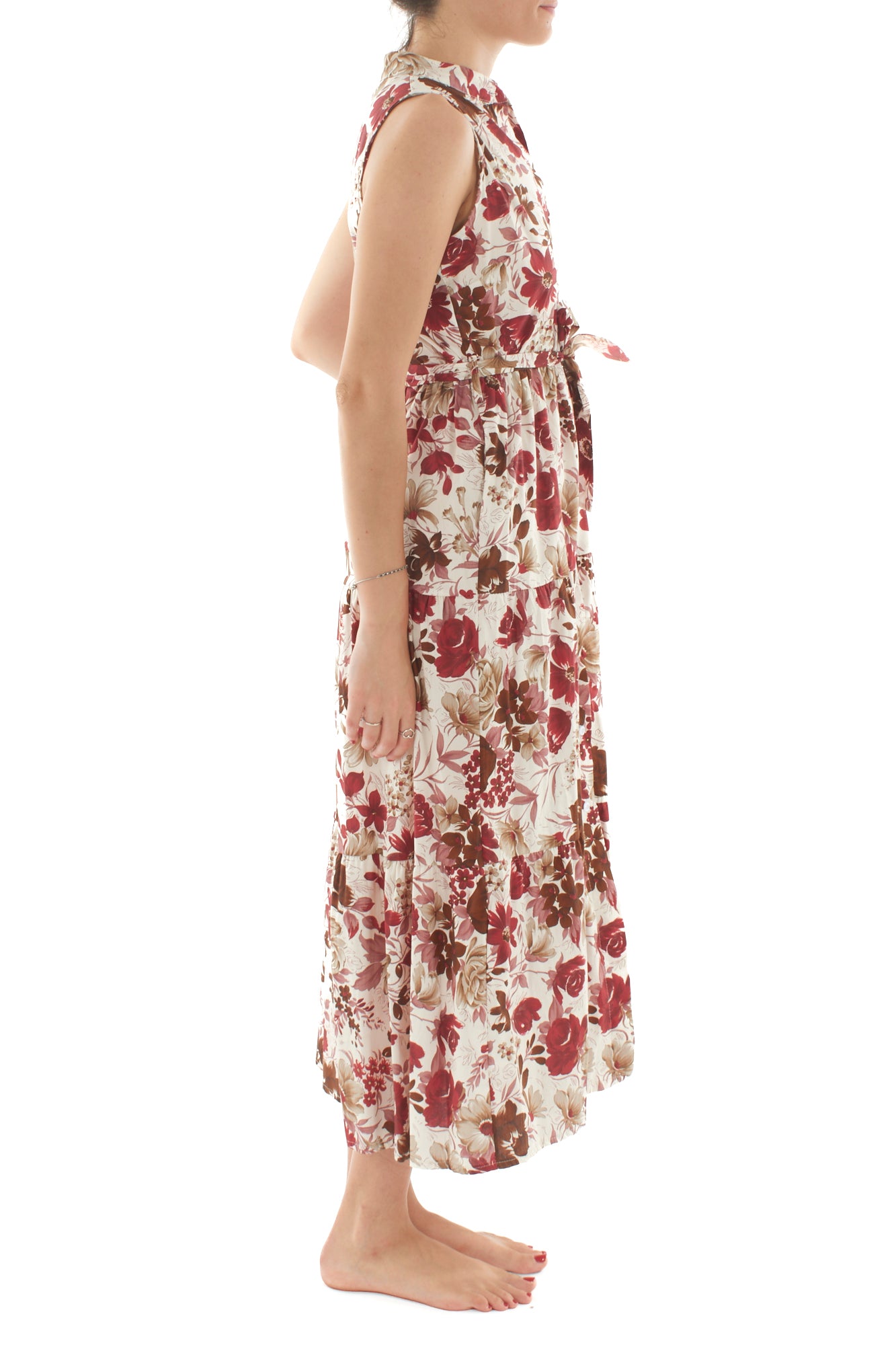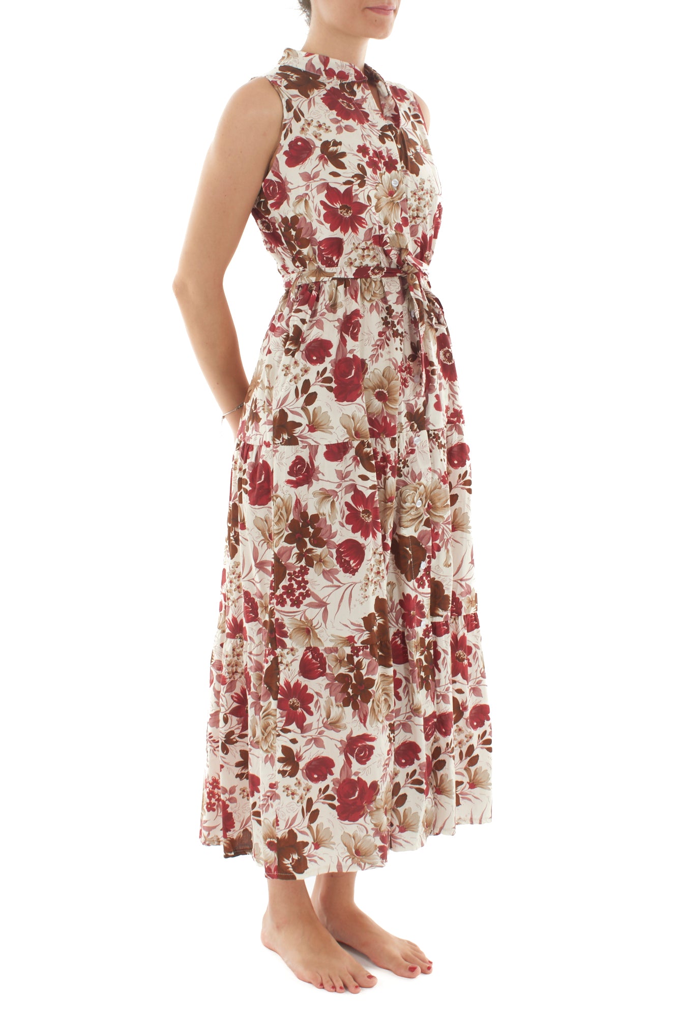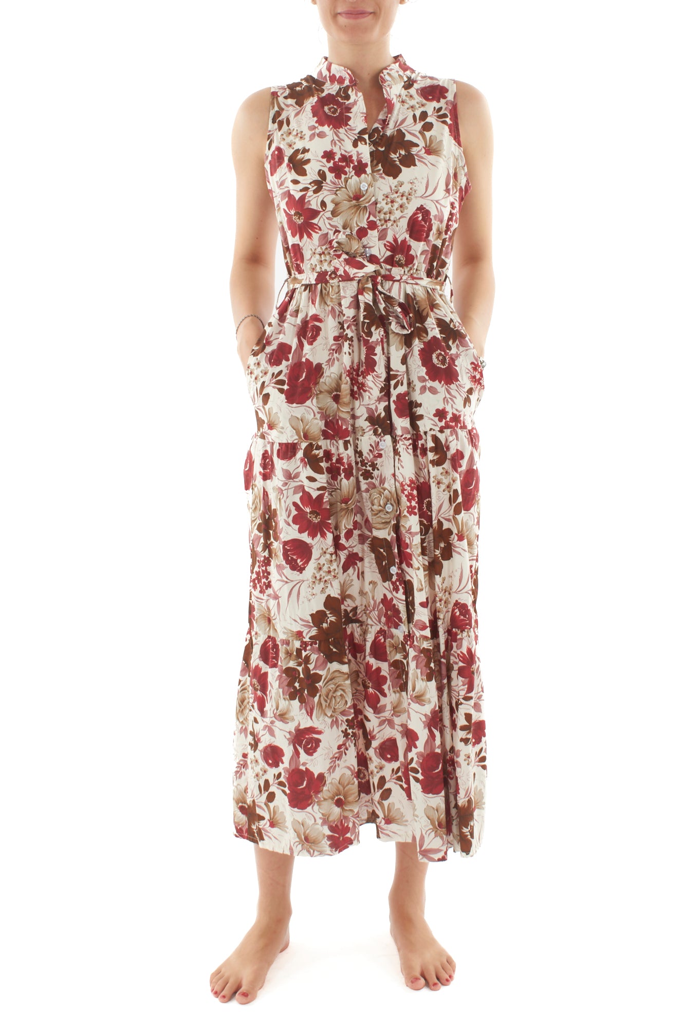 Elegante abito chemisier smanicato floreale, perfetto per aggiungere un tocco di freschezza al tuo guardaroba estivo. Il design fluido e leggero offre comfort e stile, ideale per giornate calde e serate rilassanti.