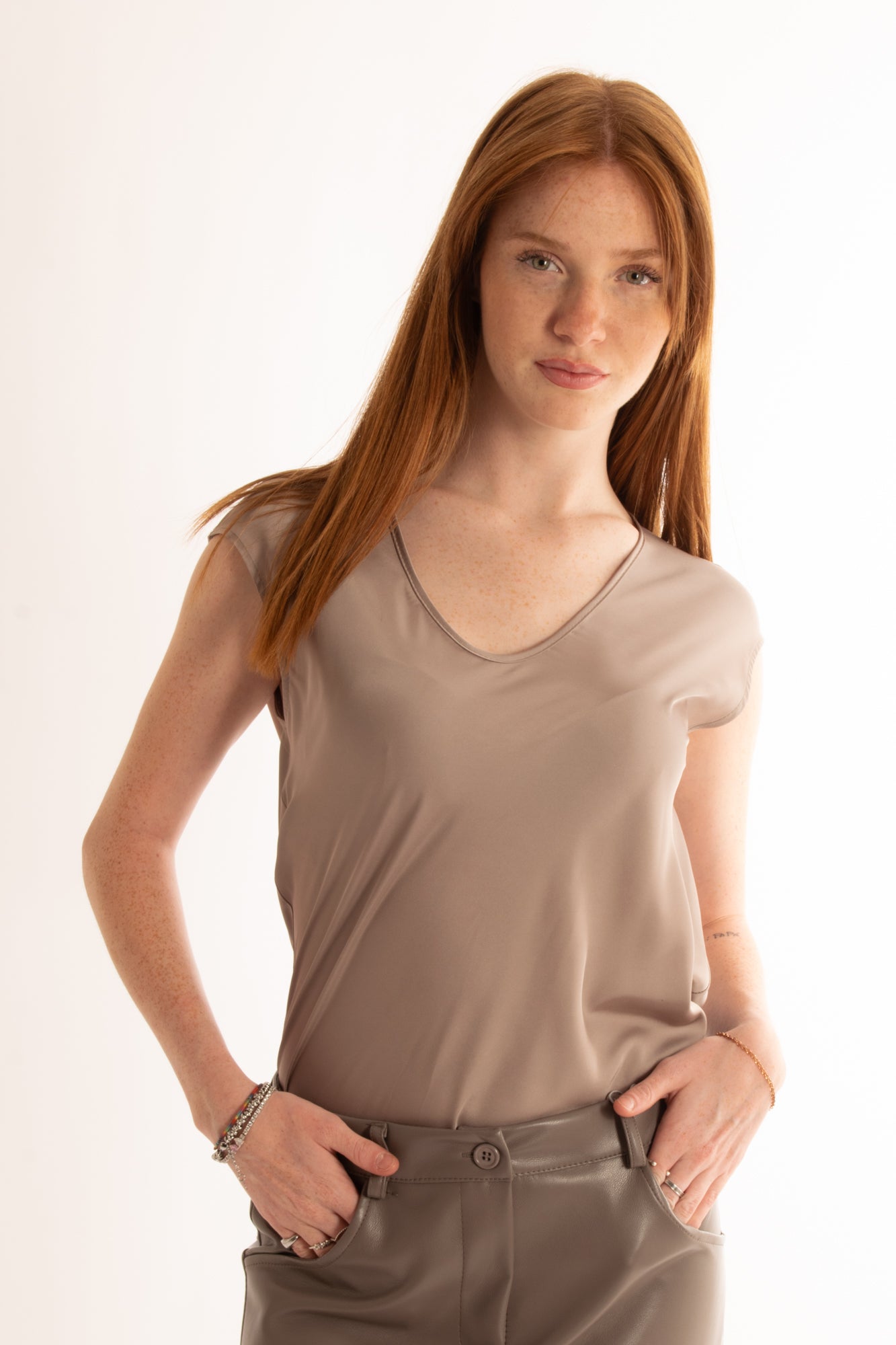 Blusa a v senza maniche sottogiacca, veste regolare.