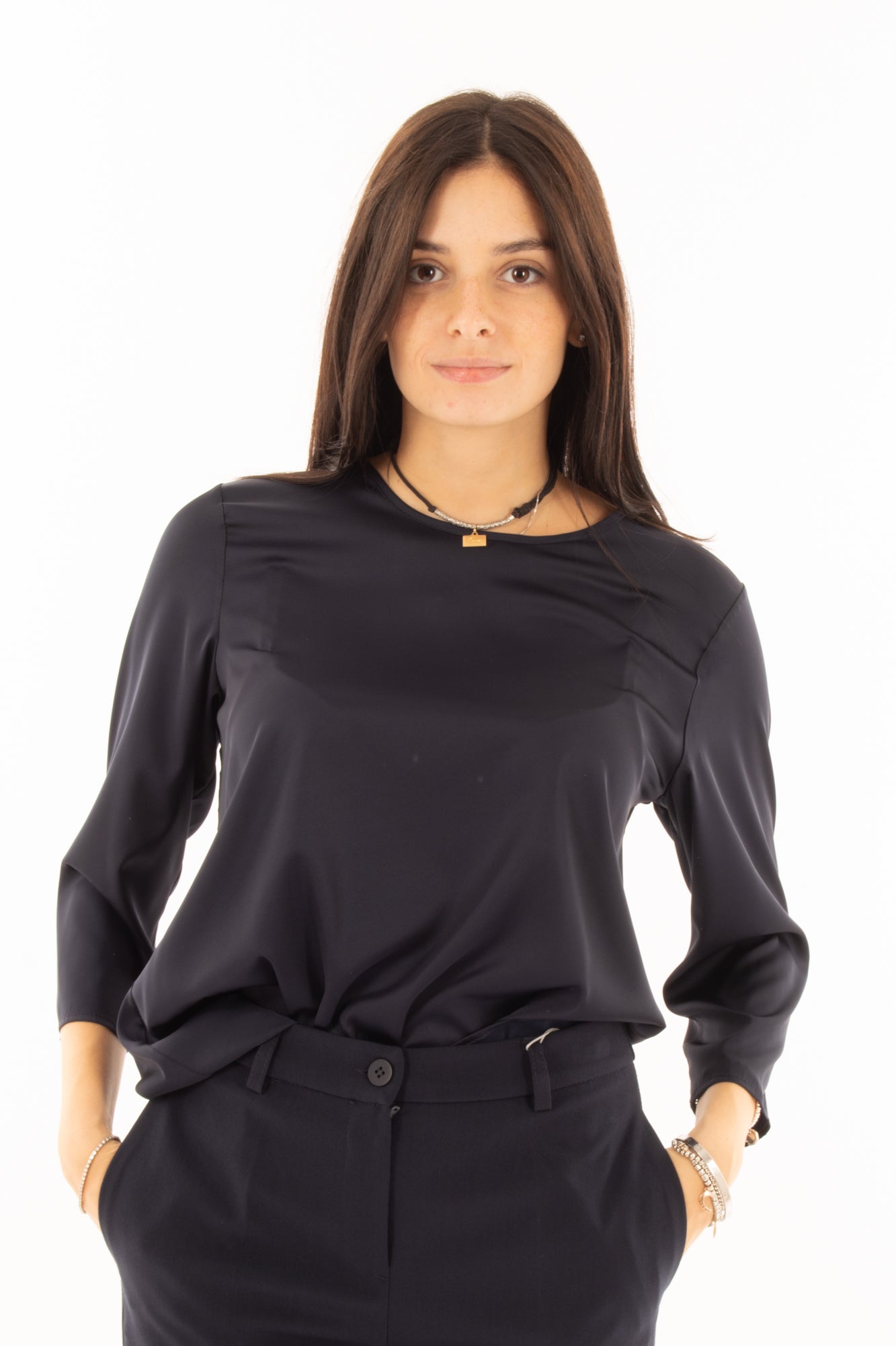 Scopri l'eleganza senza tempo con la nostra blusa girocollo con manica 3/4. Realizzata con tessuti di alta qualità, questa blusa offre comfort e stile ineguagliabili. La sua silhouette versatile si adatta a ogni occasione, mentre le maniche 3/4 aggiungono un tocco chic. Scegli la moda senza sforzo con la nostra blusa girocollo, perfetta per un look sofisticato e moderno. Acquista ora e trasforma il tuo guardaroba con un capo classico e alla moda