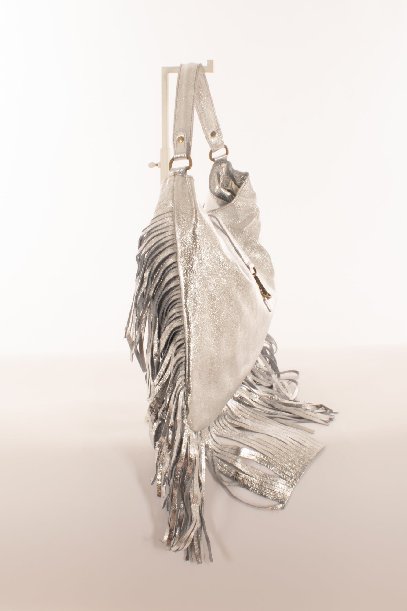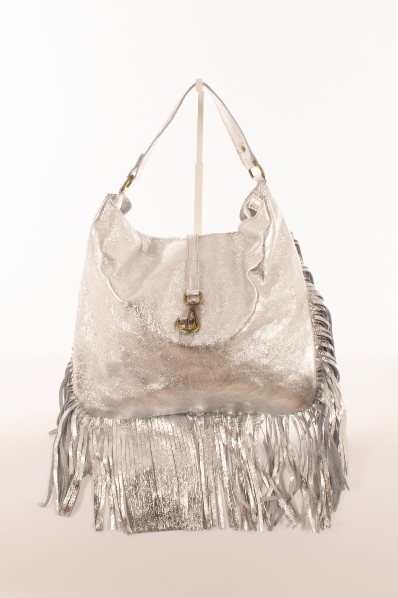 "Eleva il tuo stile con la nostra esclusiva borsa piatta argentata con frange. Un accessorio moda irresistibile che unisce praticità ed eleganza. Realizzata con materiali di alta qualità, questa borsa aggiunge un tocco di glamour ad ogni outfit. Scopri la perfezione del design e la versatilità di questo must-have per la tua collezione di accessori. Acquista ora e lasciati ispirare dalla moda che parla di te."