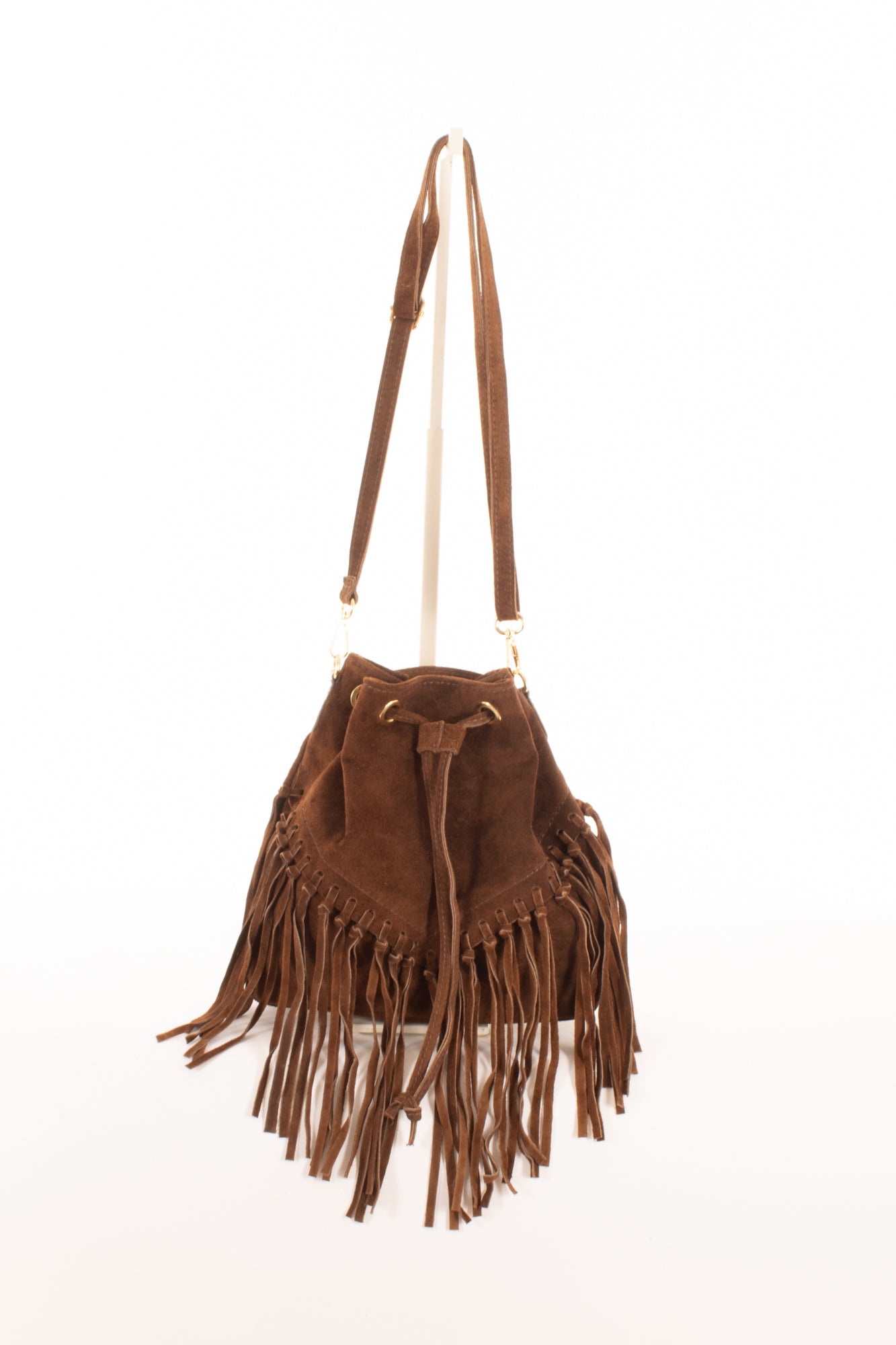 Eleva il tuo stile con la nostra esclusiva borsa scamosciata a secchiello con frange. Realizzata con precisione artigianale, questo accessorio trendy unisce design moderno e dettagli bohémien. Le frange dinamiche aggiungono un tocco di movimento, mentre la morbida scamosciatura dona un tocco di lusso. Sia che tu stia per un brunch o una serata fuori, questa borsa è un must-have per chi cerca un'eleganza senza sforzo. Acquista ora e completa il tuo look con la nostra borsa scamosciata di tendenza.