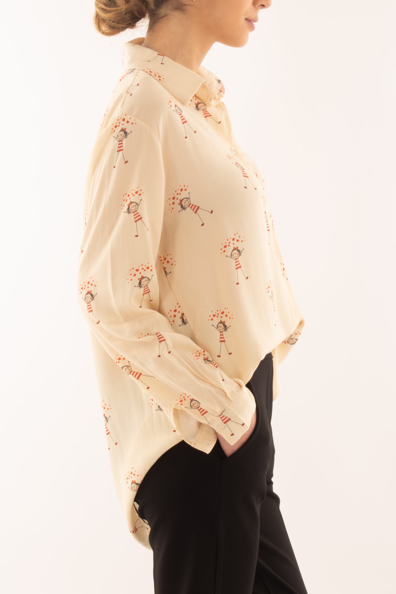 "Scopri la nostra esclusiva camicia stampata con un'adorabile bambina in viscosa! Realizzata con materiali di alta qualità, questa camicia è perfetta per un look fresco e vivace. Con il suo design unico e colori brillanti, è l'ideale per aggiungere un tocco giocoso al tuo guardaroba primaverile. Acquista ora e aggiungi un tocco di dolcezza al tuo stile!"