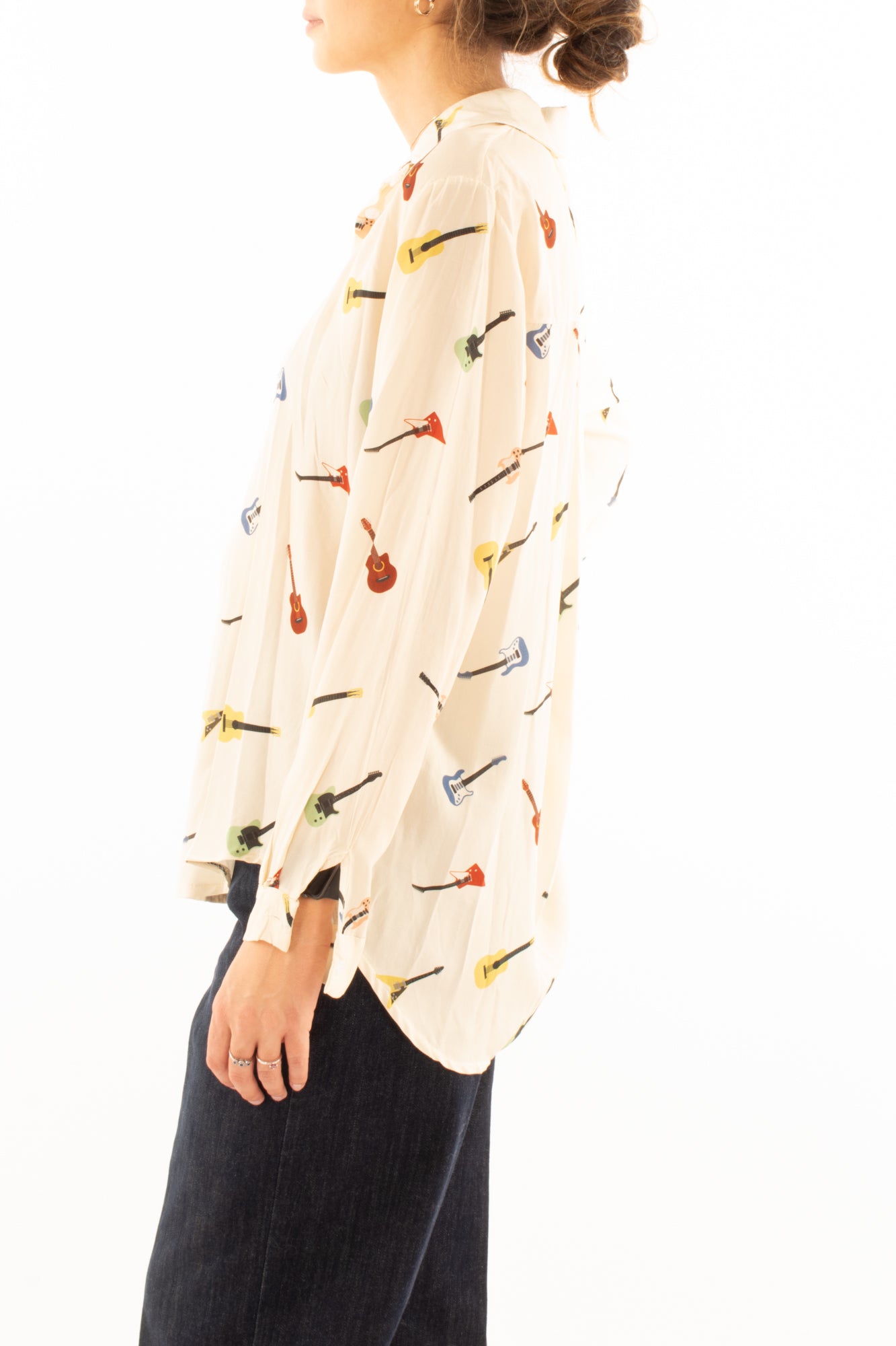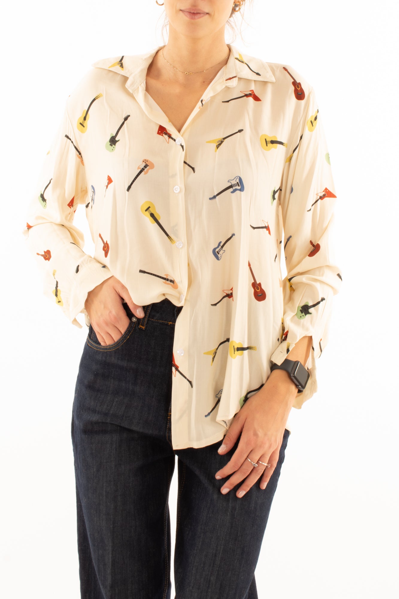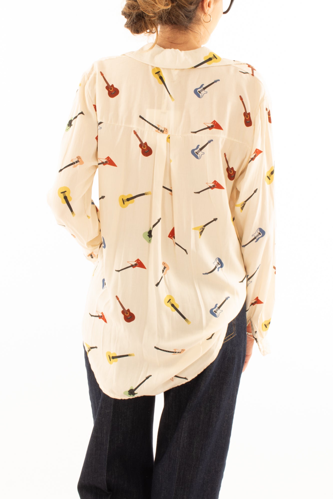 La camicia è stata disegnata con chitarre per un look alla moda. La miscela di viscosa offre comfort e traspirabilità per una vestibilità perfetta. Sei pronto a rock and roll!