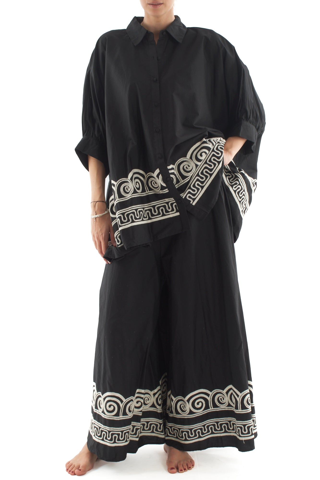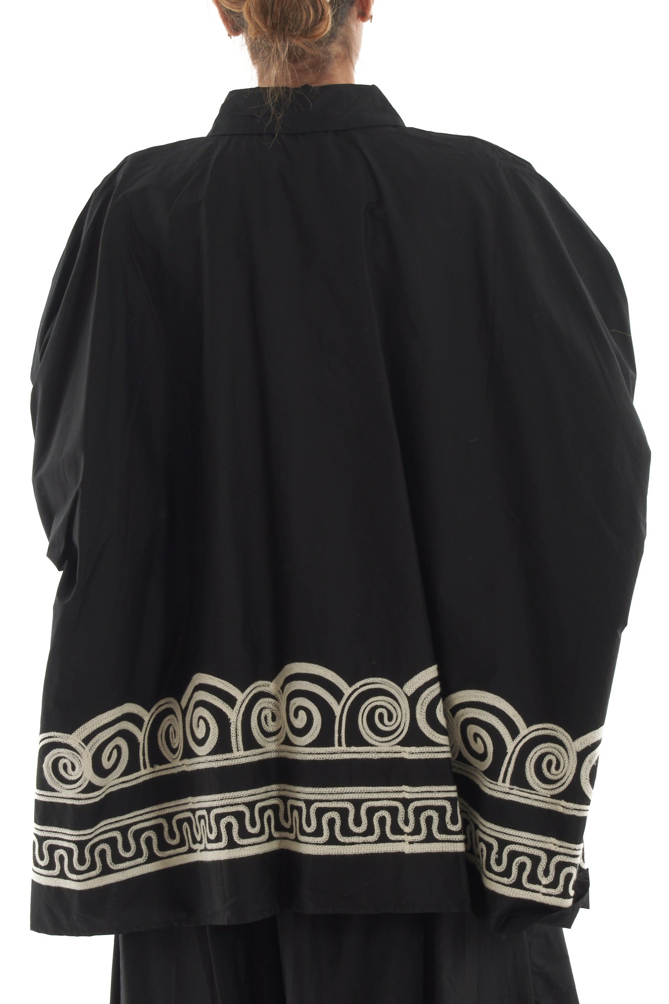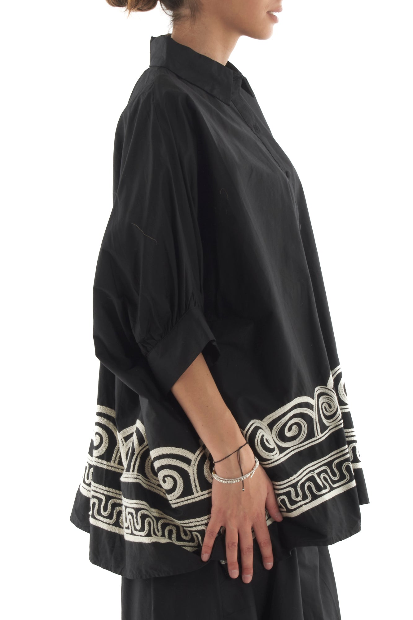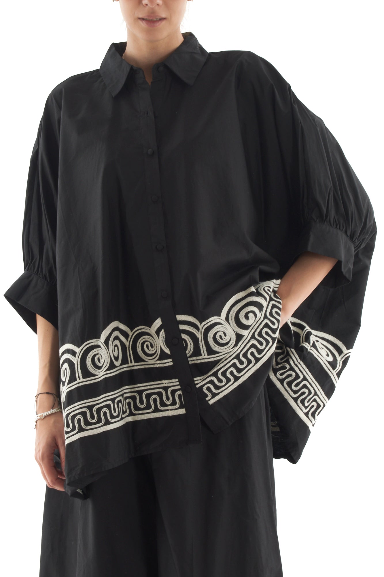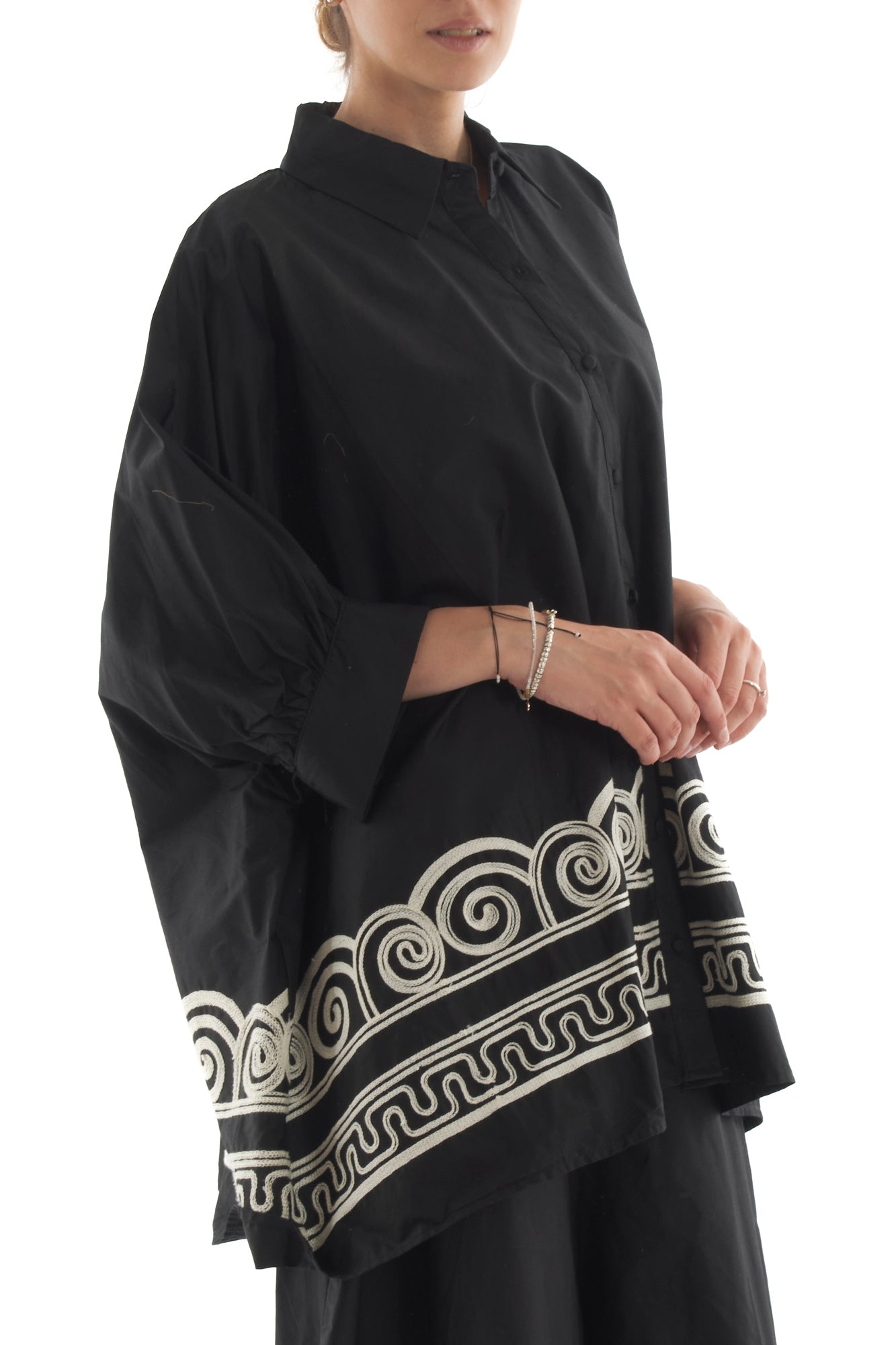 Camicia over con ricami a contrasto, perfetta per un look chic e raffinato. Design ampio e comodo, ideale per un tocco di eleganza casual. Ricami distintivi che aggiungono un elemento di stile unico. Perfetta per ogni occasione, dall'ufficio al tempo libero.