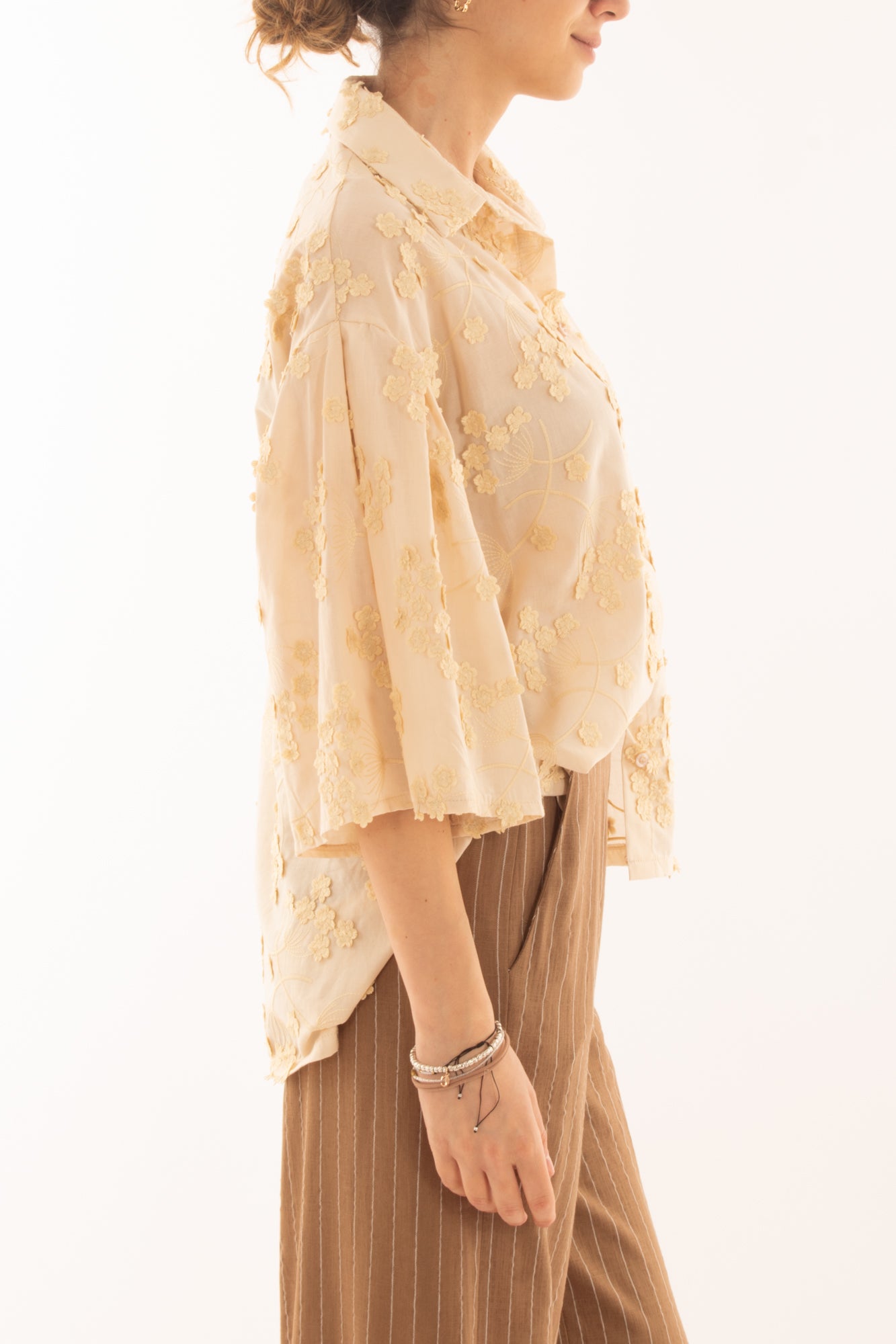 Camicia con ricami floreali da Donna Metoo -Sabbia