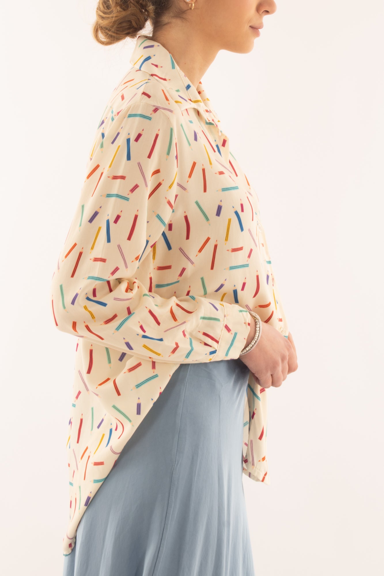 "Scopri la nostra camicia in viscosa con stampa matite, perfetta per un look accattivante e casual. Realizzata con tessuto di alta qualità, offre comfort e stile senza compromessi. Ideale per un tocco di originalità nel tuo guardaroba. Acquista ora!"