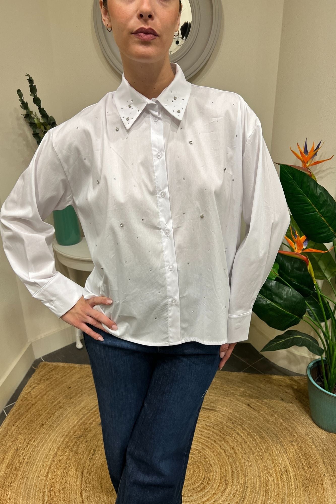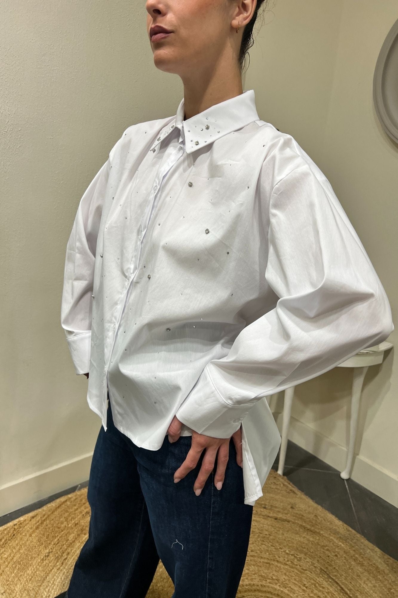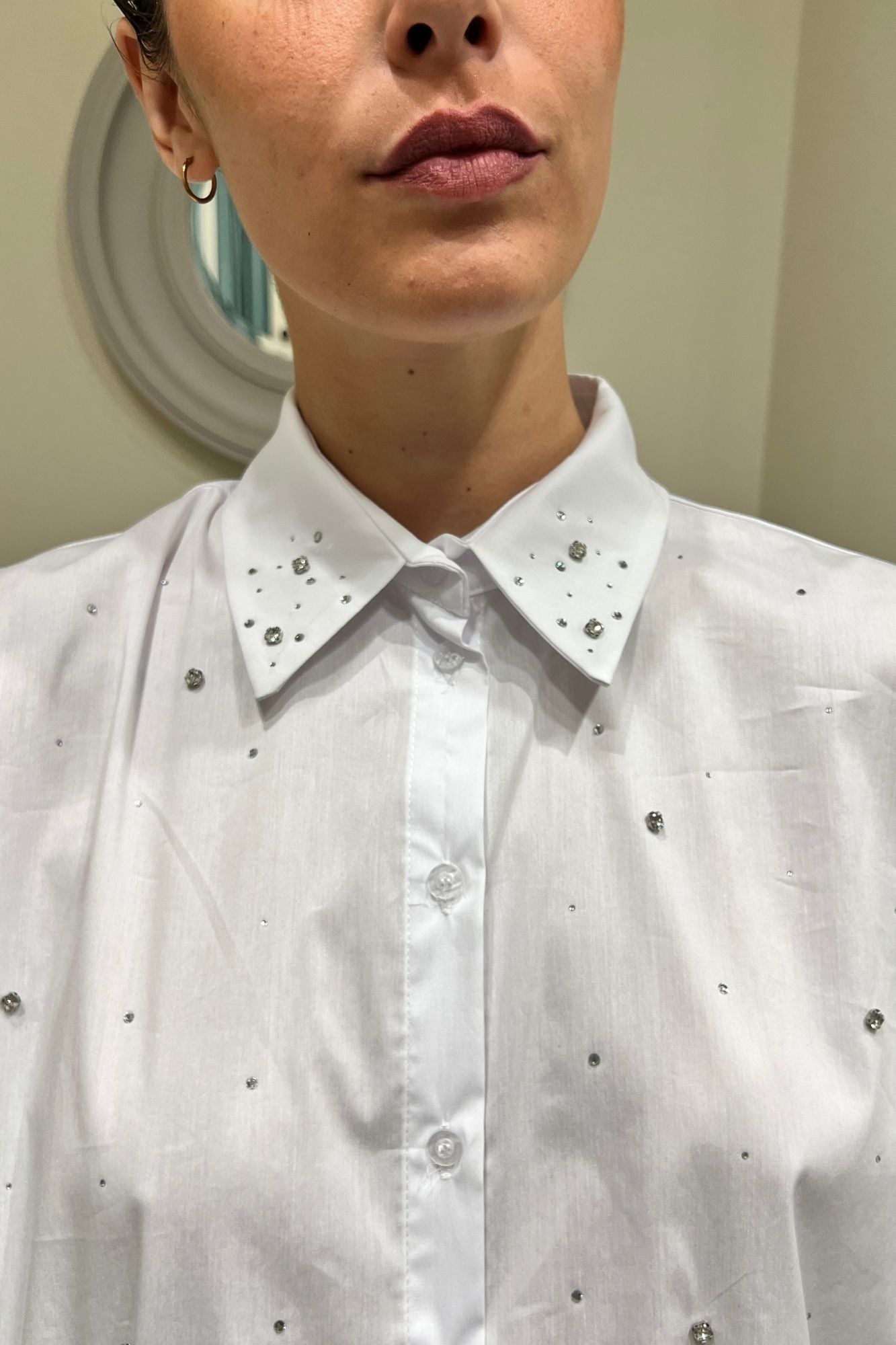 Camicia oversize in tessuto pregiato, un classico reinventato. I dettagli in Swarovski donano un tocco di luce e rendono questo capo un mix perfetto di stile casual e sofisticato. #CamiciaOversize #Swarovski #ModaDonna #EleganzaQuotidiana