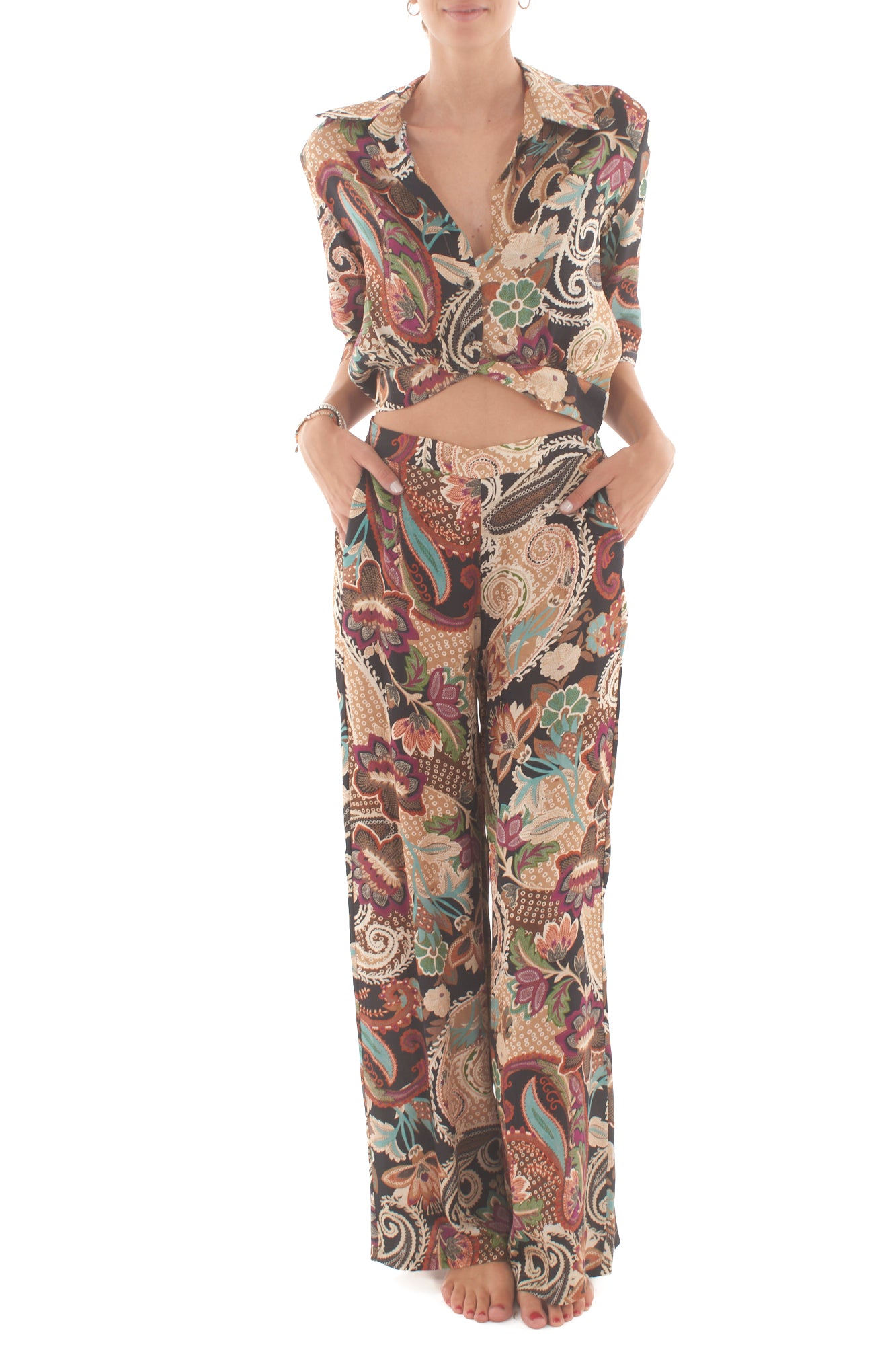Camicia a mezze maniche con una vivace fantasia, perfetta per uno stile casual ma curato. Realizzata con tessuti leggeri, è ideale per la stagione calda. Taglio moderno e confortevole, valorizza ogni look con un tocco di originalità.