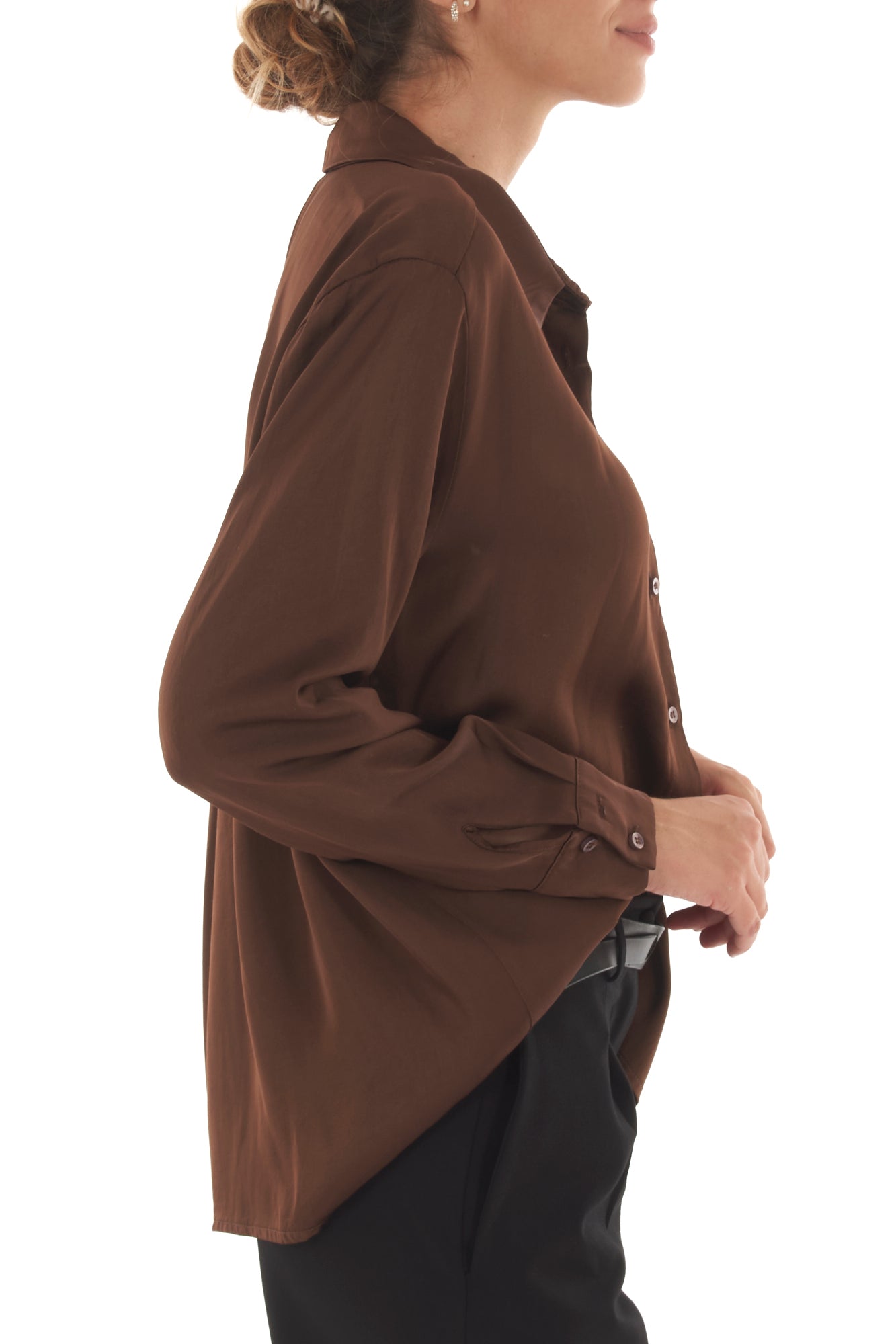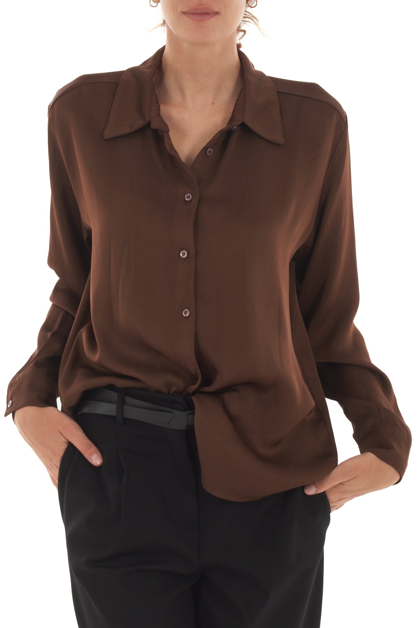 Camicia manica lunga in viscosa Metoo - Tabacco