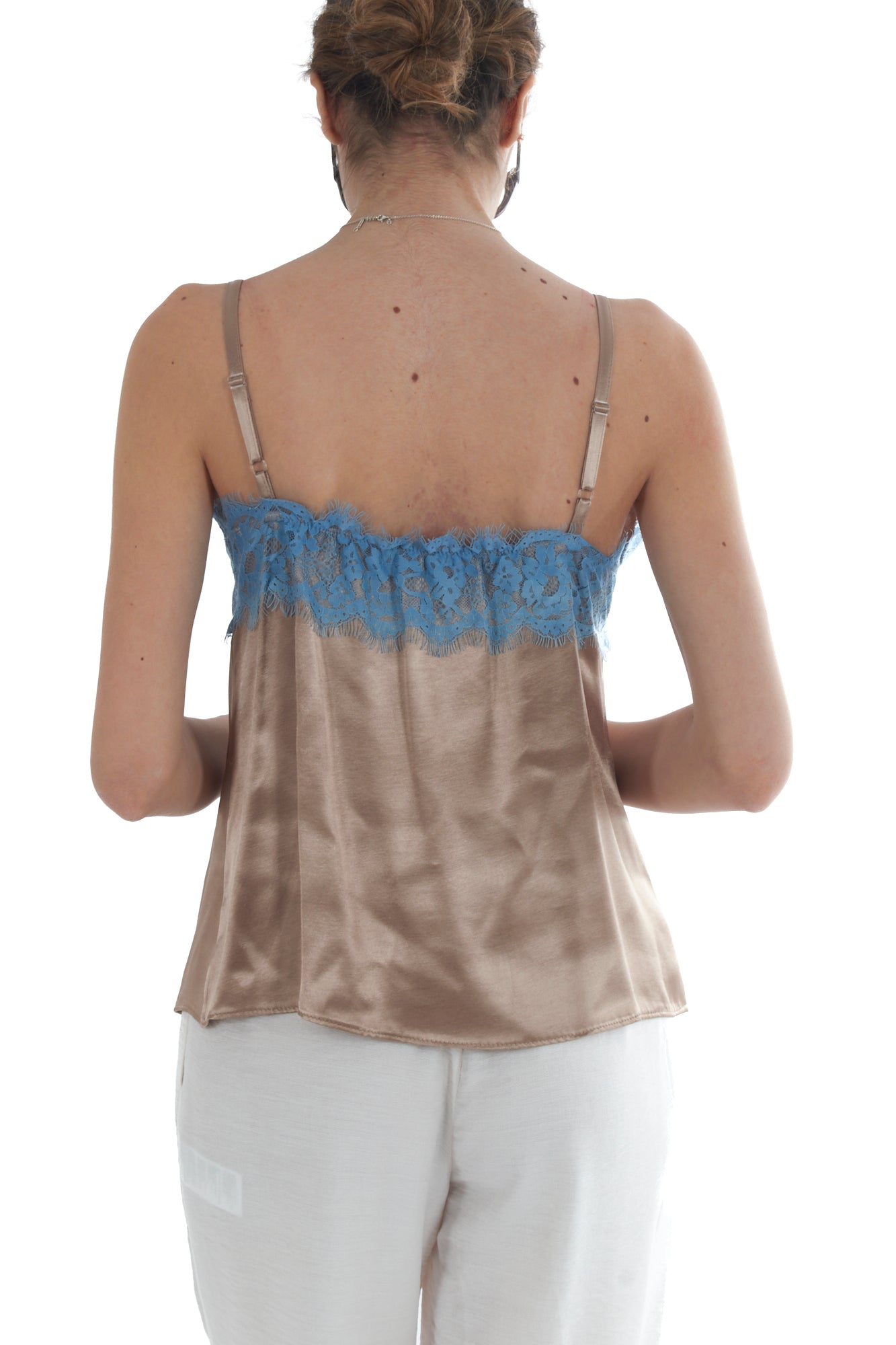 Canottiera con pizzo a contrasto da Donna Angela davis - Sabbia