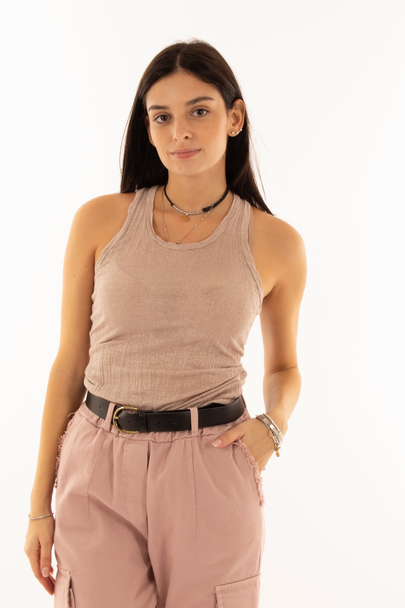 Canottiera in lurex King kong - Cipria