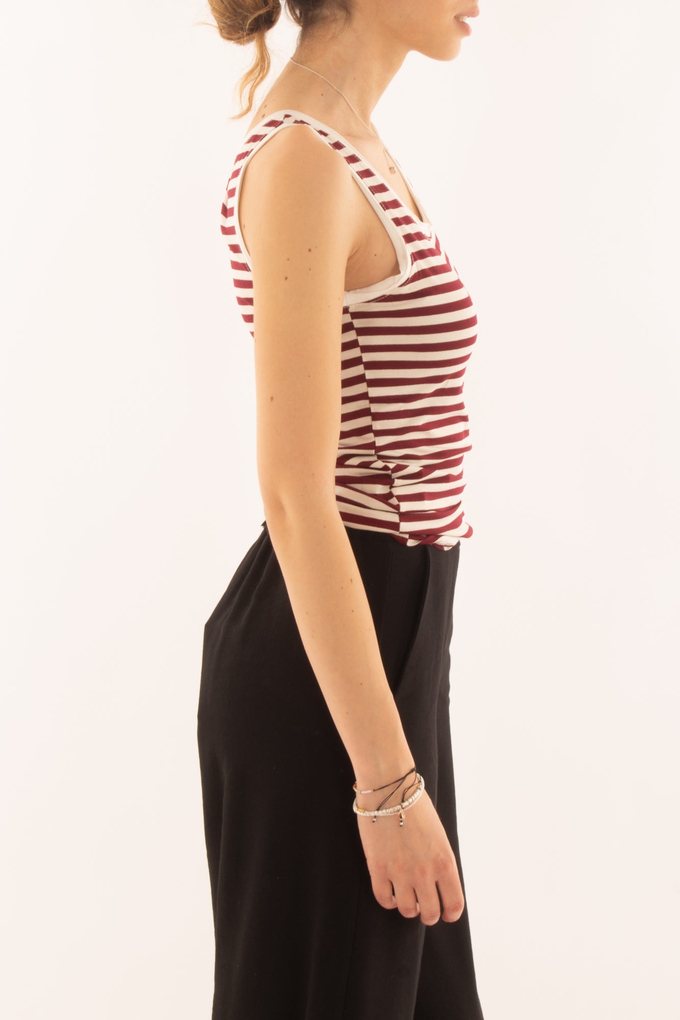 Scopri la canottiera mille righe in viscosa aderente, perfetta per un look elegante e confortevole. Realizzata con tessuto di alta qualità, offre una vestibilità che valorizza la silhouette. Ideale per ogni occasione, questa canottiera unisce stile e praticità in un capo versatile.