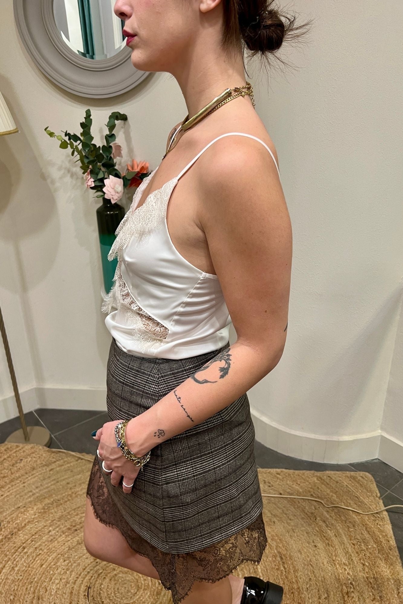 Un capo essenziale e sensuale: la nostra canottiera con profili in pizzo aggiunge un tocco di romanticismo e raffinatezza al tuo look. Perfetta sotto una giacca o da sola per un'eleganza discreta. Comfort e stile si incontrano in questo capo versatile. Acquistala ora per un'eleganza quotidiana.