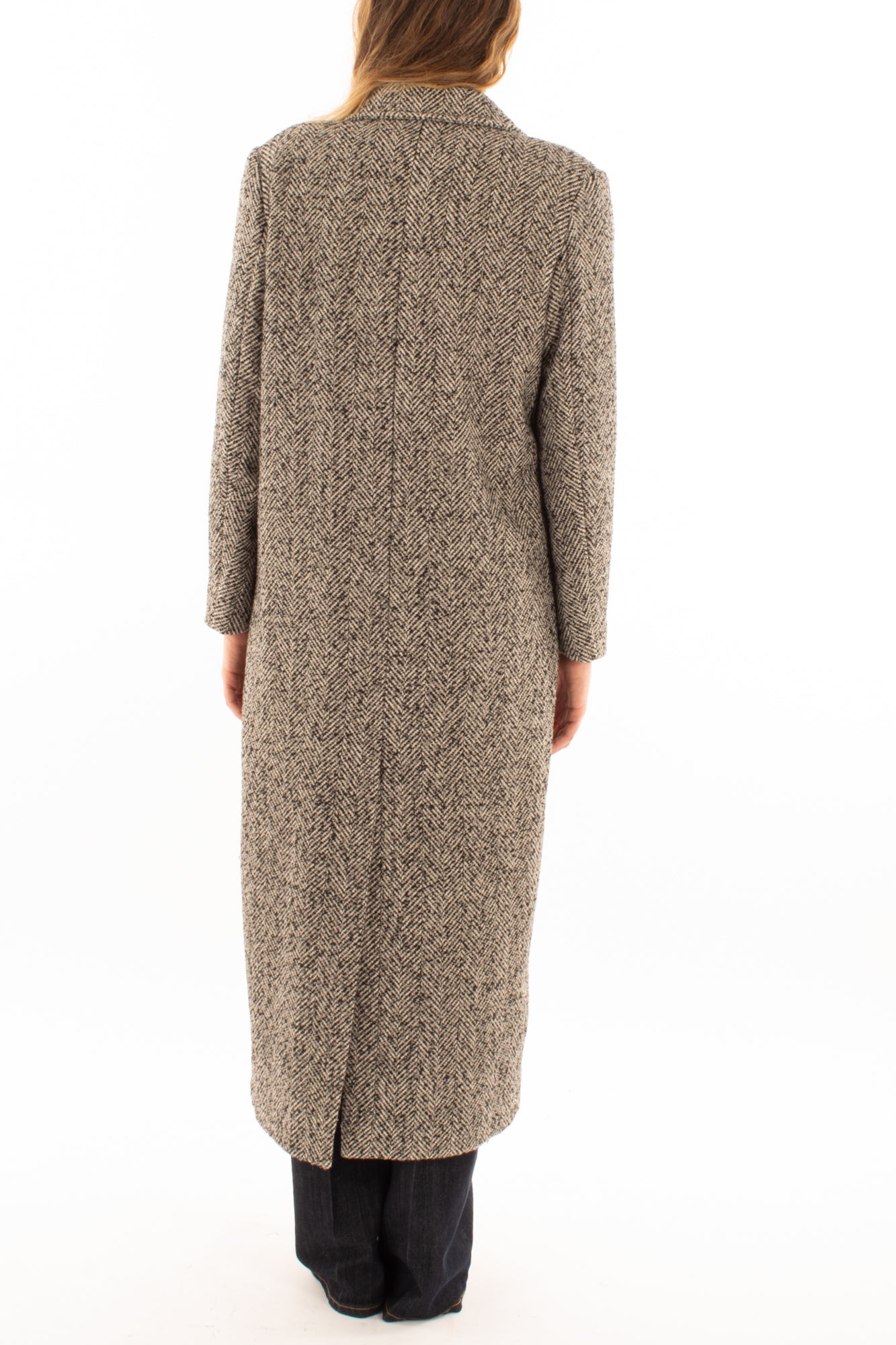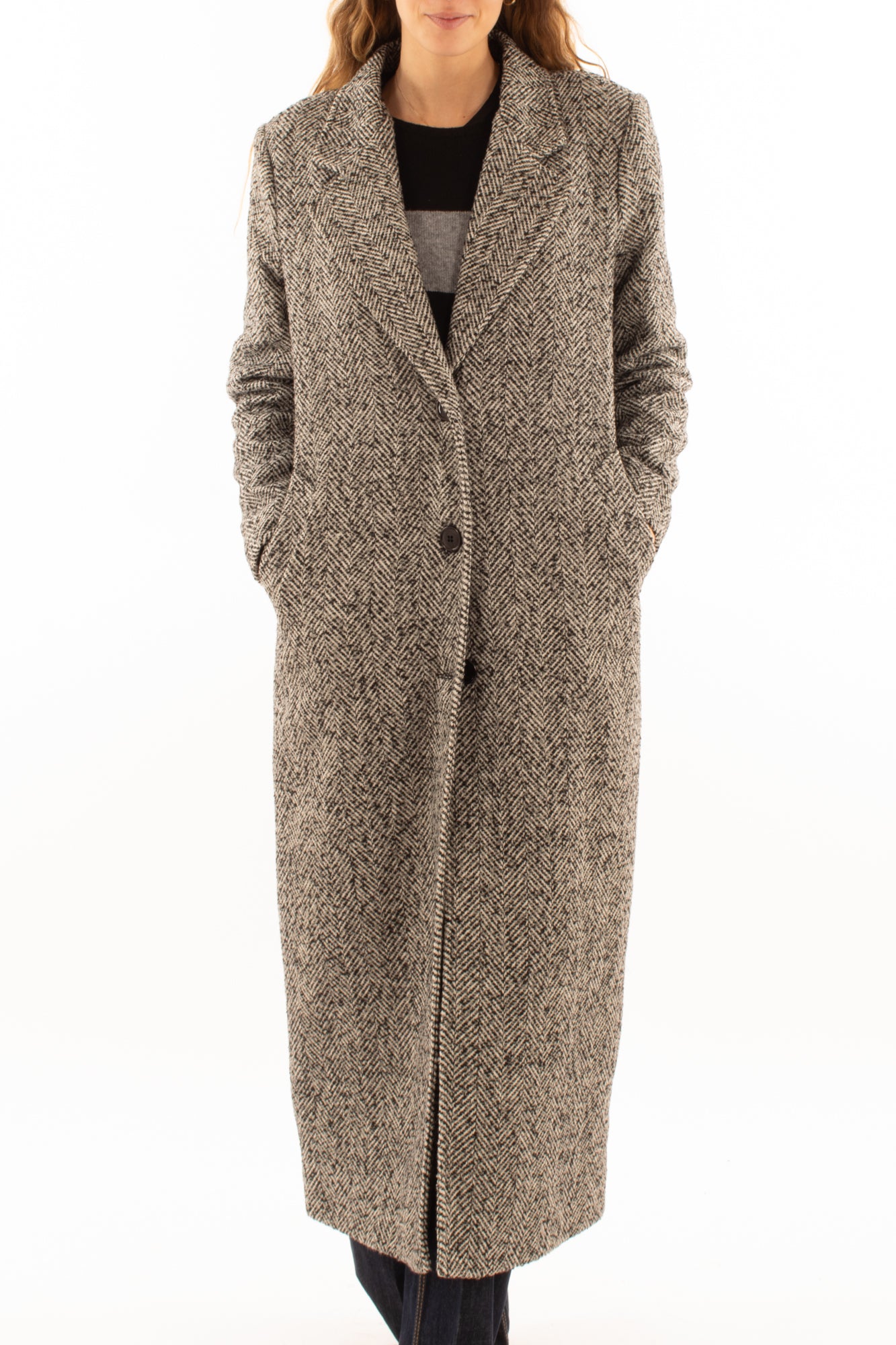 "Cappotto lungo over spinato: Un'elegante scelta di abbigliamento invernale. Realizzato con tessuto di alta qualità, questo capo offre calore e stile. Perfetto per sfoggiare un look sofisticato in ogni occasione."