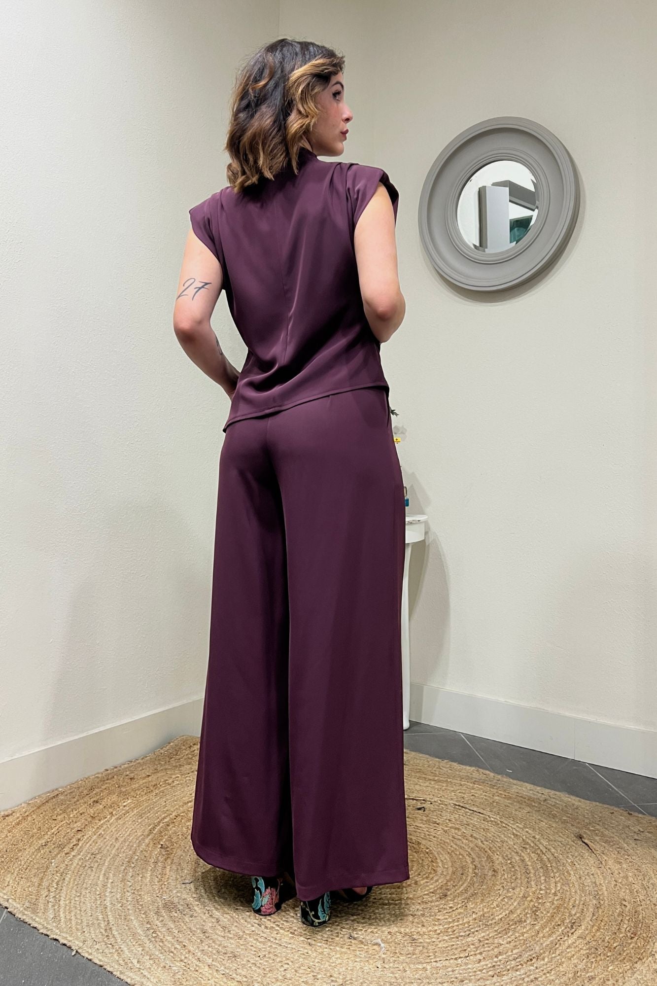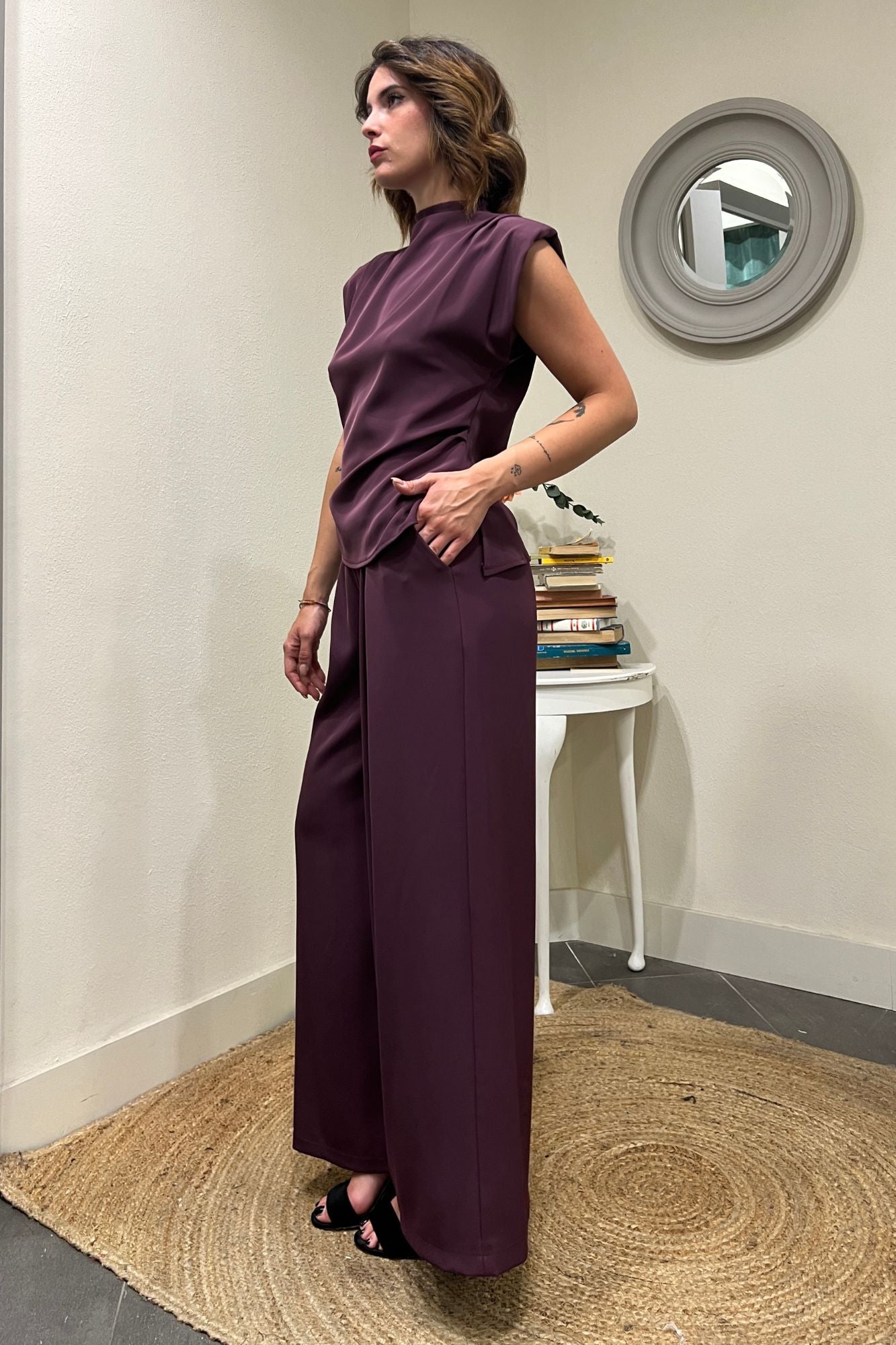 Completo elegante con blusa smanicata e pantalone palazzo. Un outfit coordinato che combina stile e comfort per la donna moderna. Ideale per ogni occasione, dal lavoro all'evento. #CompletoDonna #PantalonePalazzo #BlusaElegante #ModaDonna #NuovaCollezione