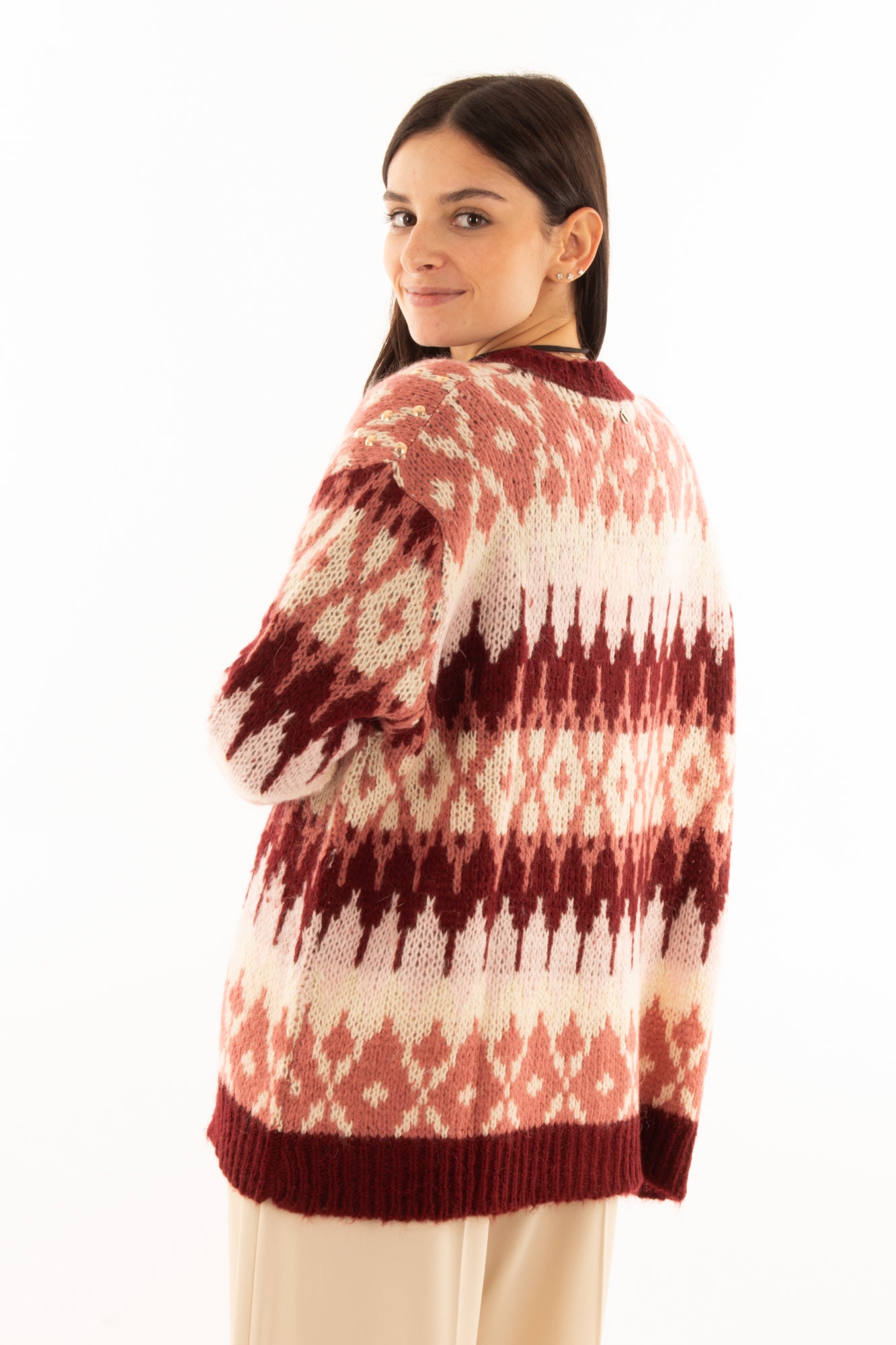 "Eleva il tuo stile con il nostro cardigan fantasia con borchie, un capo versatile e alla moda. Le borchie aggiungono un tocco rock, perfetto per un look unico e audace. Scopri la moda reinventata!"