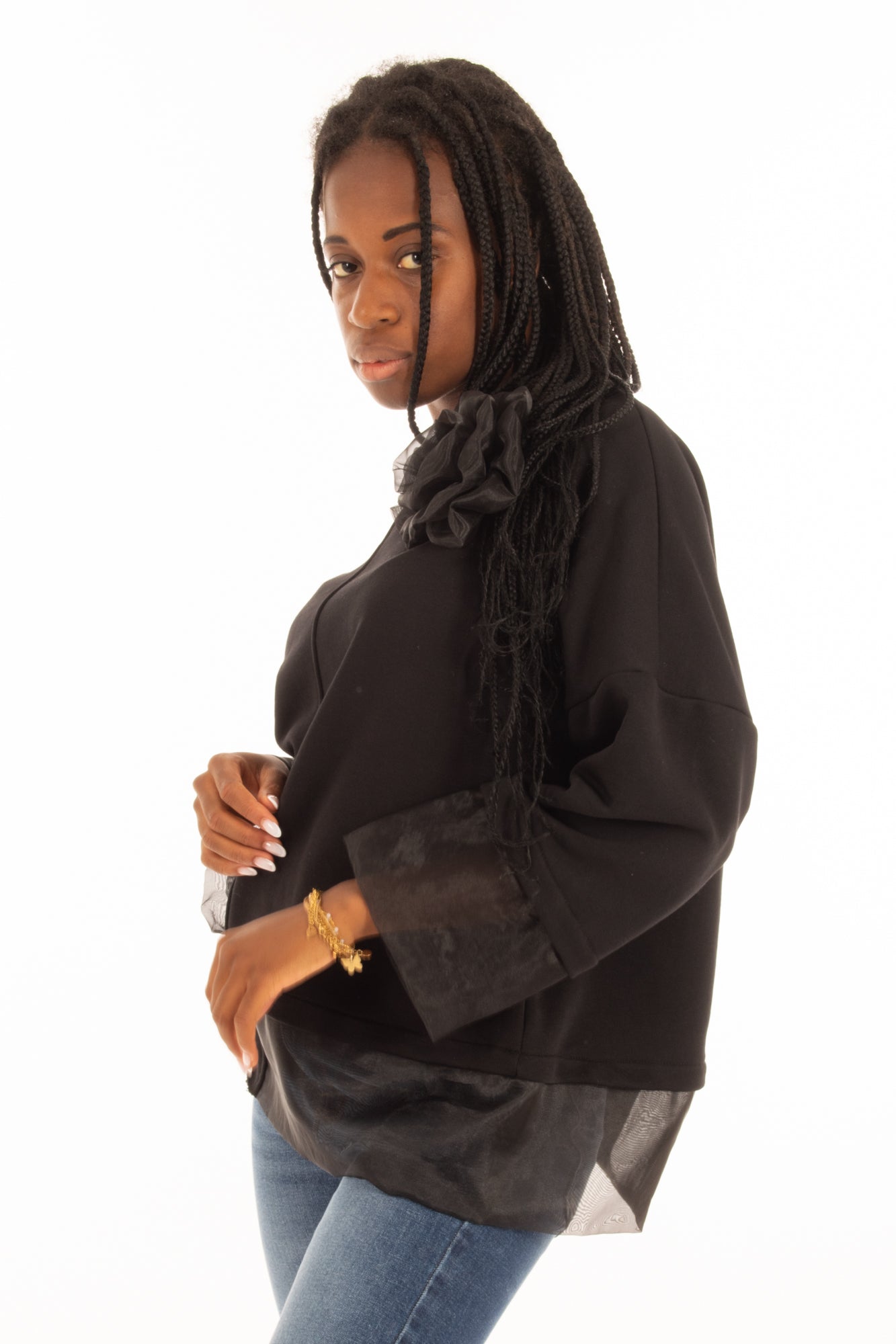 La felpa è realizzata in un tessuto morbido , e presenta una linea ampia per un comfort superiore. Include un tessuto tulle sottile e leggero per un tocco finale di stile. La felpa è perfetta per l'uso quotidiano, per garantire una comodità duratura.