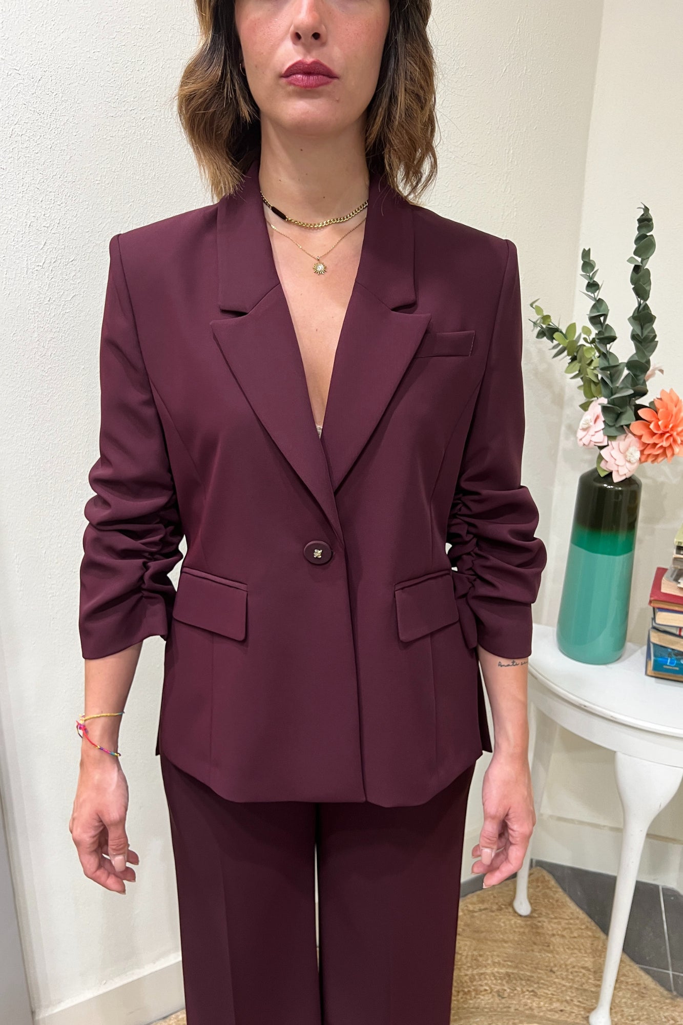 giacca con manica arricciata e spacco laterale. Il retro più lungo dona un tocco di stile unico. Perfetta per ogni outfit, dall'ufficio all'aperitivo. Un capo versatile per un look moderno e ricercato. #GiaccaDonna #SpaccoLaterale #ModaElegante #StileUnico #AbbigliamentoFemminile
