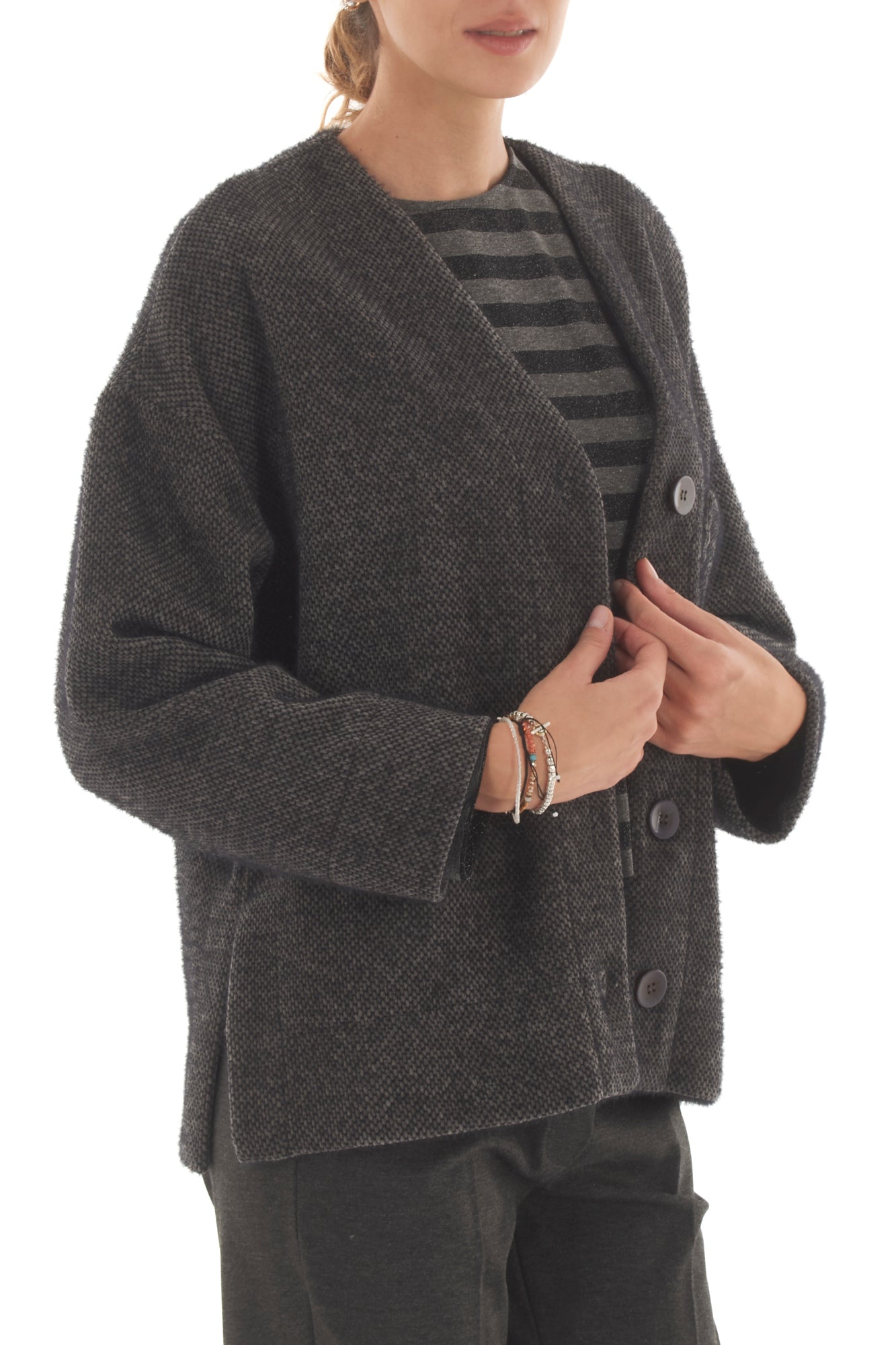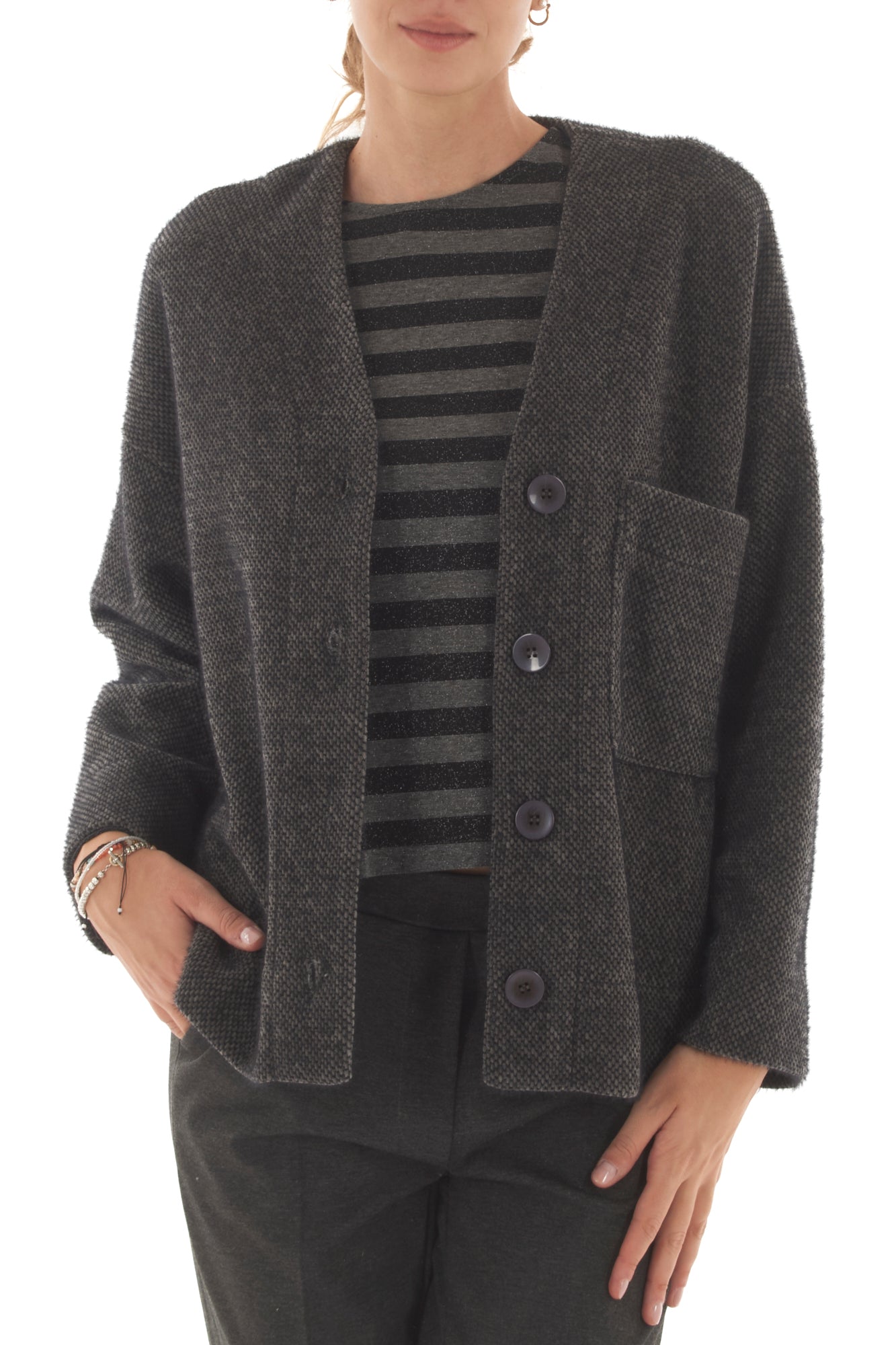 Giacca dallo stile casual con bottoni e pratiche tasche a toppe. Perfetta per un look informale e dinamico, si distingue per il design semplice e funzionale. Ideale per chi cerca comodità e stile in un capo versatile, adatto a diverse occasioni quotidiane.