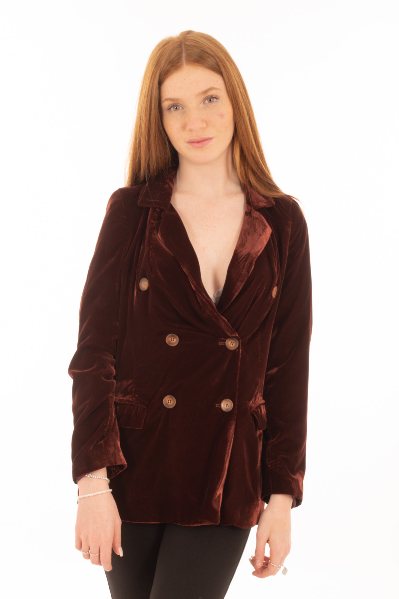 Giacca doppio petto velluto liscio Angela Davis - Bruciato