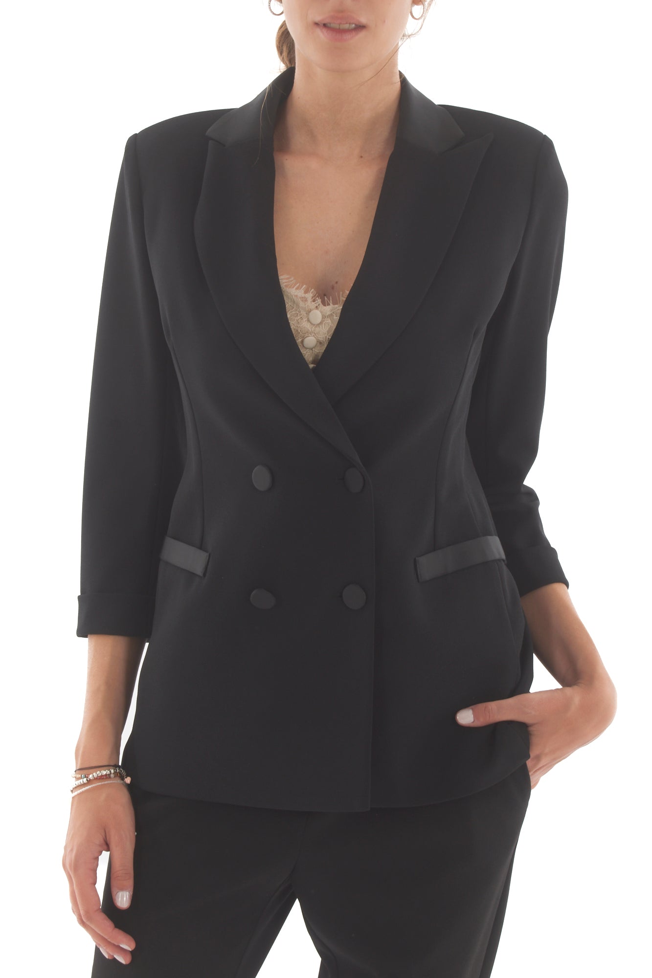 Giacca doppio petto manica 3/4 con profiliin raso
