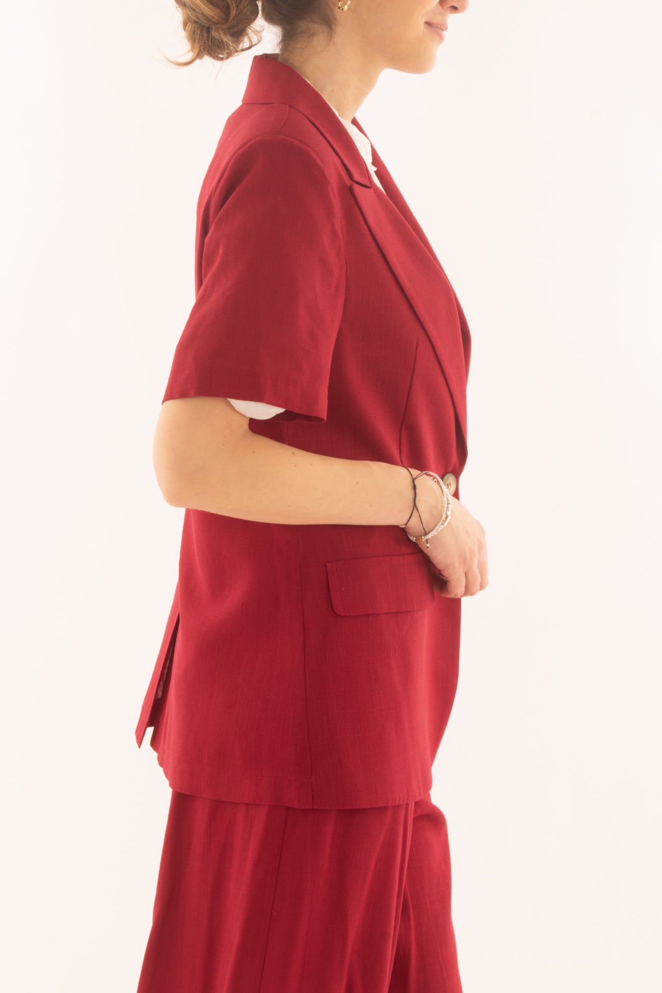 Giacca monopetto mezza manica in viscosa e lino, perfetta per un look estivo elegante e confortevole. Il tessuto leggero e traspirante offre freschezza, mentre il design raffinato garantisce uno stile impeccabile. Ideale per ogni occasione, dalla giornata lavorativa agli eventi serali.