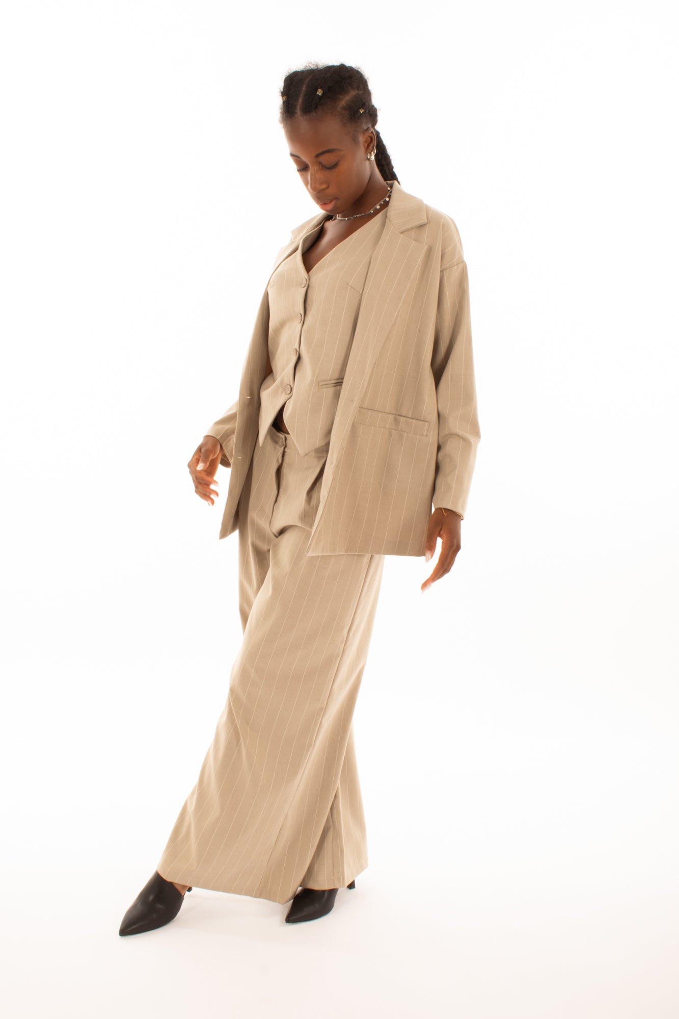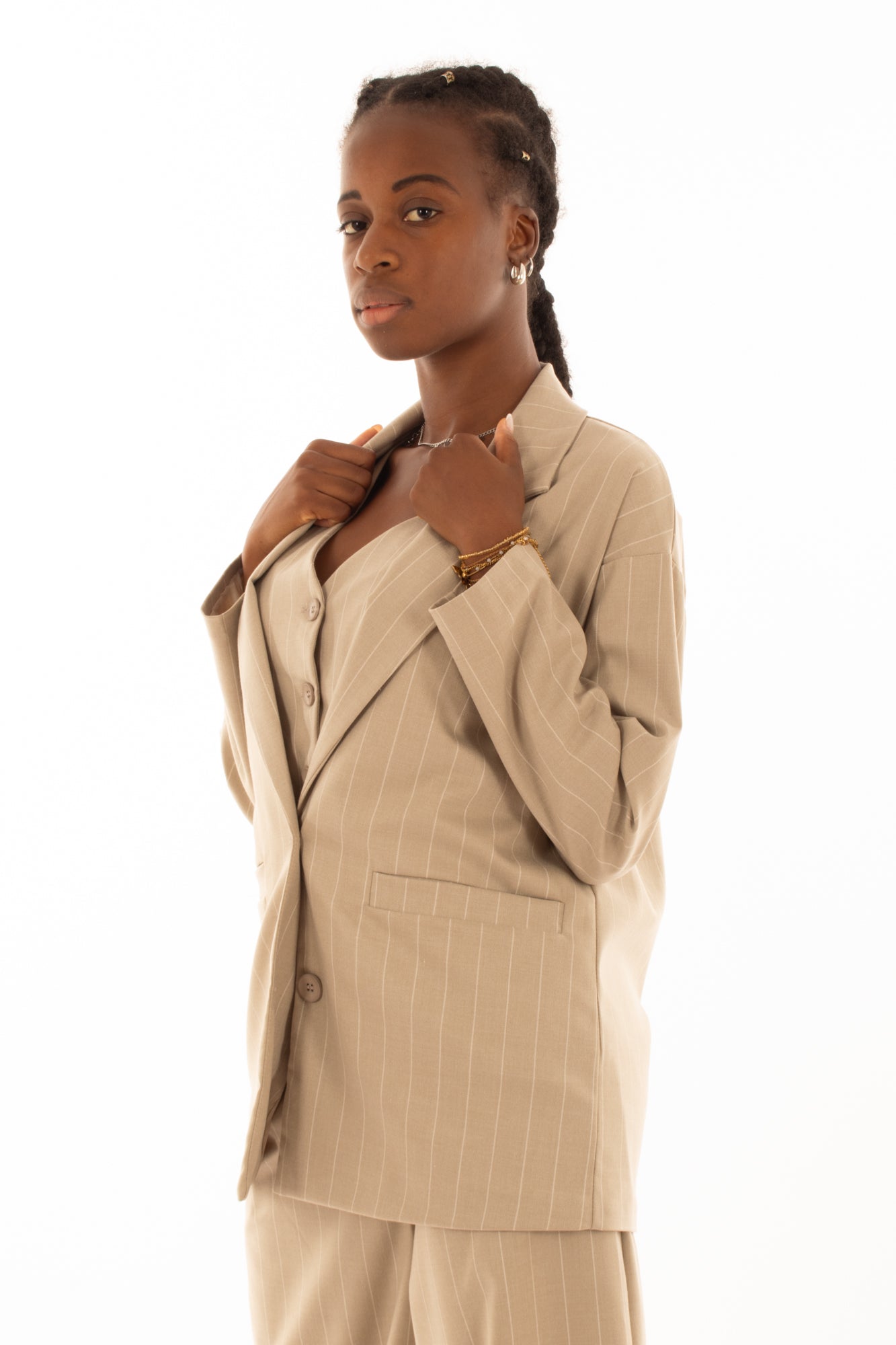 Questa giacca over in gessato è un must have per la tua collezione di abbigliamento. Realizzata con tessuti resistenti e di qualità, offre un look elegante e moderno che si adatta a qualsiasi occasione. Non puoi sbagliare con questa giacca!