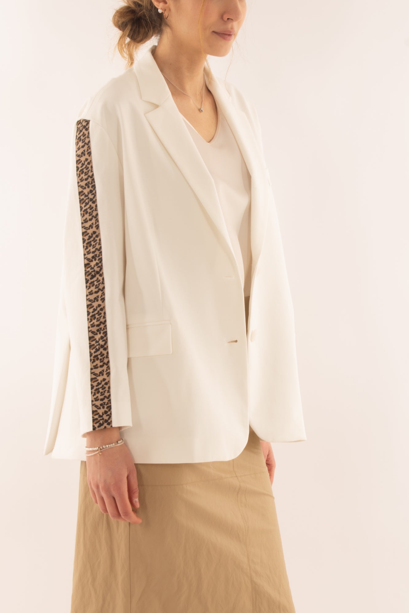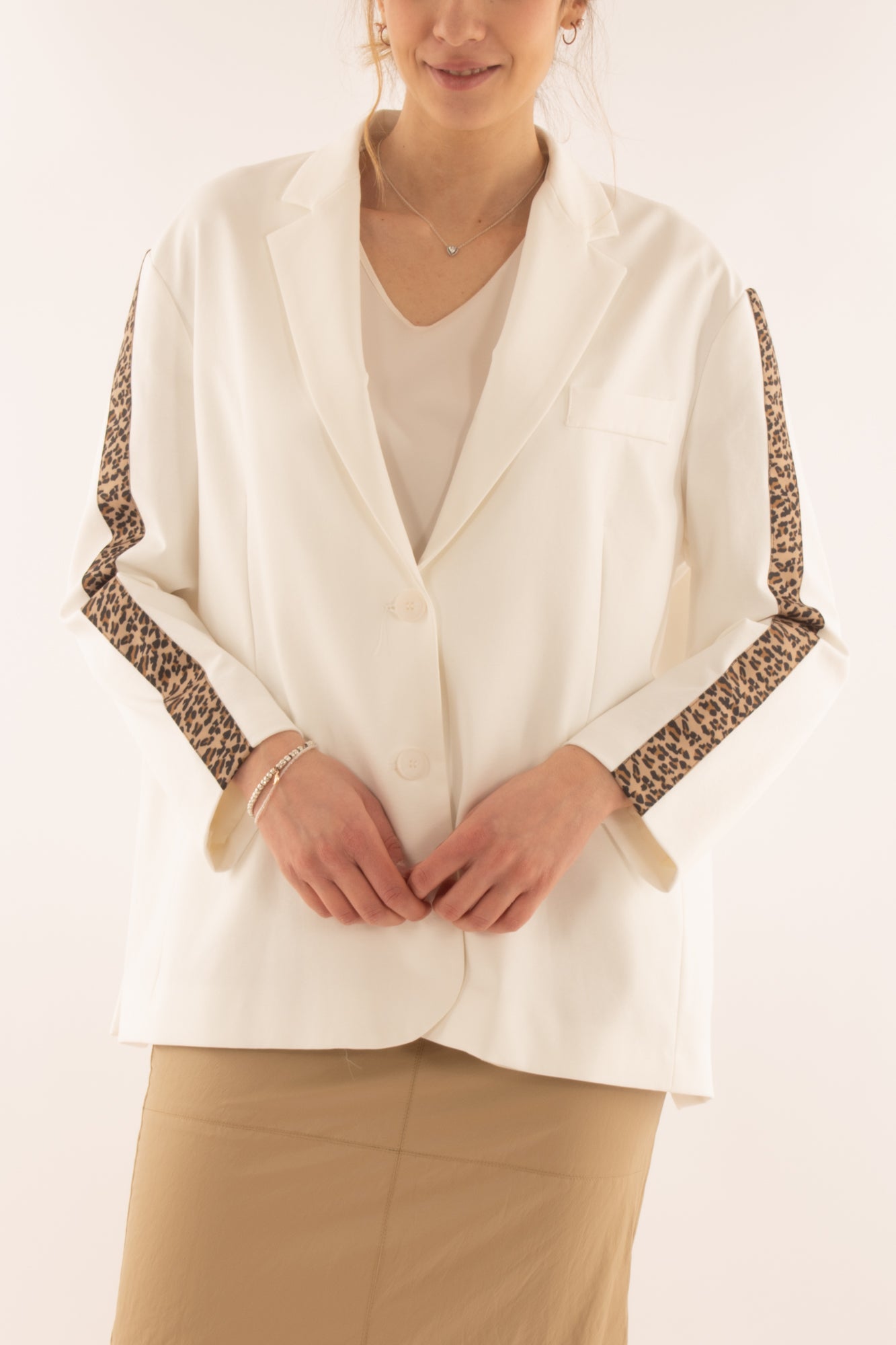 Scopri la nostra giacca trendy con una banda maculata lungo la manica, perfetta per un look urbano e sofisticato. Realizzata con materiali di alta qualità, questa giacca combina stile e comfort. Aggiungi un tocco di eleganza al tuo guardaroba con questo capo versatile, adatto a ogni occasione. Acquista ora e distinguiti dalla massa!