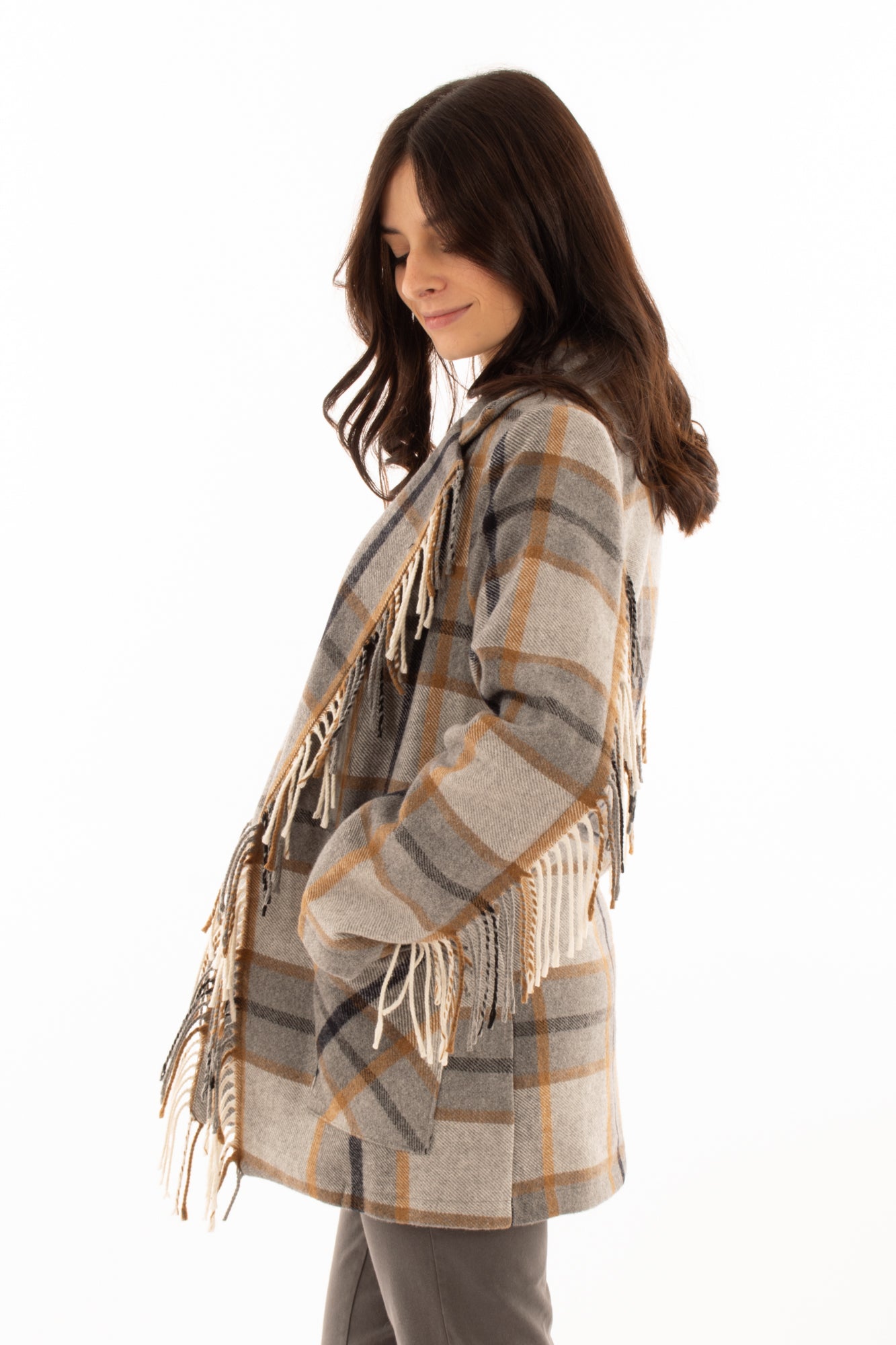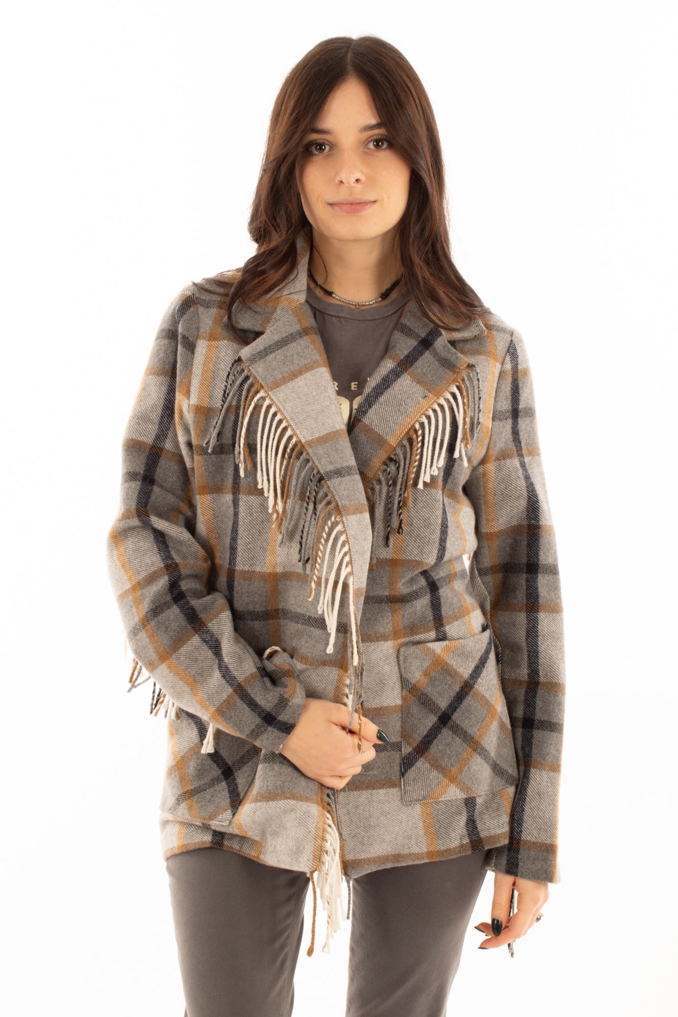 Eleva il tuo stile con la nostra esclusiva giacca scozzese con frange. Questo capo versatile unisce il fascino classico del motivo scozzese a un tocco moderno con le frange. Realizzata con cura artigianale, la giacca offre un mix perfetto di eleganza e audacia. Aggiungi un tocco di glamour al tuo guardaroba e fai una dichiarazione di moda senza sforzo. Perfetta per occasioni speciali o per un look casual raffinato.